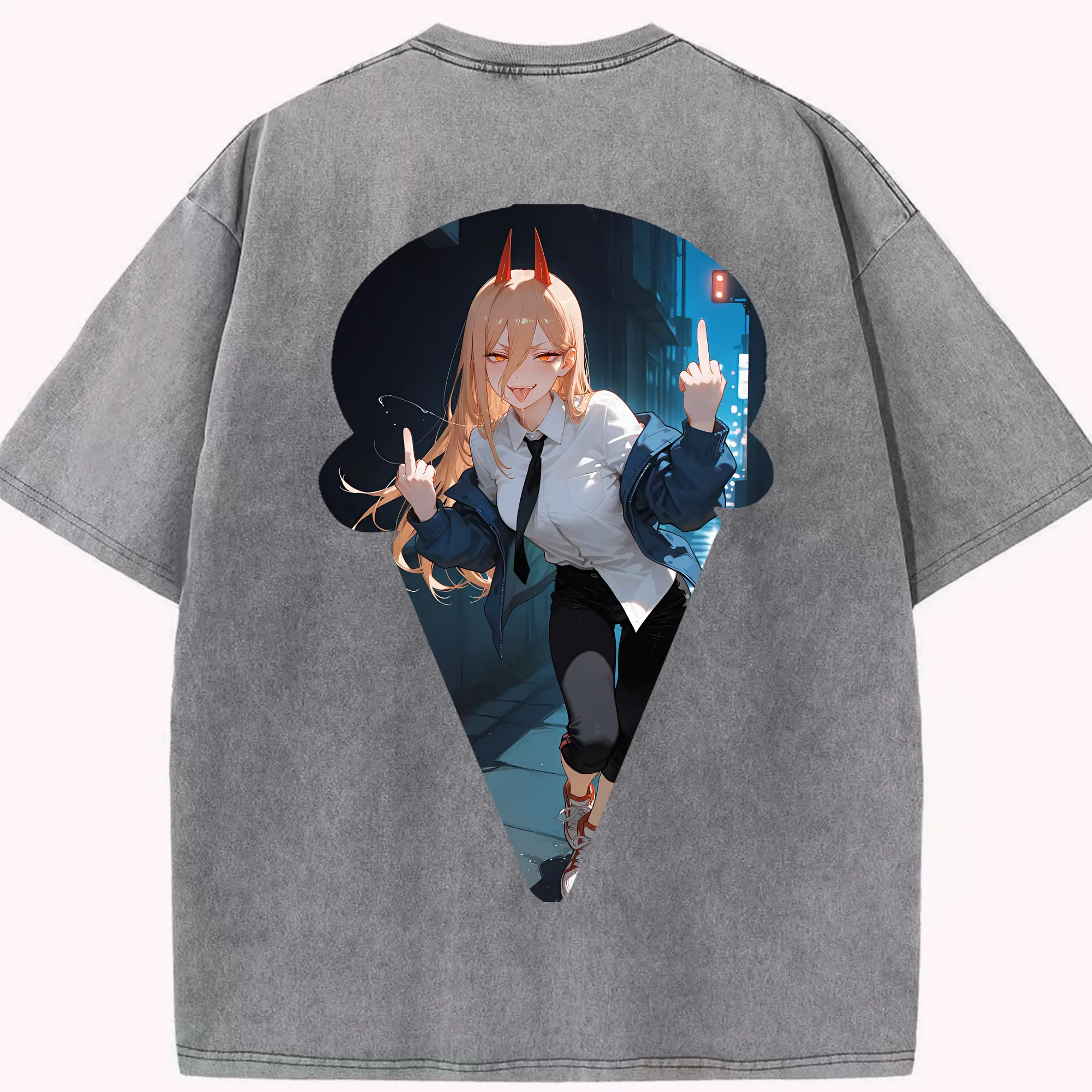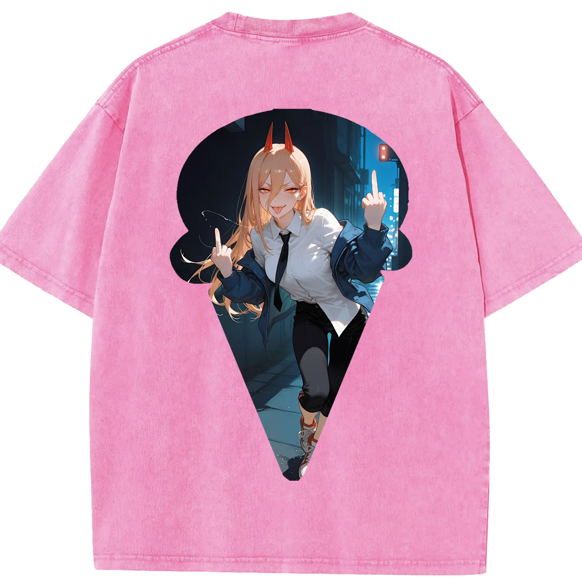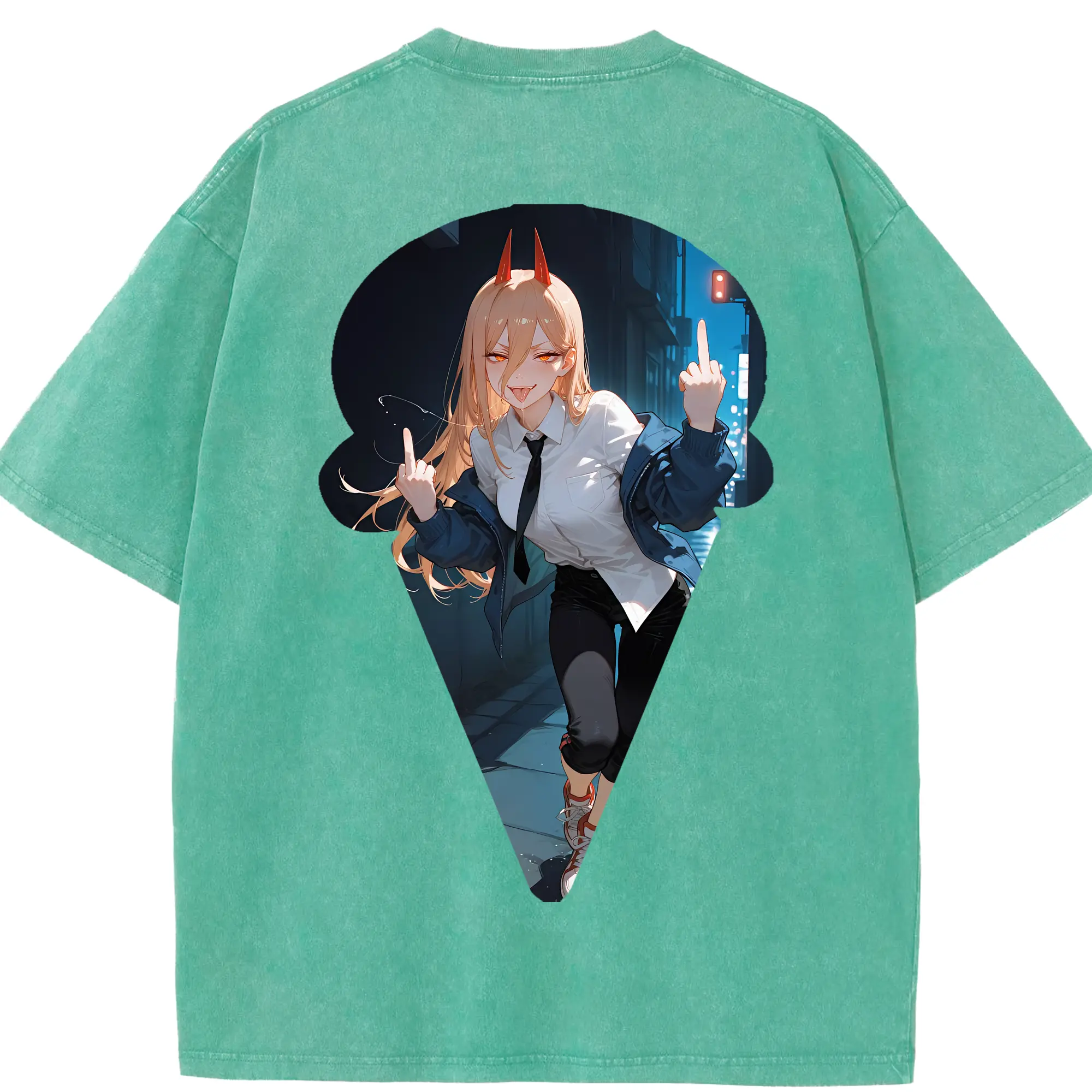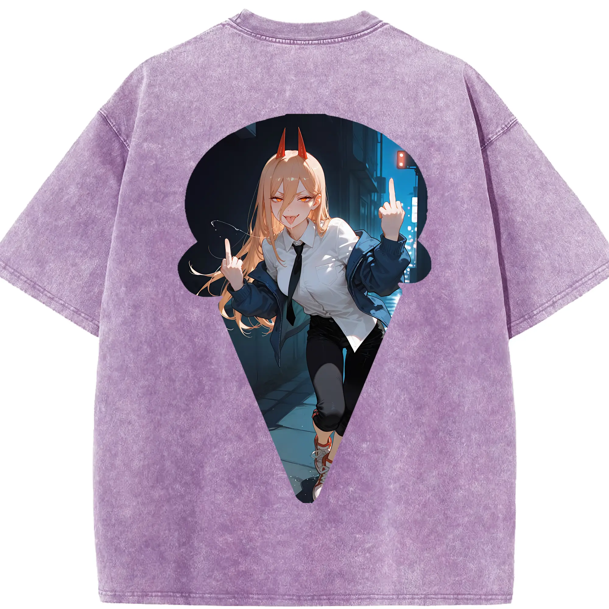 チェンソーマン グッズ,パワー - 綿100% ヴィンテージ風 半袖Tシャツ ・ フロントプリント ・ 柔らか肌触り ・ 通気性 快適 ・ スポーツ カジュアル 外出用