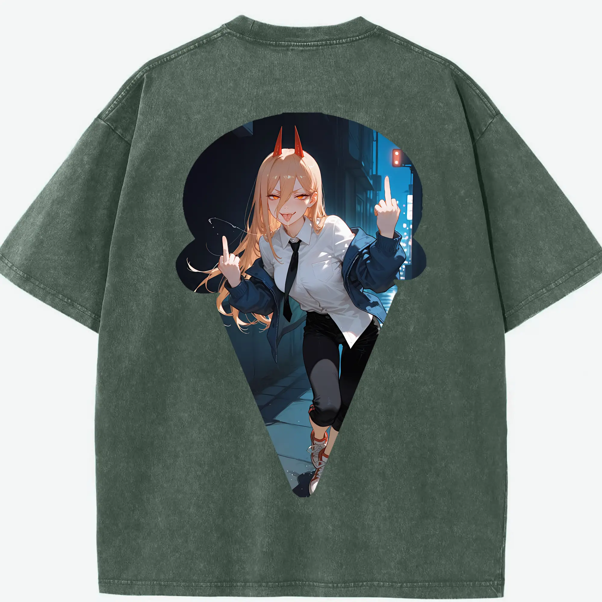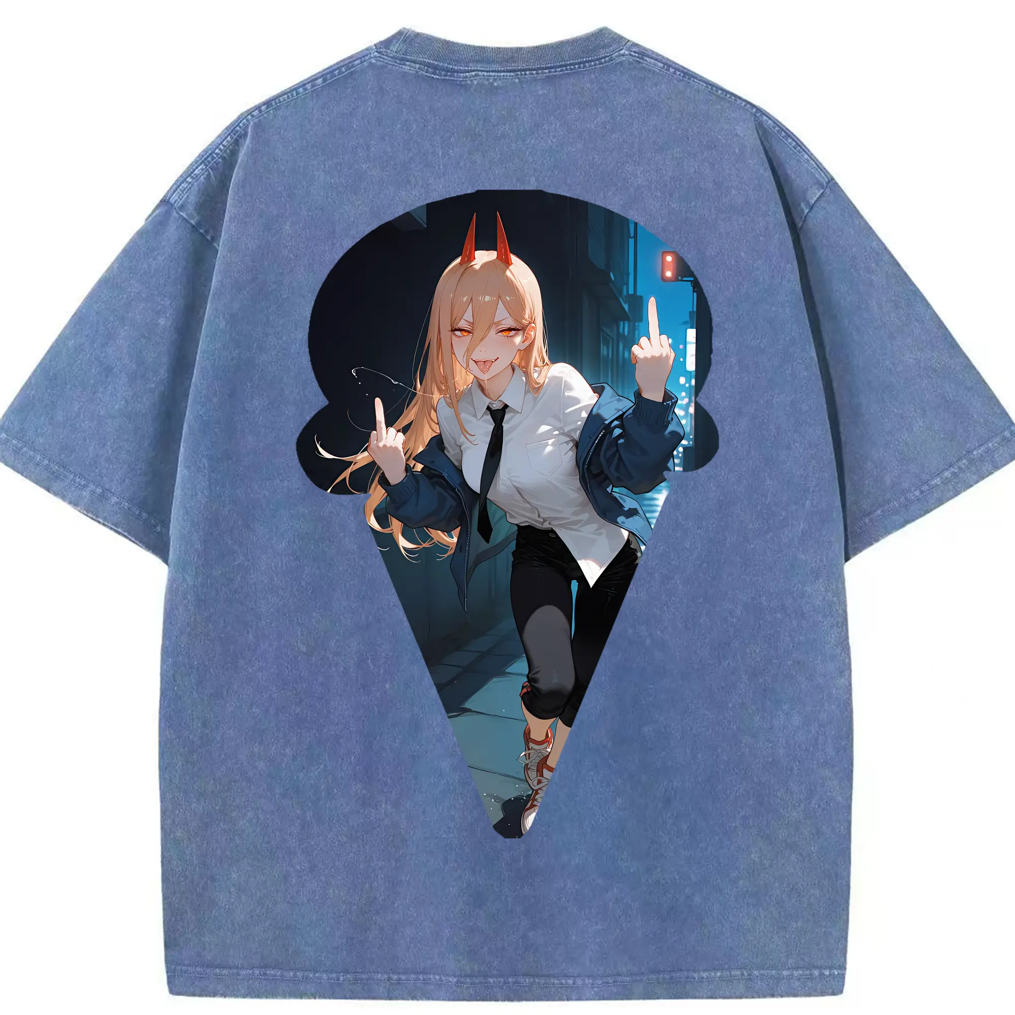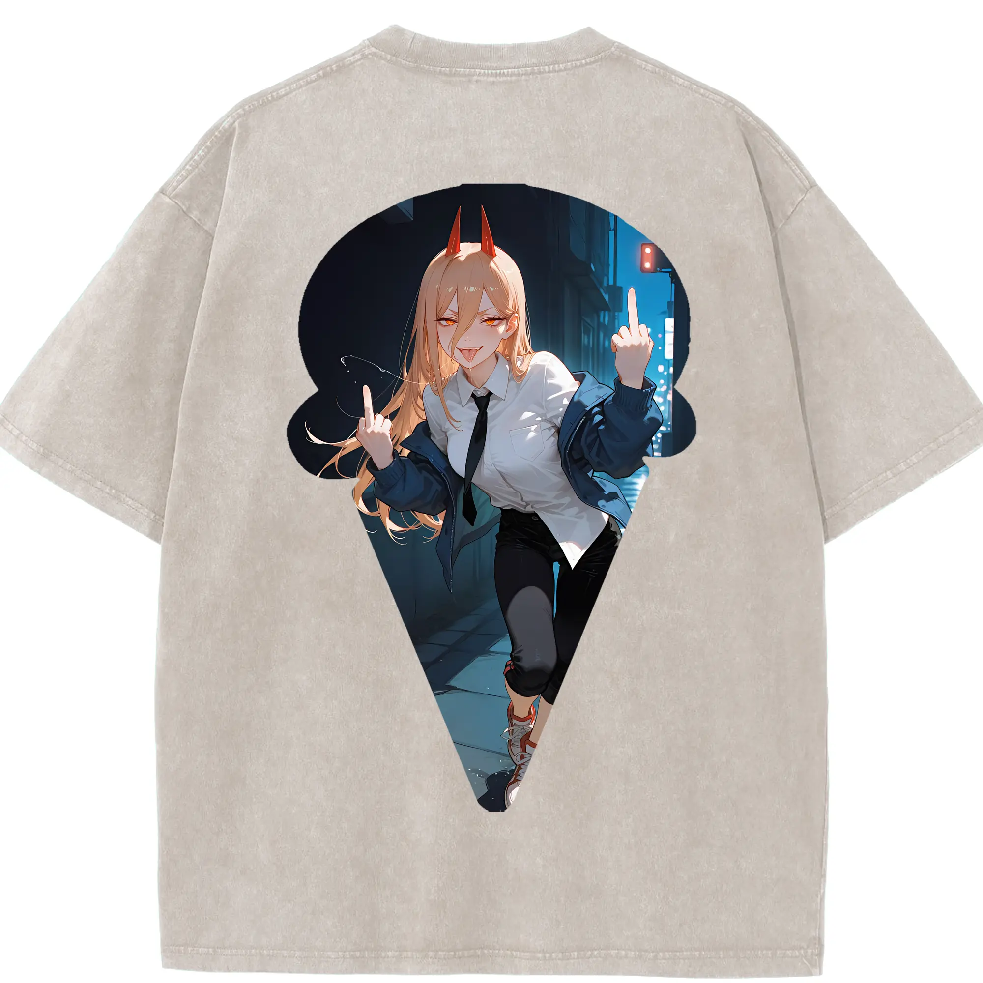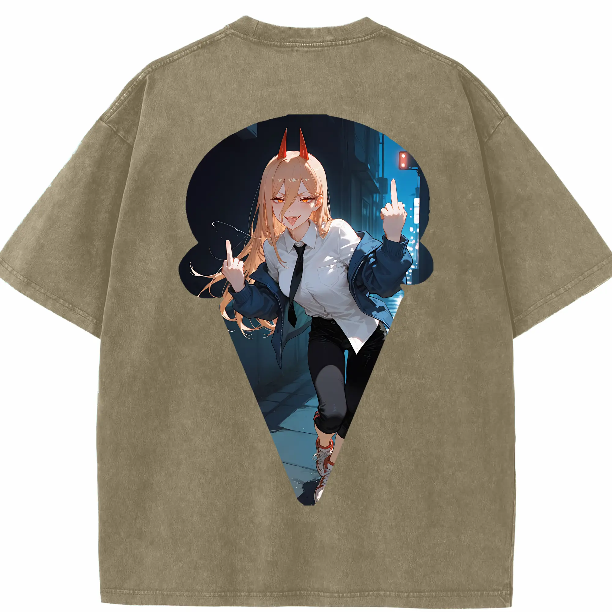 チェンソーマン グッズ,パワー - 綿100% ヴィンテージ風 半袖Tシャツ ・ フロントプリント ・ 柔らか肌触り ・ 通気性 快適 ・ スポーツ カジュアル 外出用