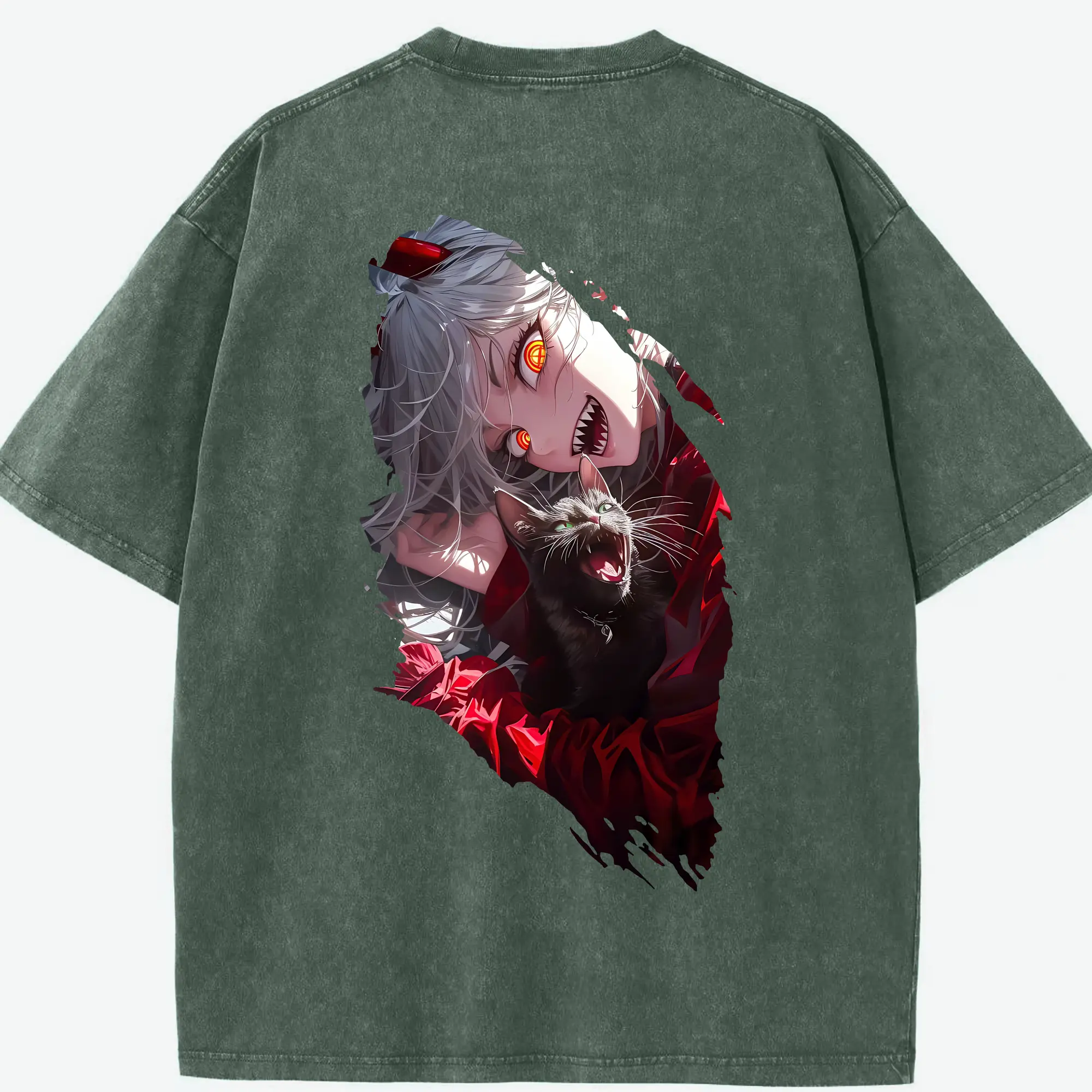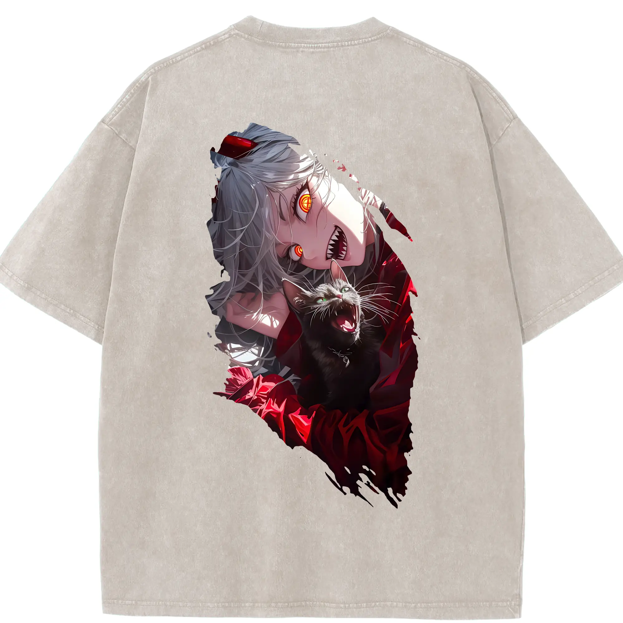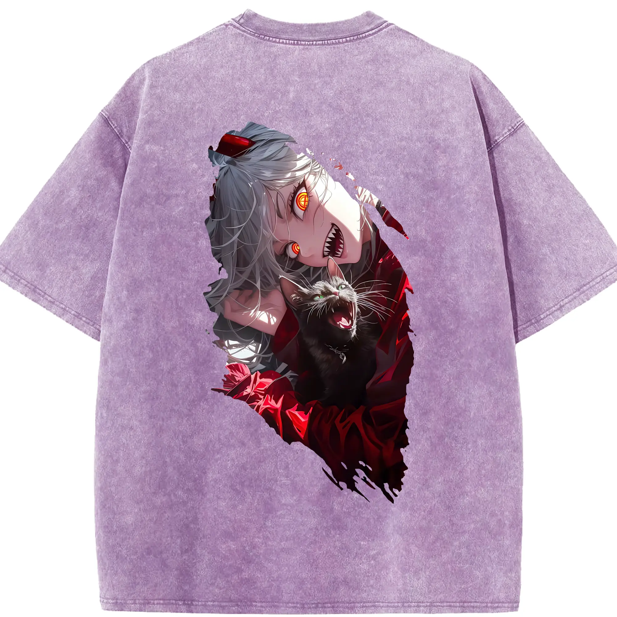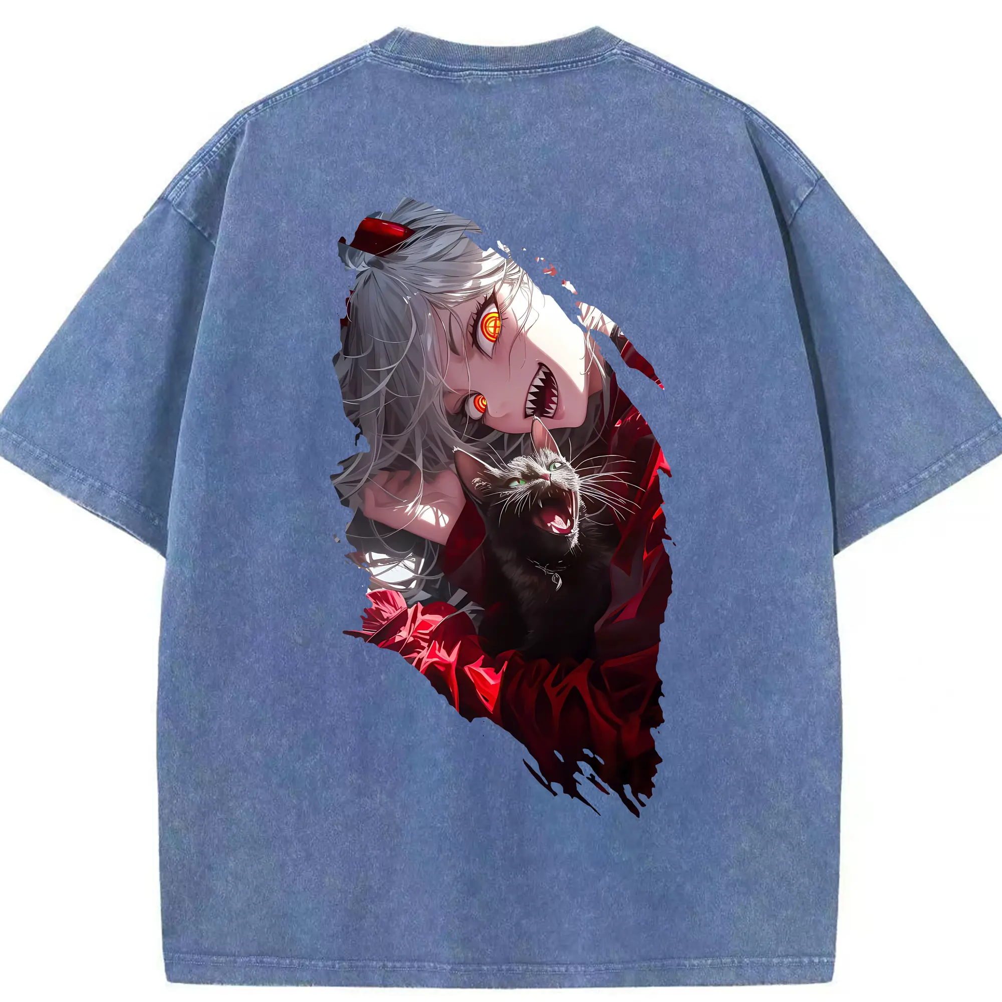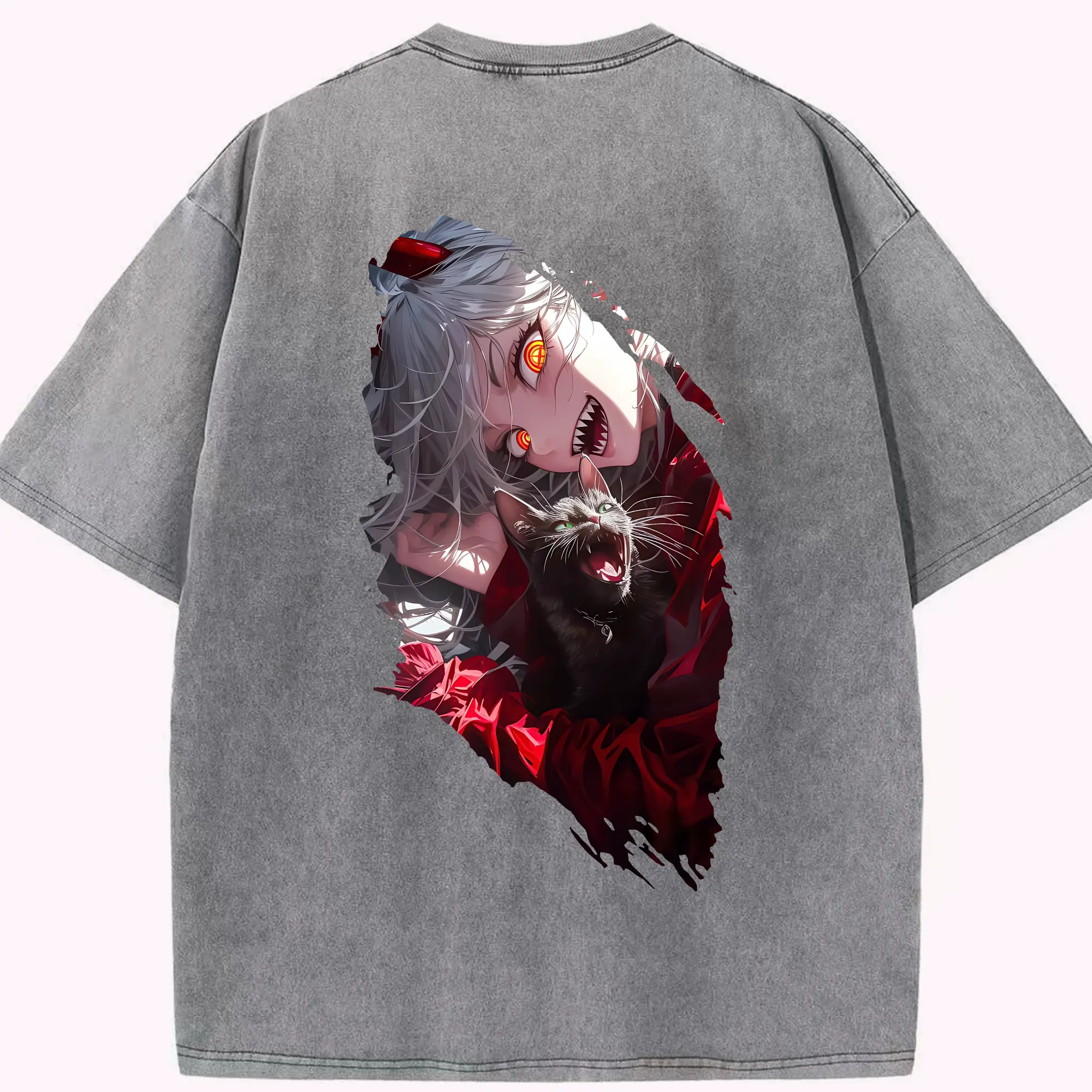 ブルーアーカイブ グッズ 聖園ミカ - 綿100% ヴィンテージ風 半袖Tシャツ ・ 背面プリント ・ 柔らか肌触り ・ 通気性 快適 ・ スポーツ カジュアル 外出用