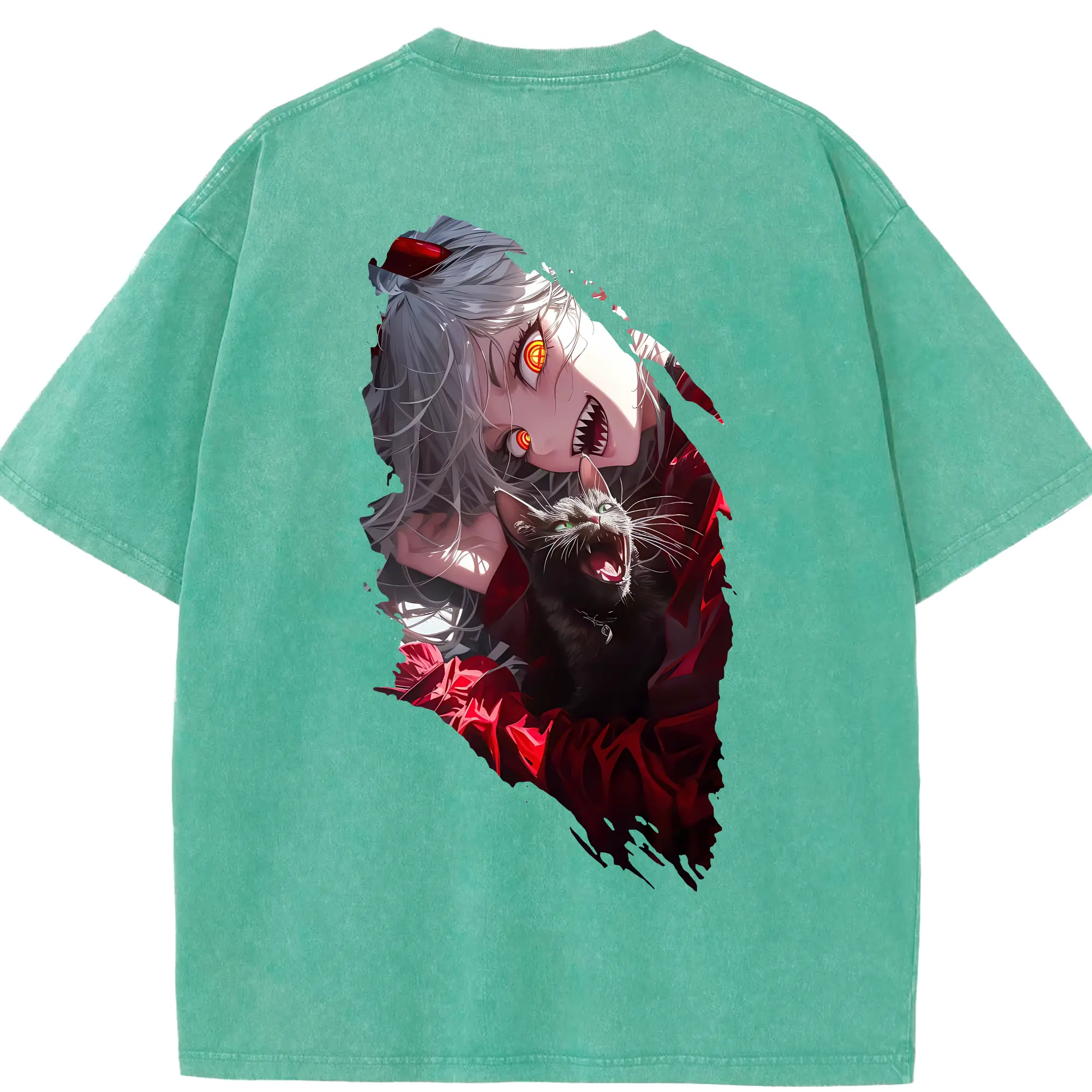 チェンソーマン グッズ,パワー - 綿100% ヴィンテージ風 半袖Tシャツ ・ フロントプリント ・ 柔らか肌触り ・ 通気性 快適 ・ スポーツ カジュアル 外出用