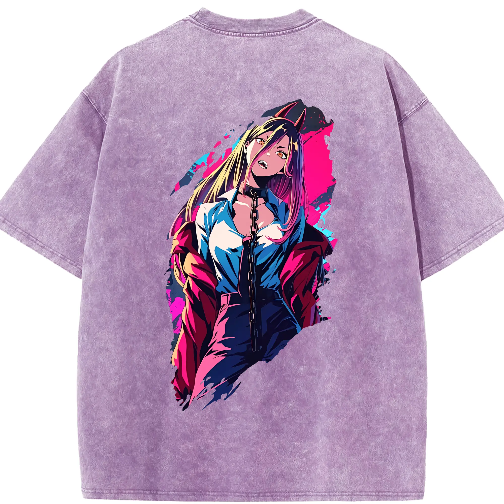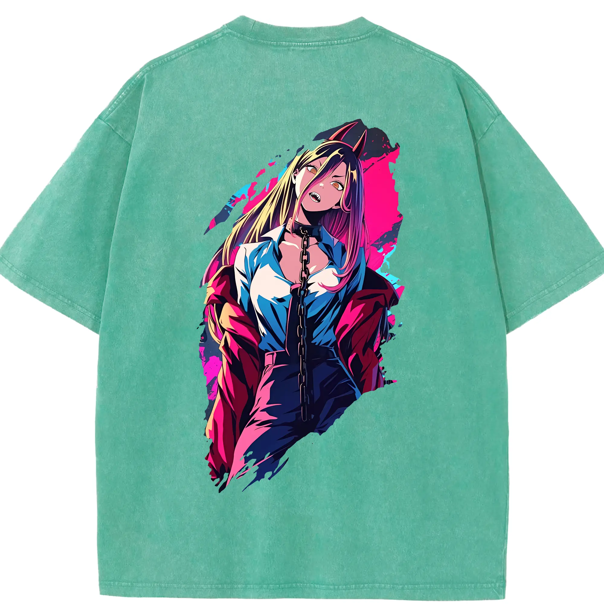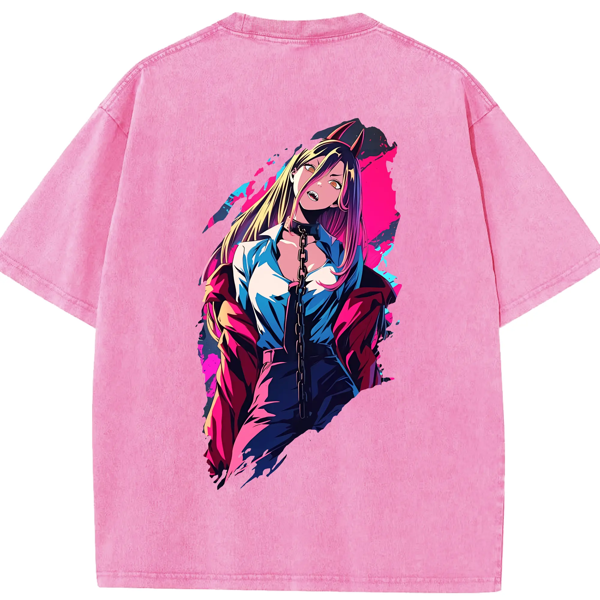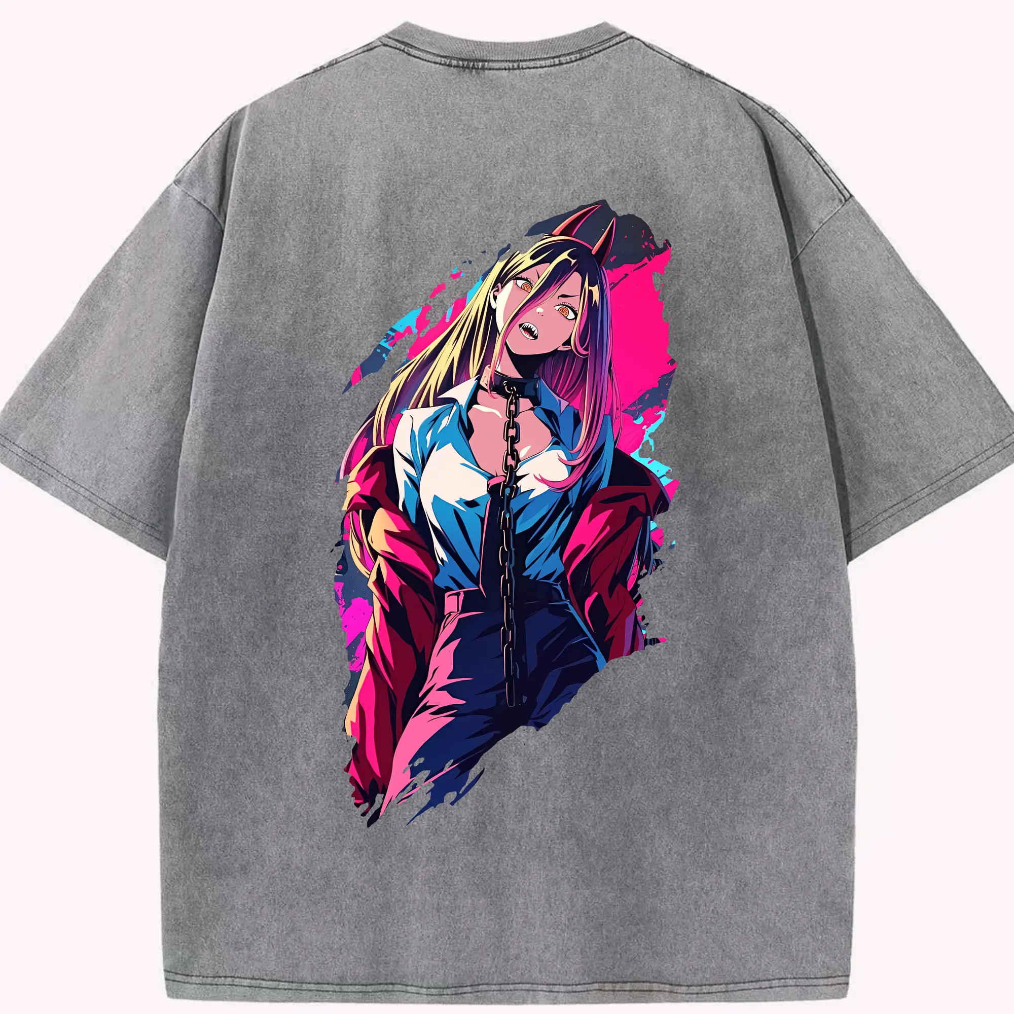 チェンソーマン グッズ,パワー - 綿100% ヴィンテージ風 半袖Tシャツ ・ フロントプリント ・ 柔らか肌触り ・ 通気性 快適 ・ スポーツ カジュアル 外出用