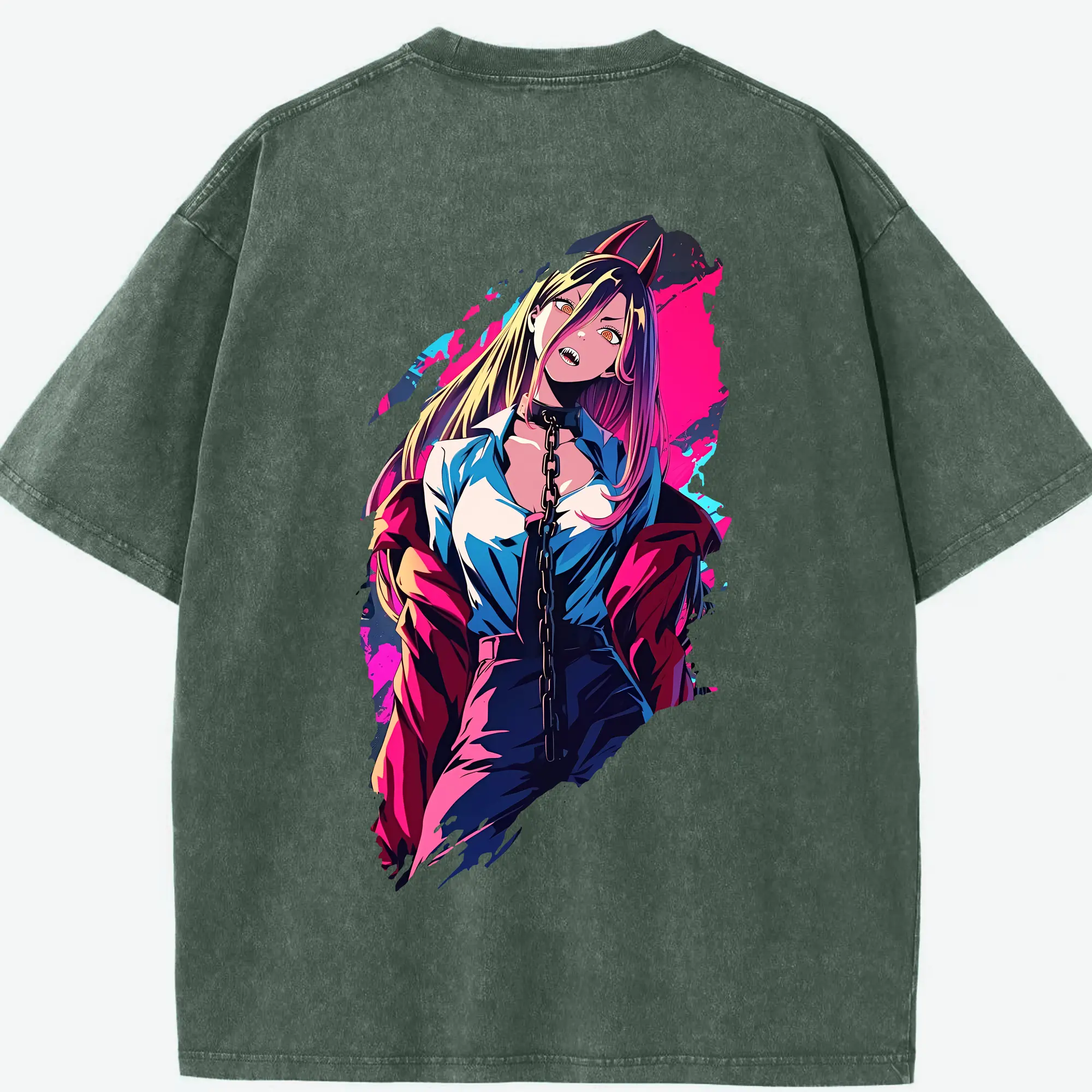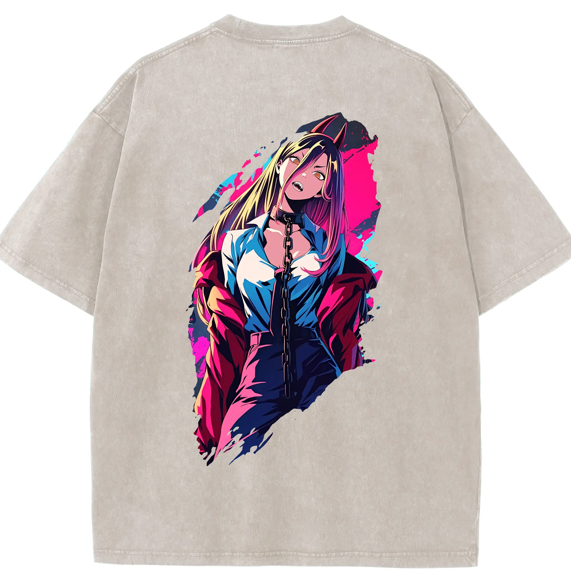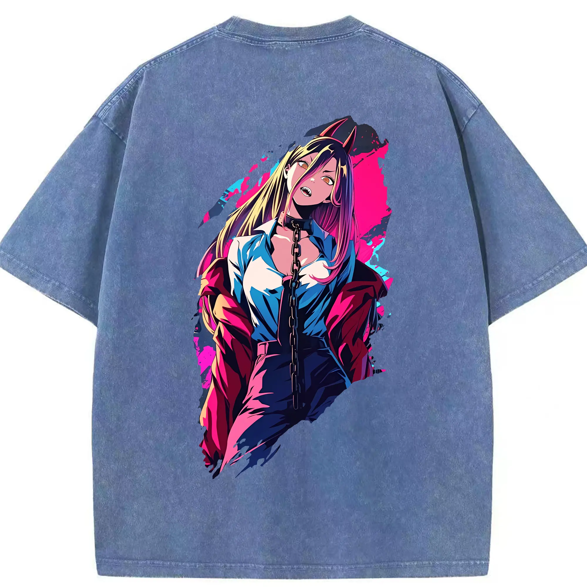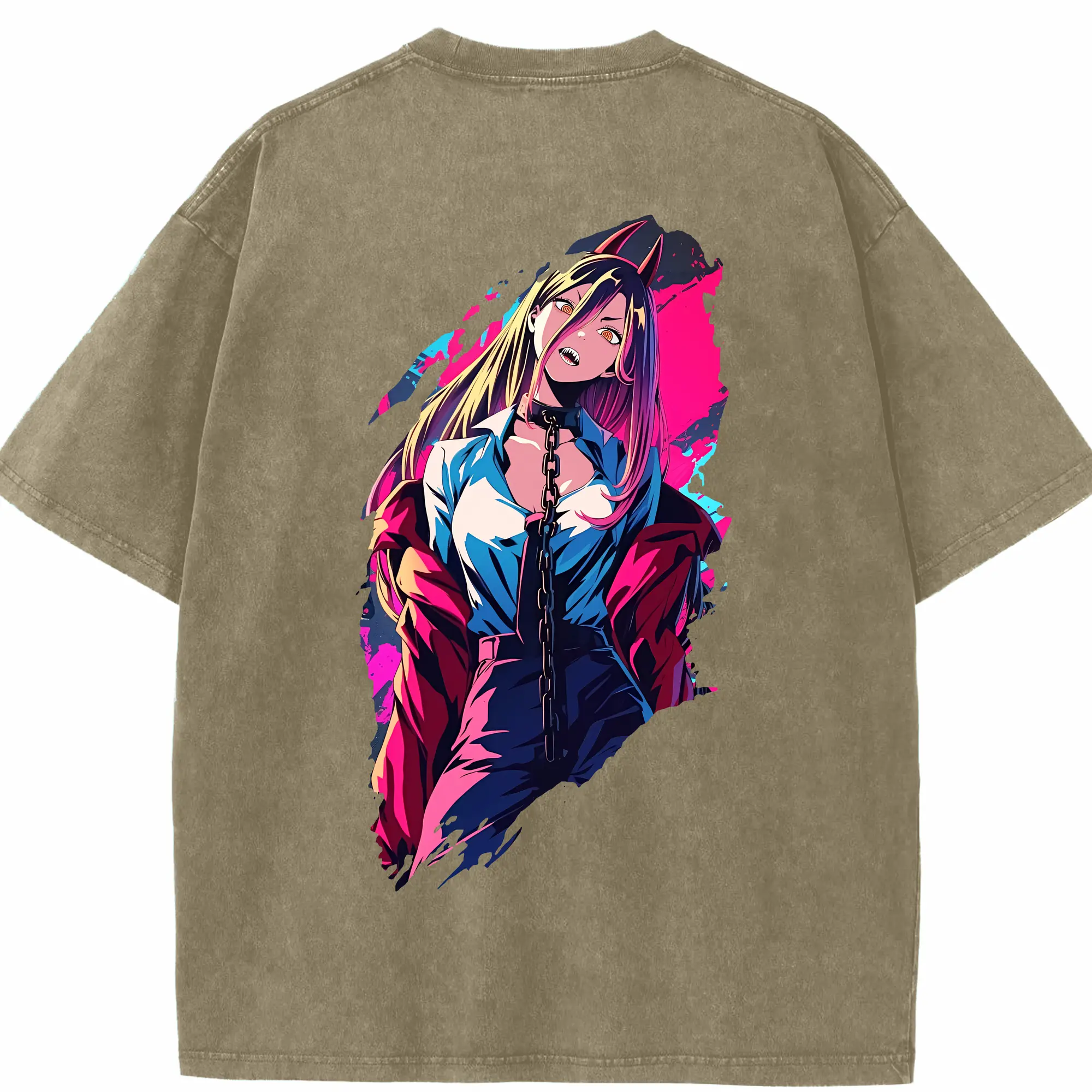 チェンソーマン グッズ,パワー - 綿100% ヴィンテージ風 半袖Tシャツ ・ フロントプリント ・ 柔らか肌触り ・ 通気性 快適 ・ スポーツ カジュアル 外出用
