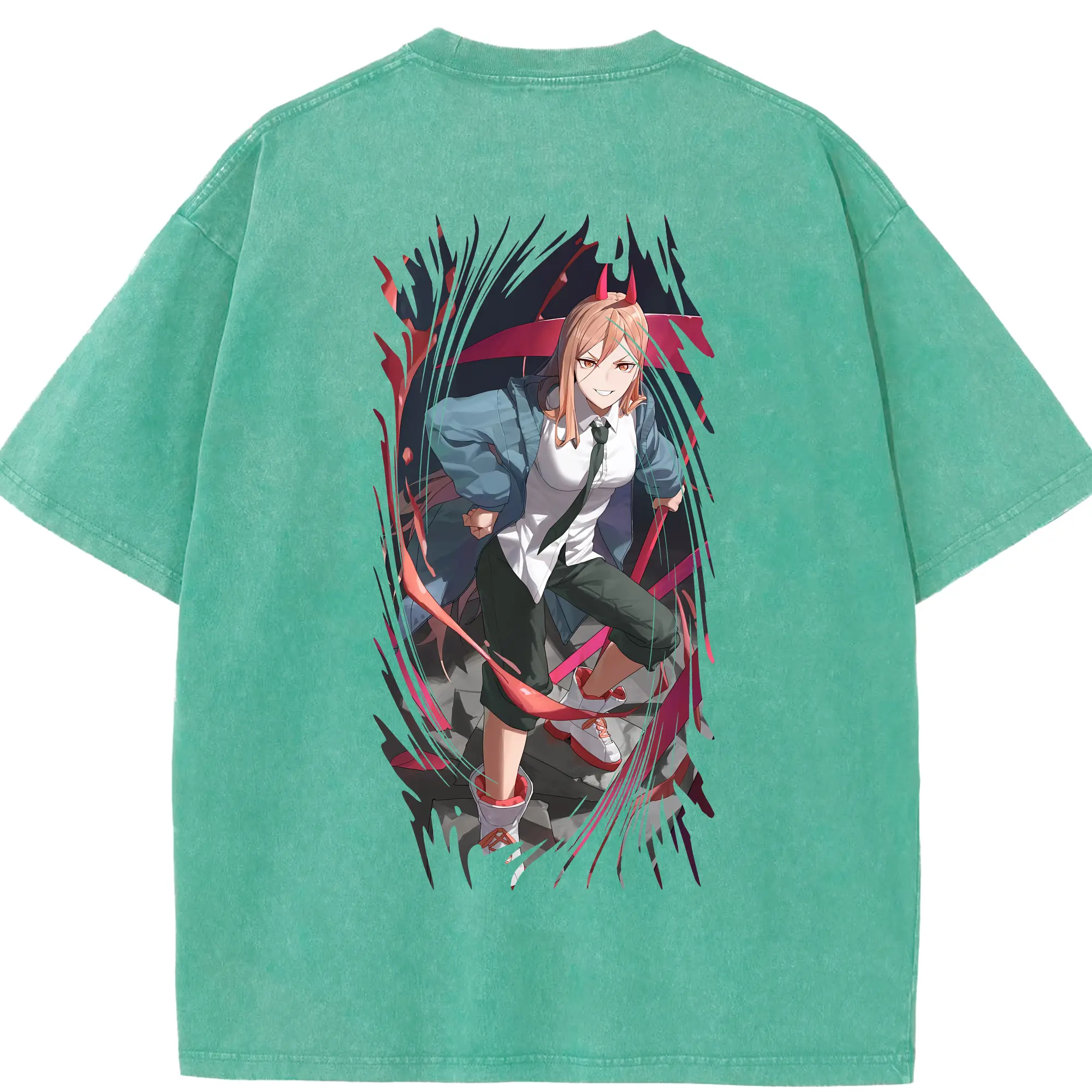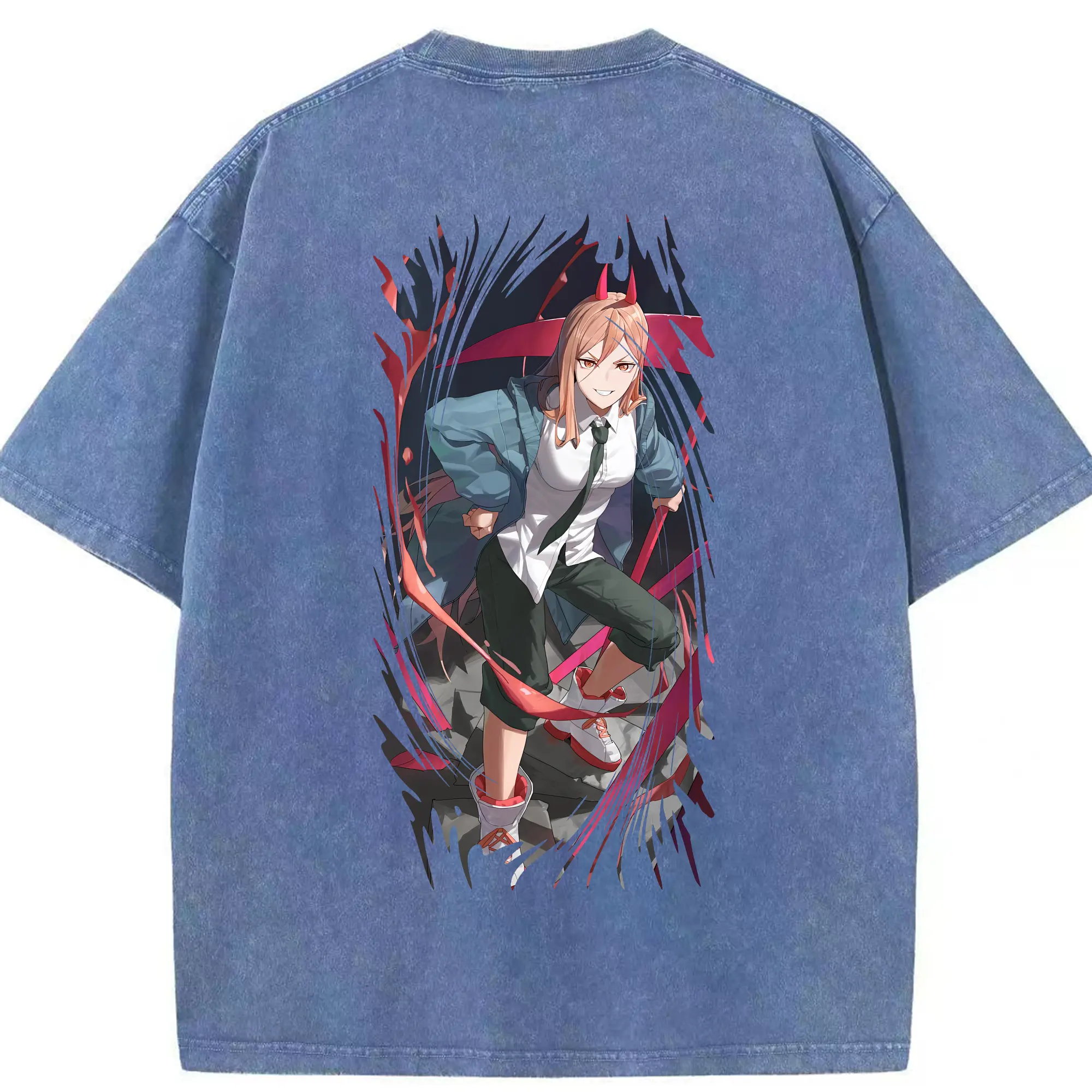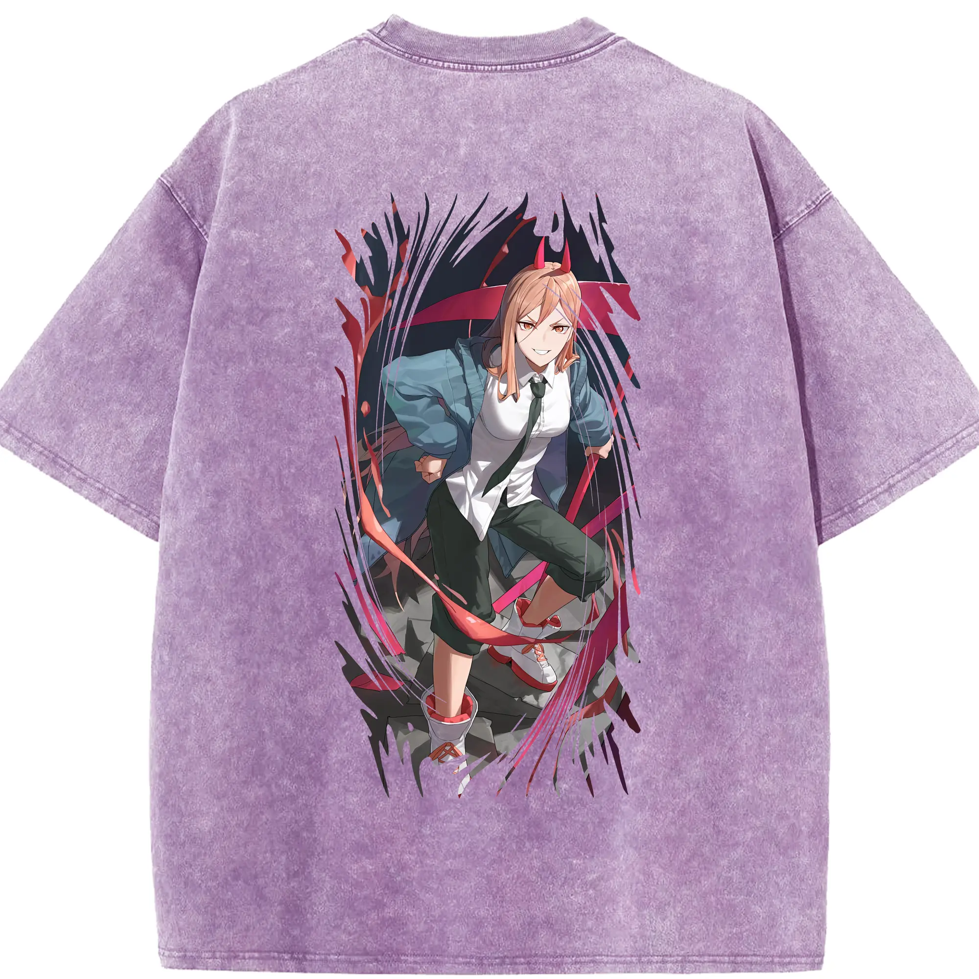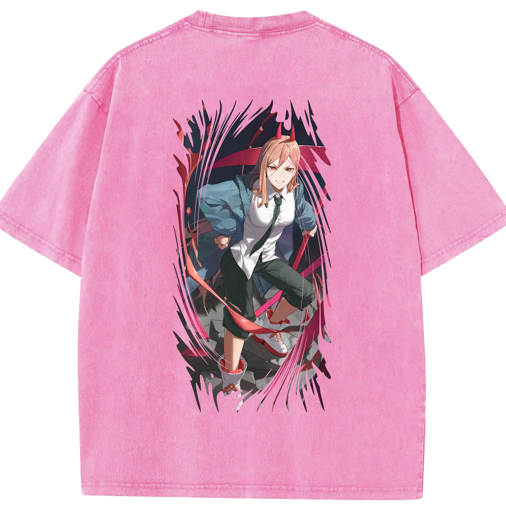 チェンソーマン グッズ,パワー - 綿100% ヴィンテージ風 半袖Tシャツ ・ フロントプリント ・ 柔らか肌触り ・ 通気性 快適 ・ スポーツ カジュアル 外出用