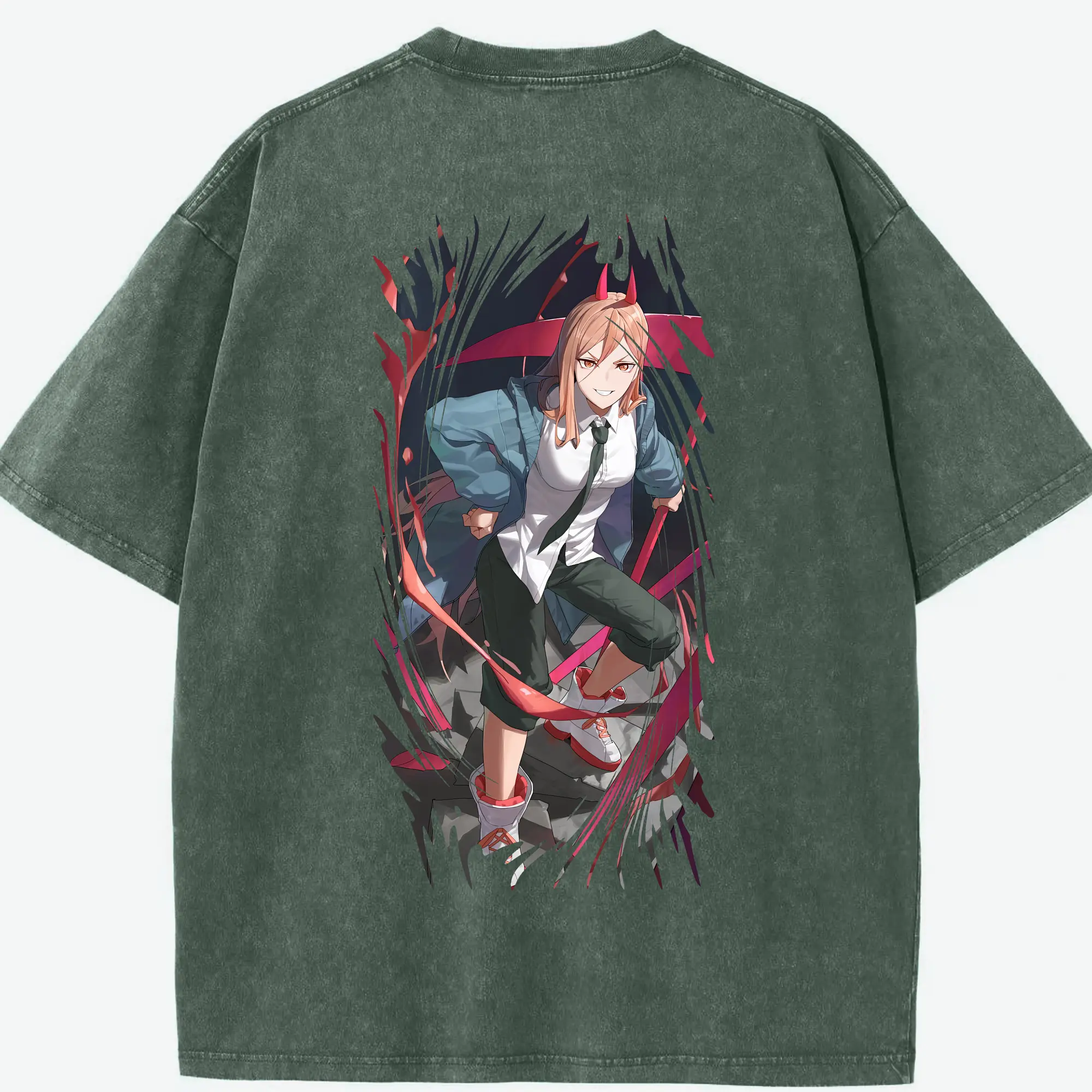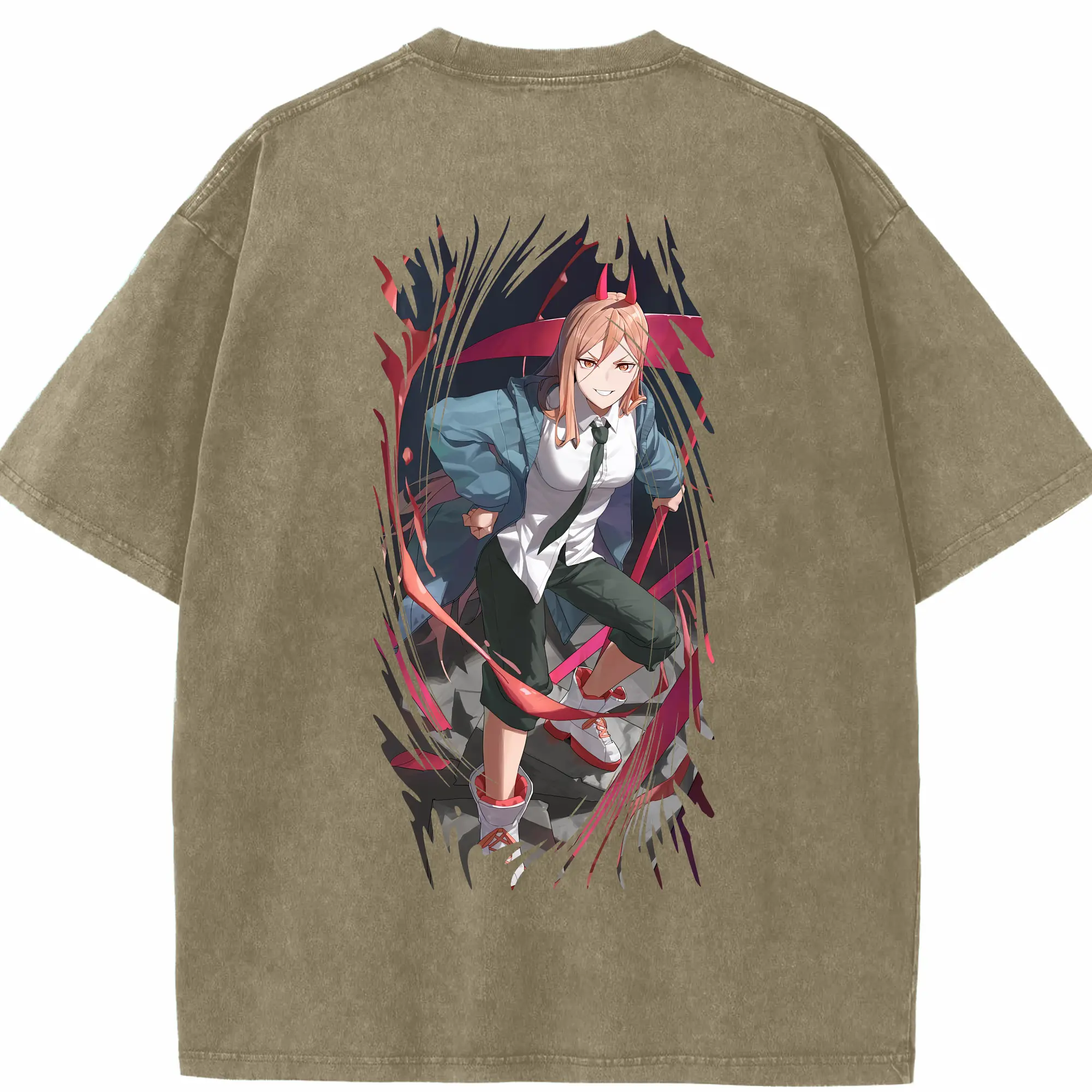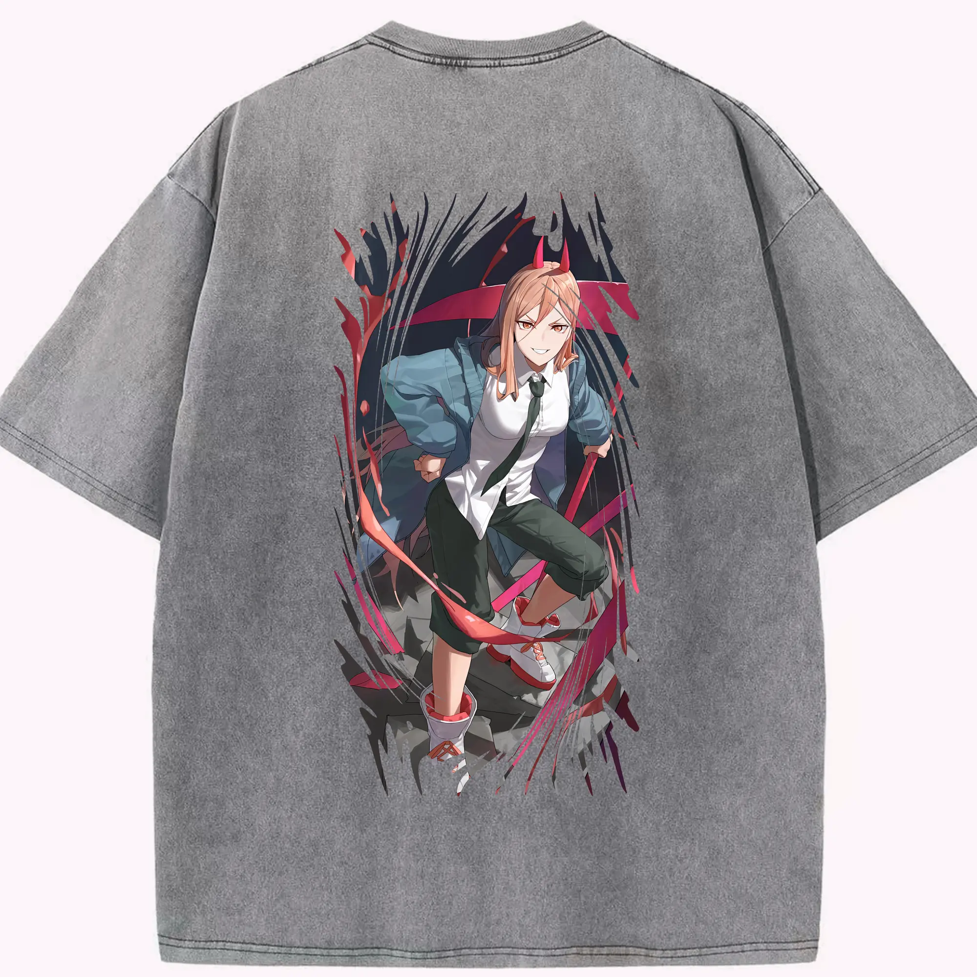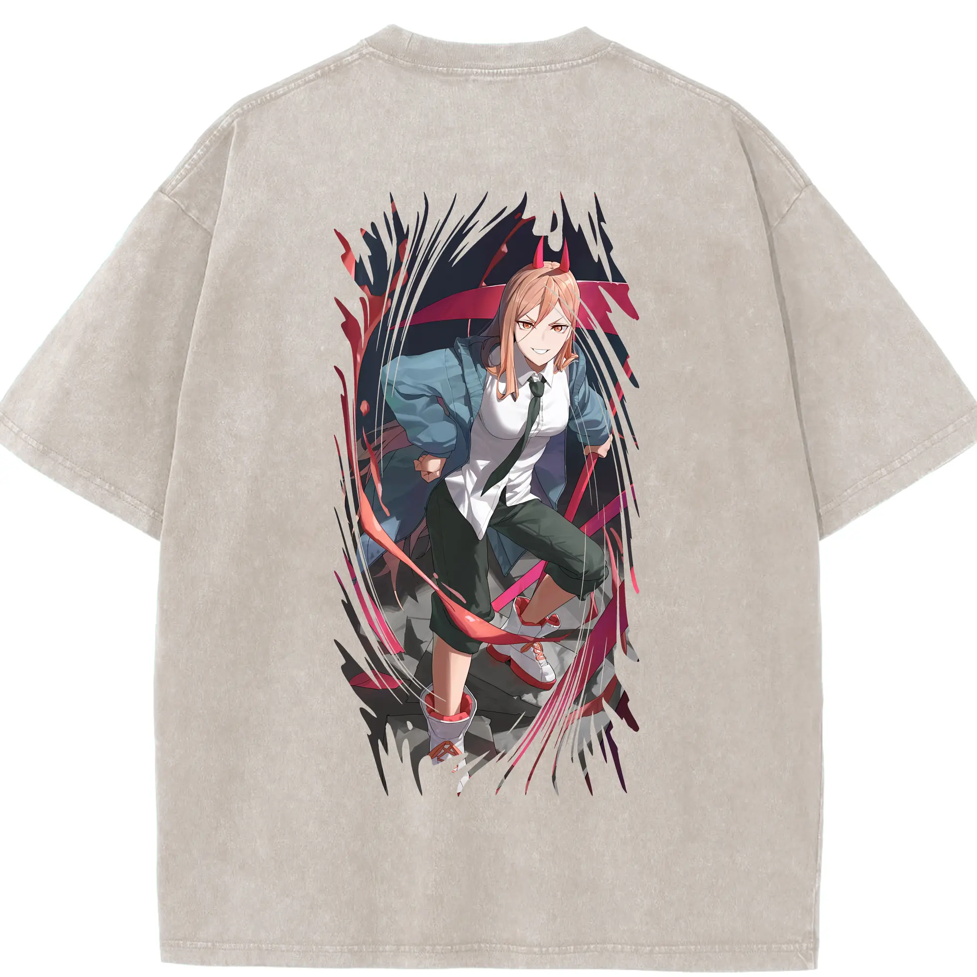 チェンソーマン グッズ,パワー - 綿100% ヴィンテージ風 半袖Tシャツ ・ フロントプリント ・ 柔らか肌触り ・ 通気性 快適 ・ スポーツ カジュアル 外出用