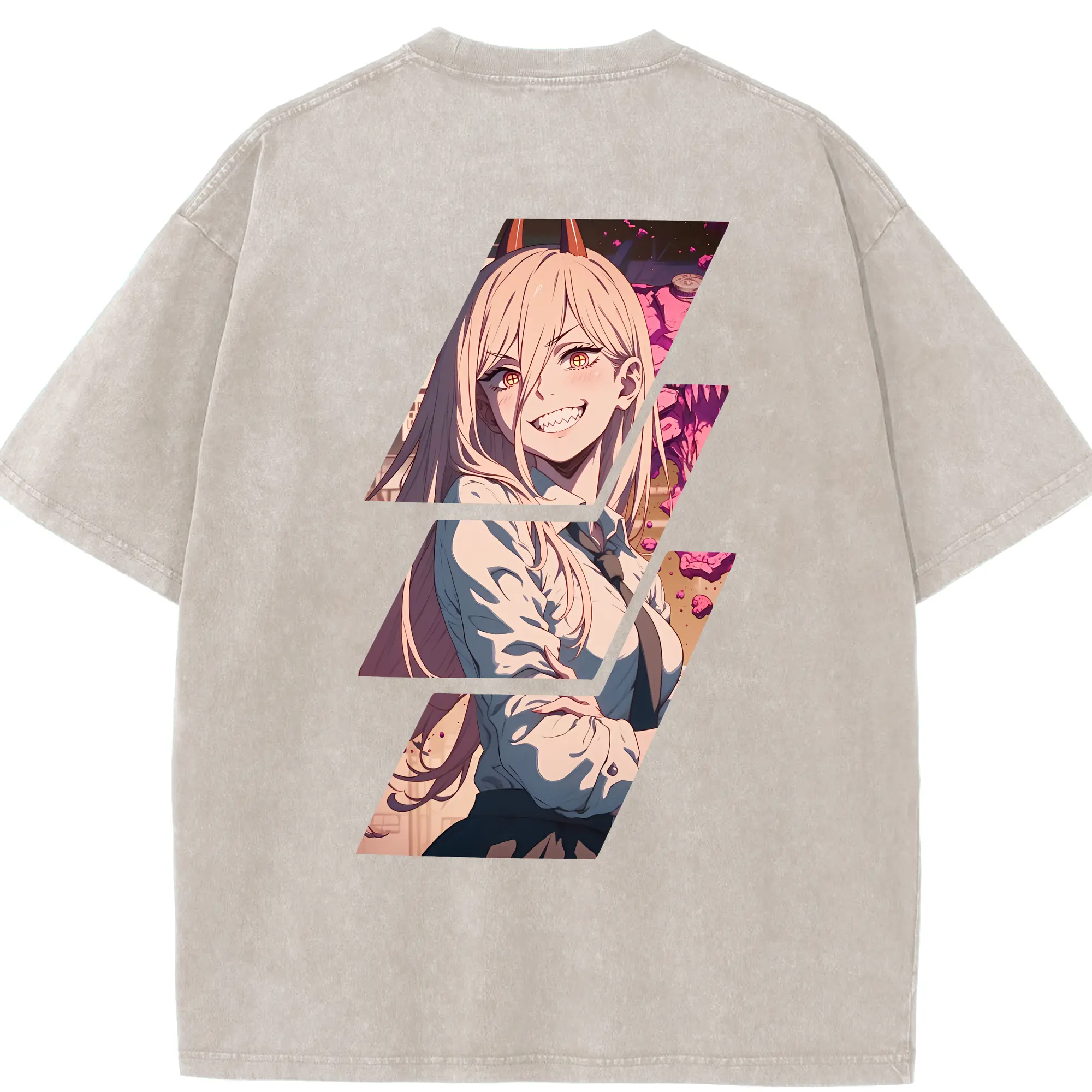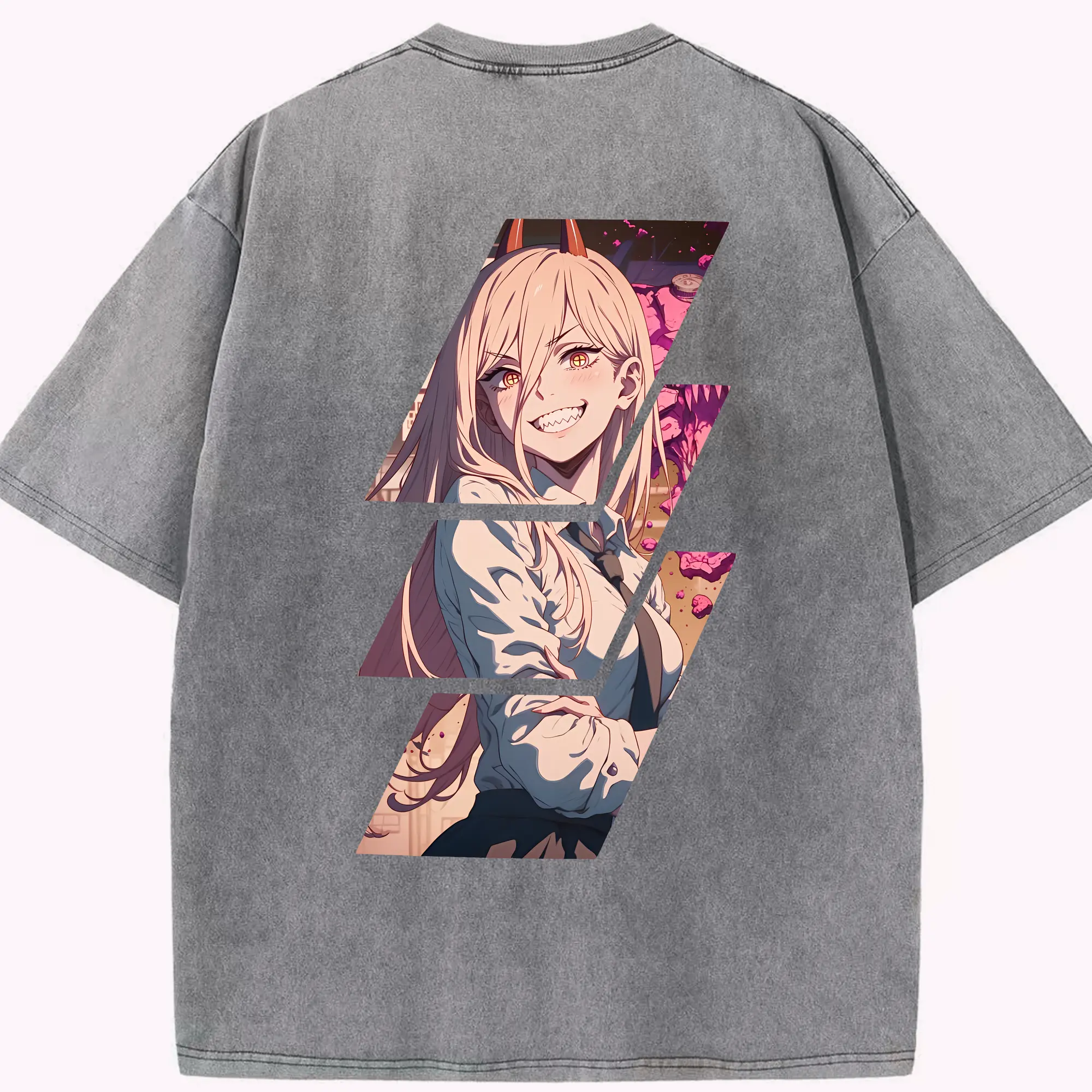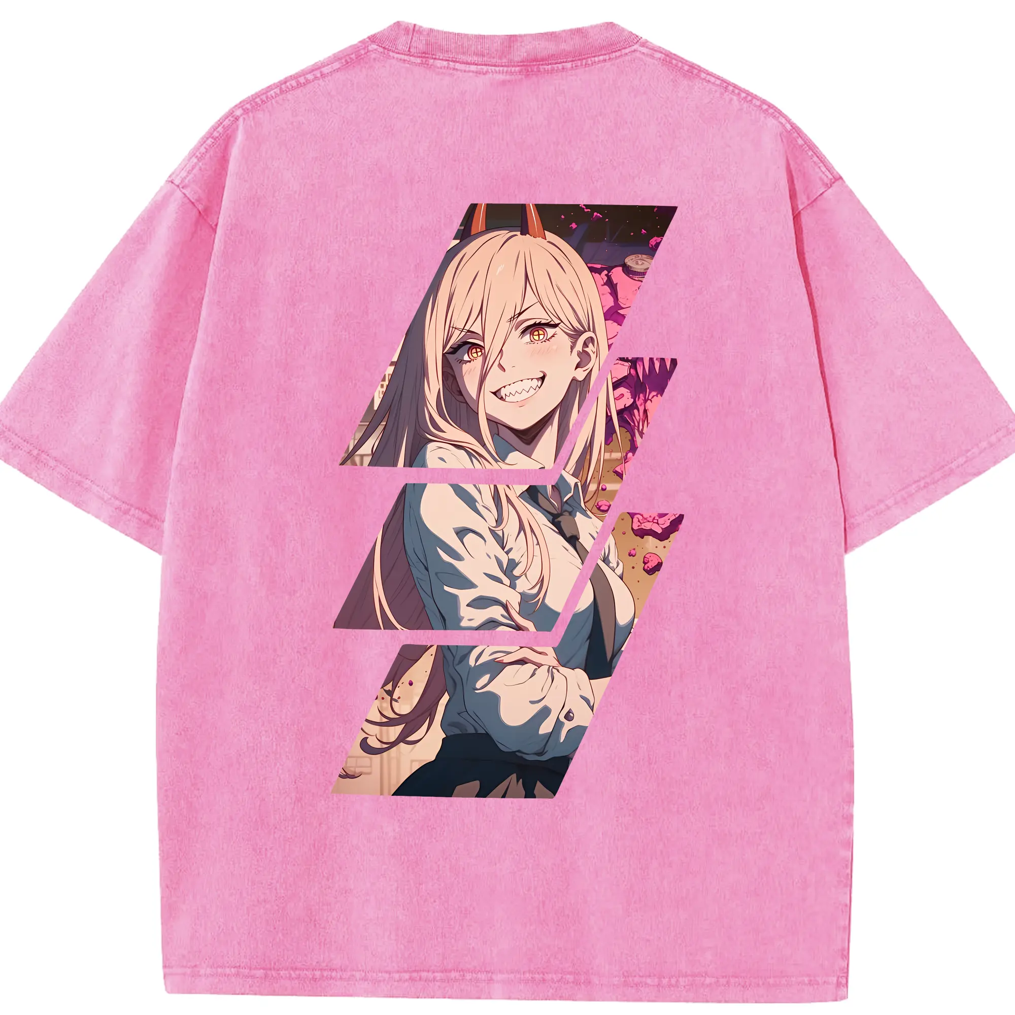 チェンソーマン グッズ,パワー - 綿100% ヴィンテージ風 半袖Tシャツ ・ フロントプリント ・ 柔らか肌触り ・ 通気性 快適 ・ スポーツ カジュアル 外出用