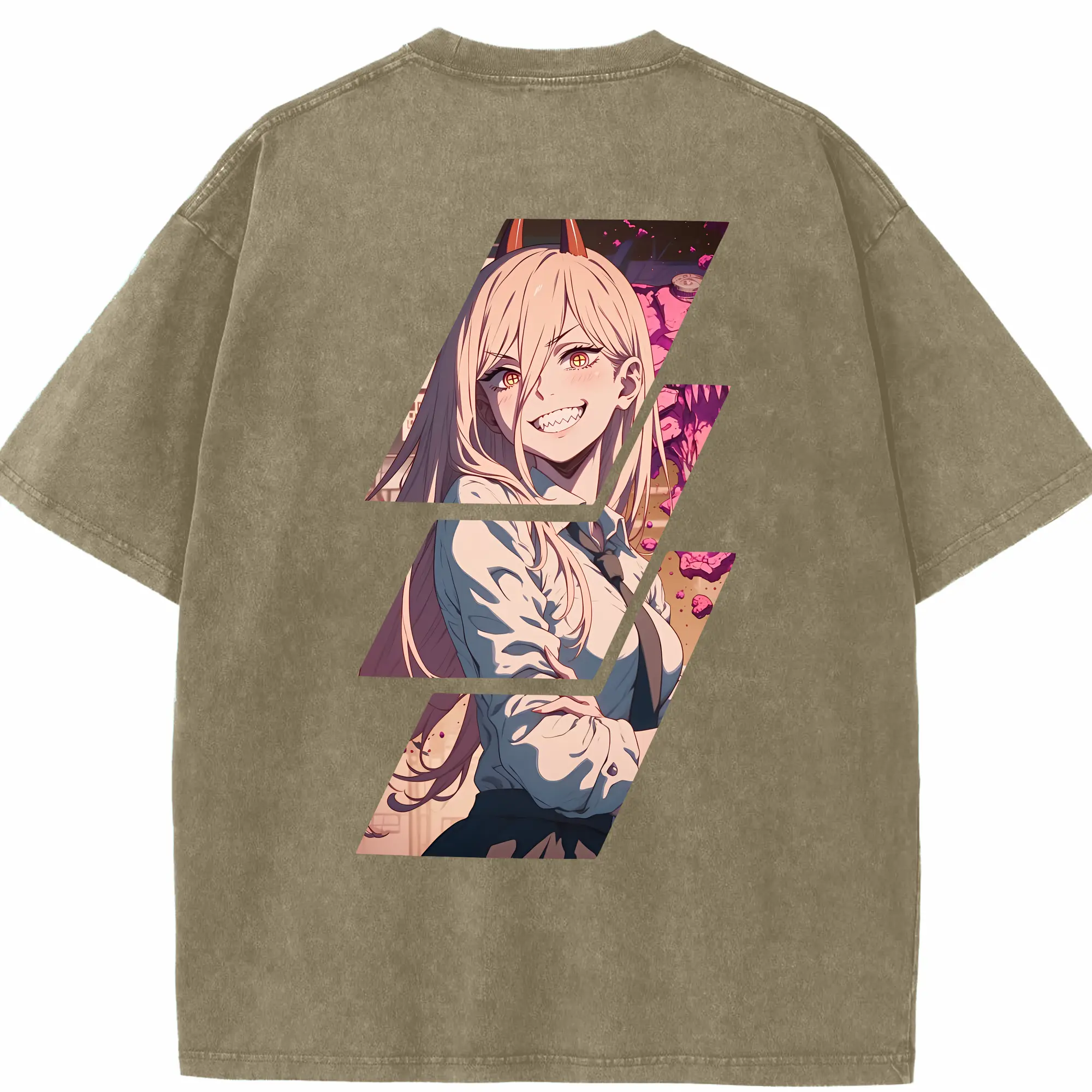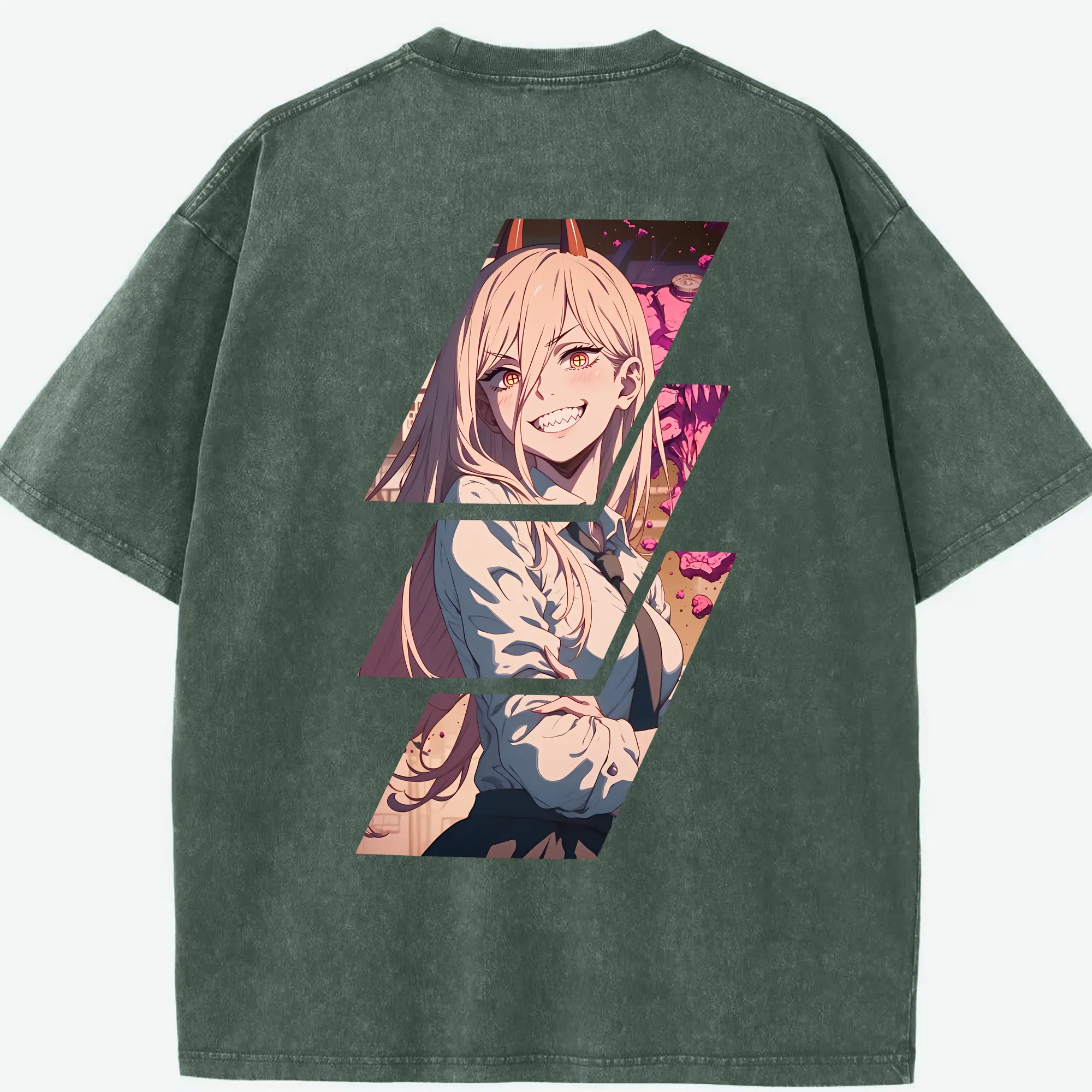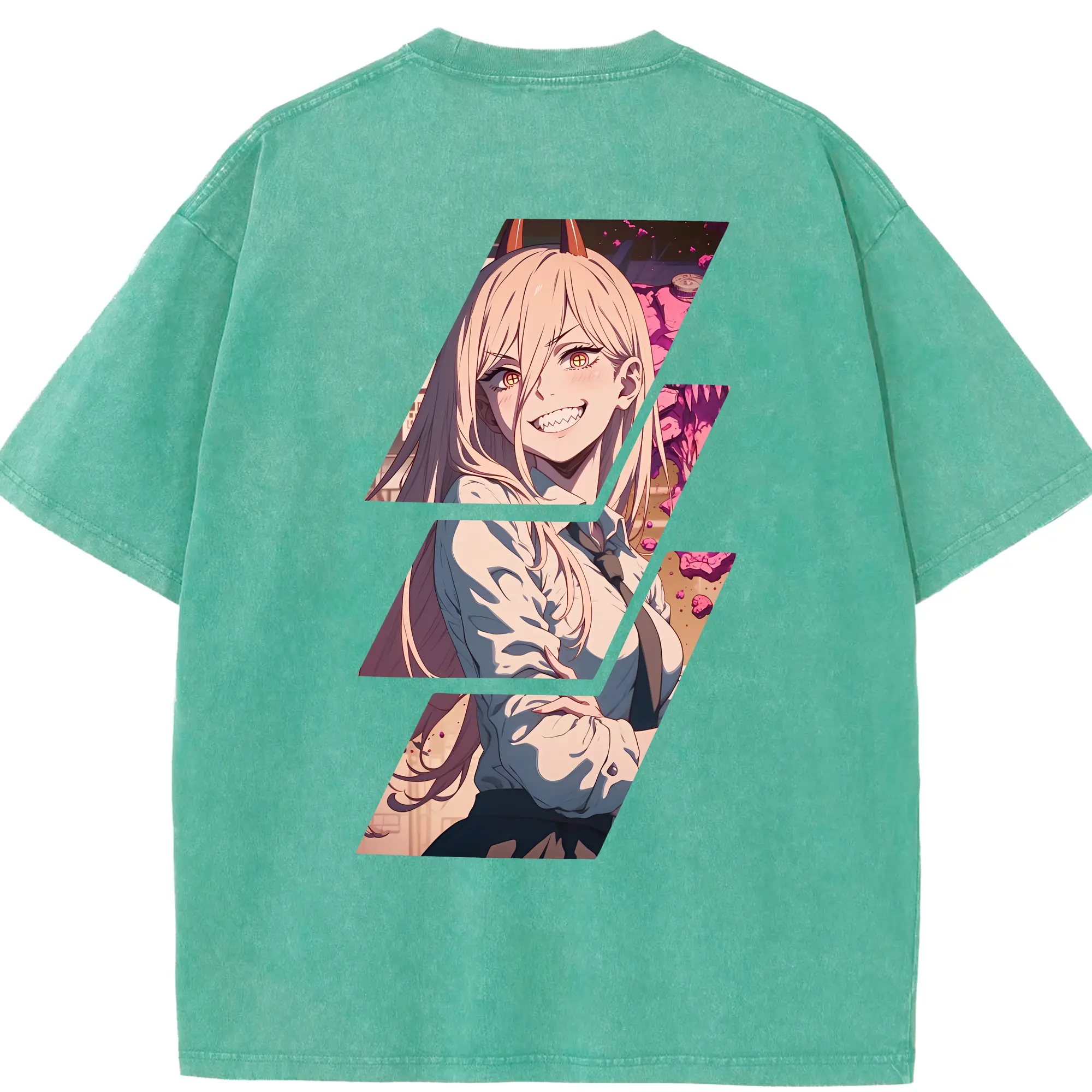チェンソーマン グッズ,パワー - 綿100% ヴィンテージ風 半袖Tシャツ ・ フロントプリント ・ 柔らか肌触り ・ 通気性 快適 ・ スポーツ カジュアル 外出用