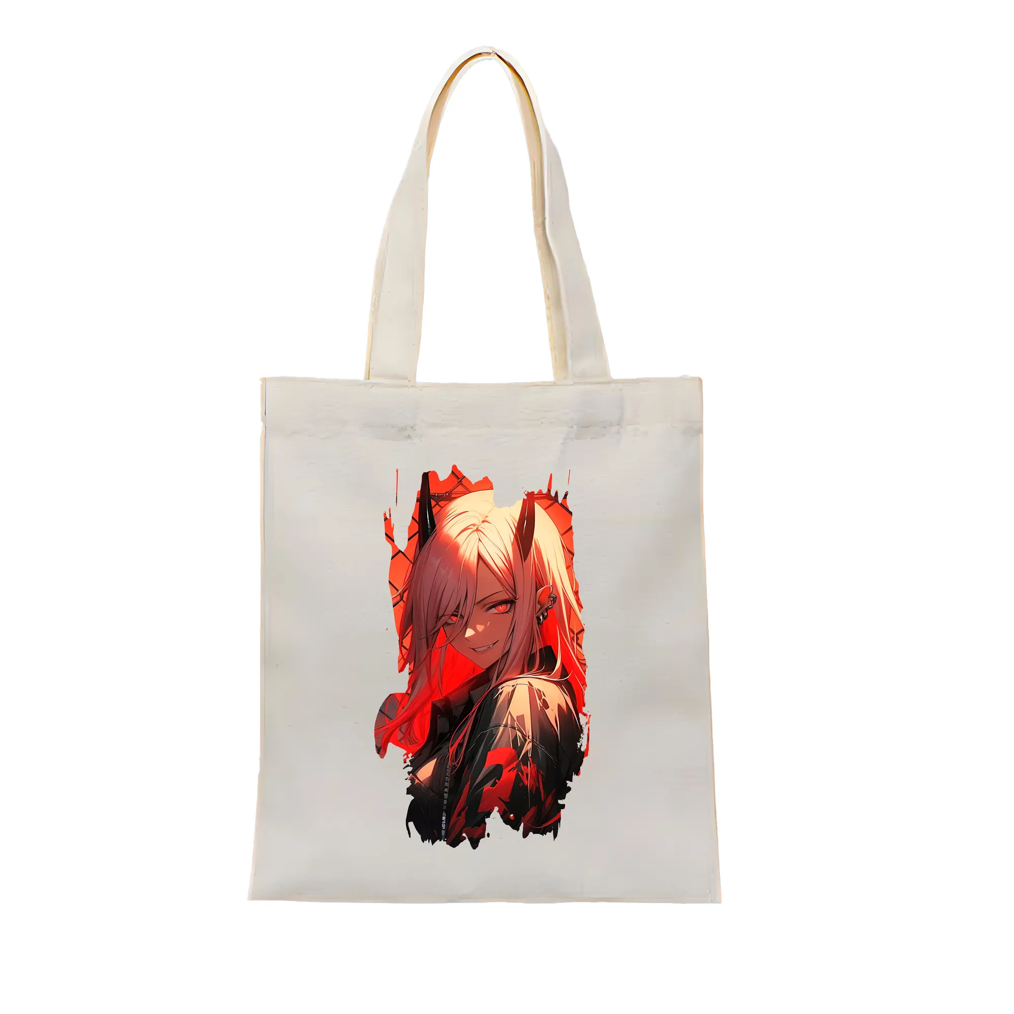 チェンソーマン グッズ,パワー - 縦型キャンバス手提げバッグ(トートバッグ) ・ キャンバス素材 ・ ショッピング用 ・ 軽量 丈夫 お手入れ簡単