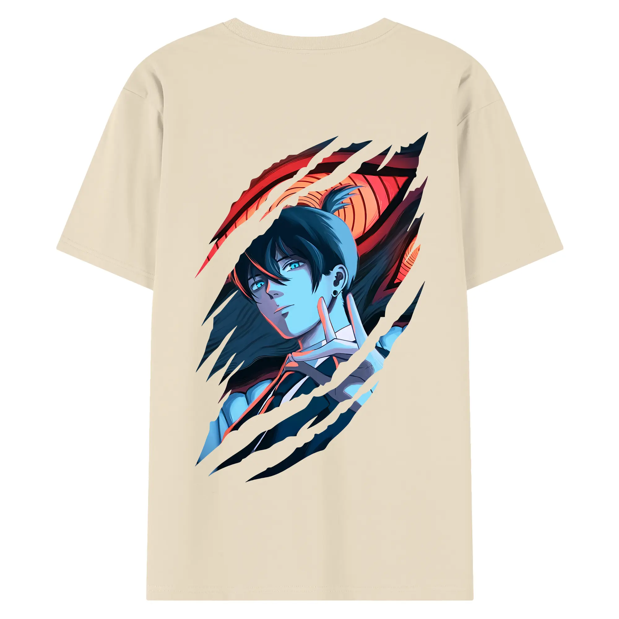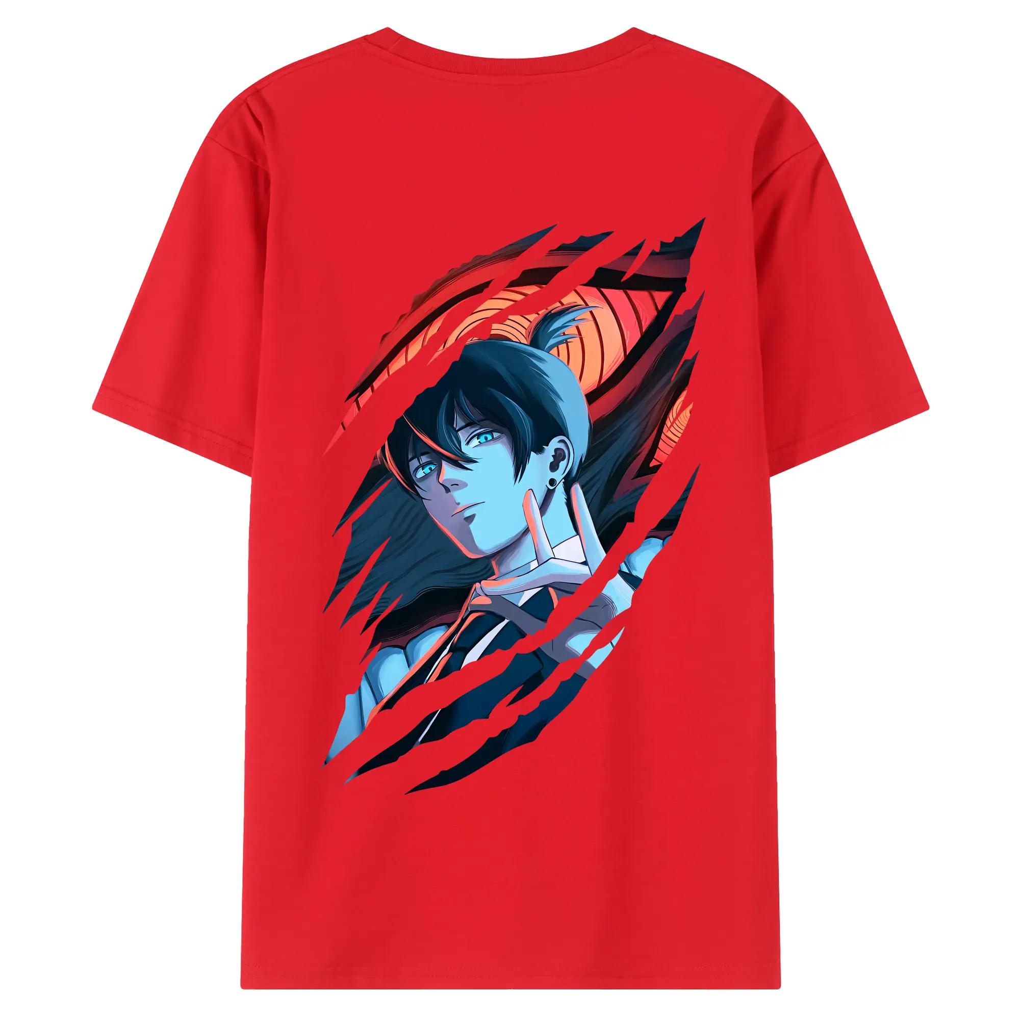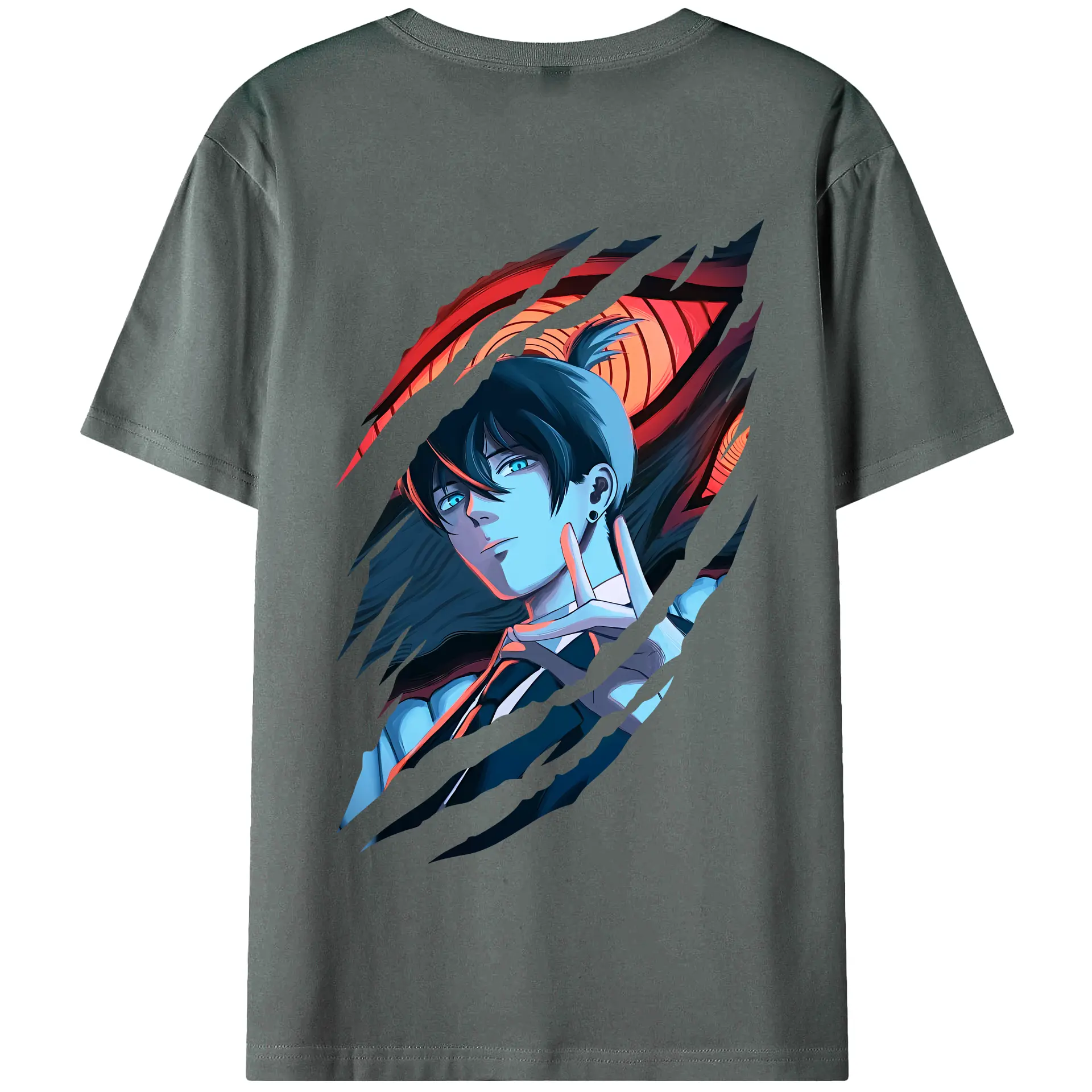 チェンソーマン グッズ,早川アキ - 綿100% ヴィンテージ風 半袖Tシャツ ・ 背面プリント ・ 柔らか肌触り ・ 通気性 快適 ・ スポーツ カジュアル 外出用