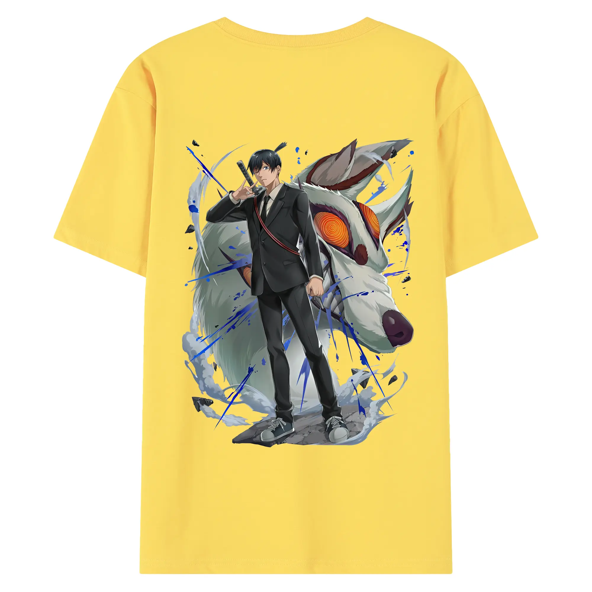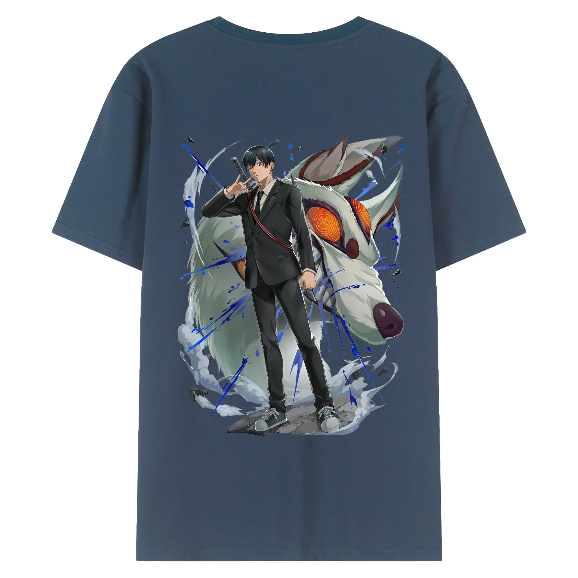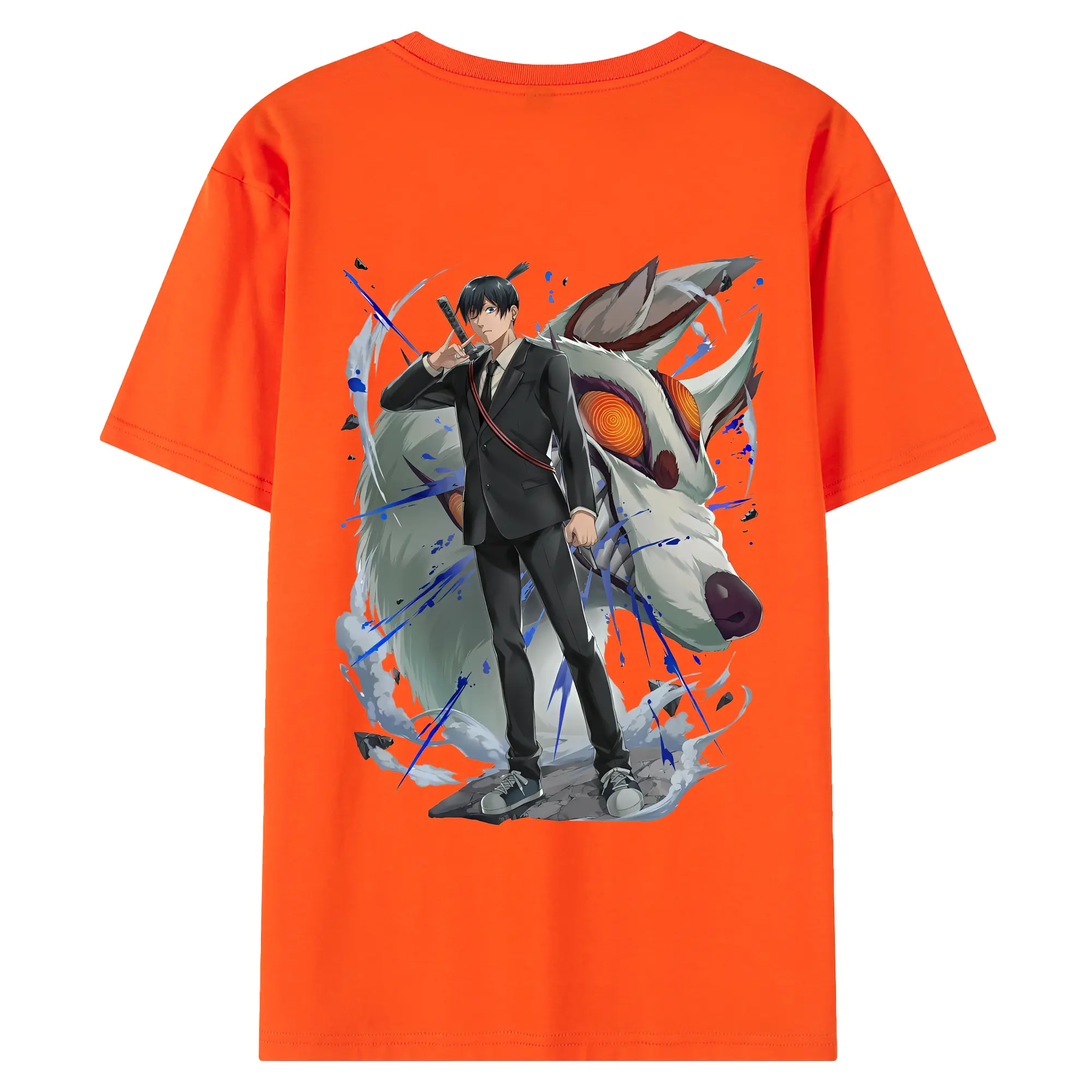 チェンソーマン グッズ,早川アキ - 綿100% ヴィンテージ風 半袖Tシャツ ・ 背面プリント ・ 柔らか肌触り ・ 通気性 快適 ・ スポーツ カジュアル 外出用