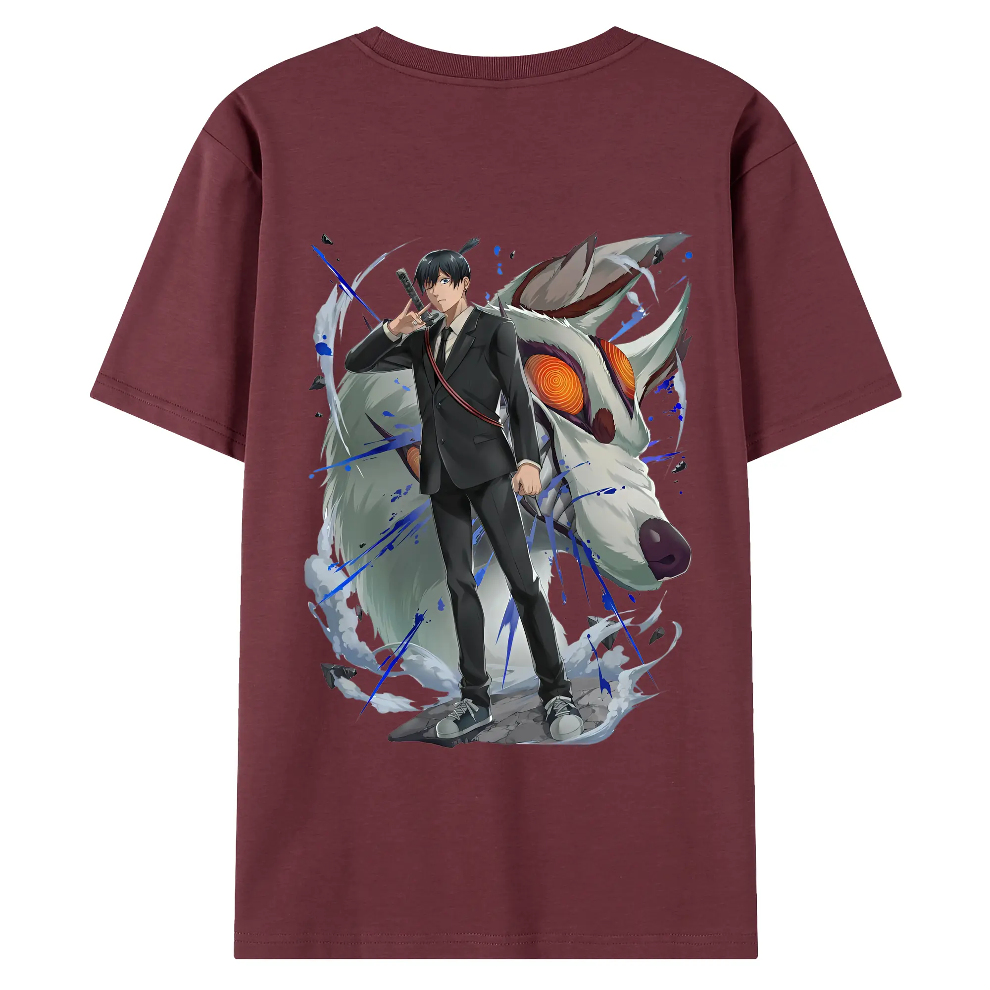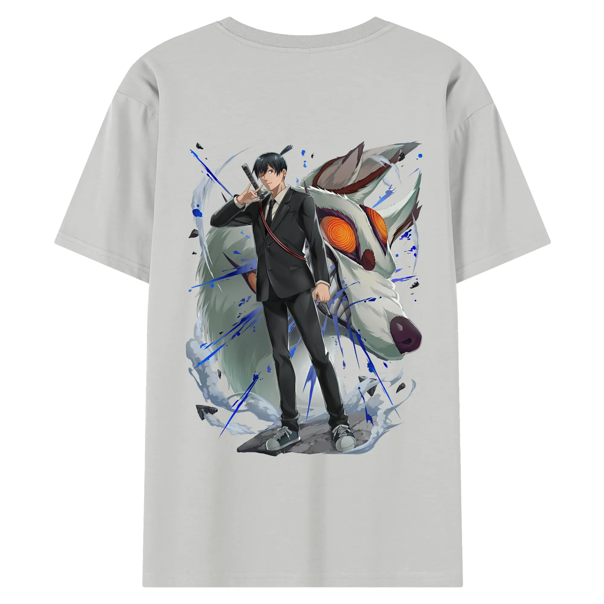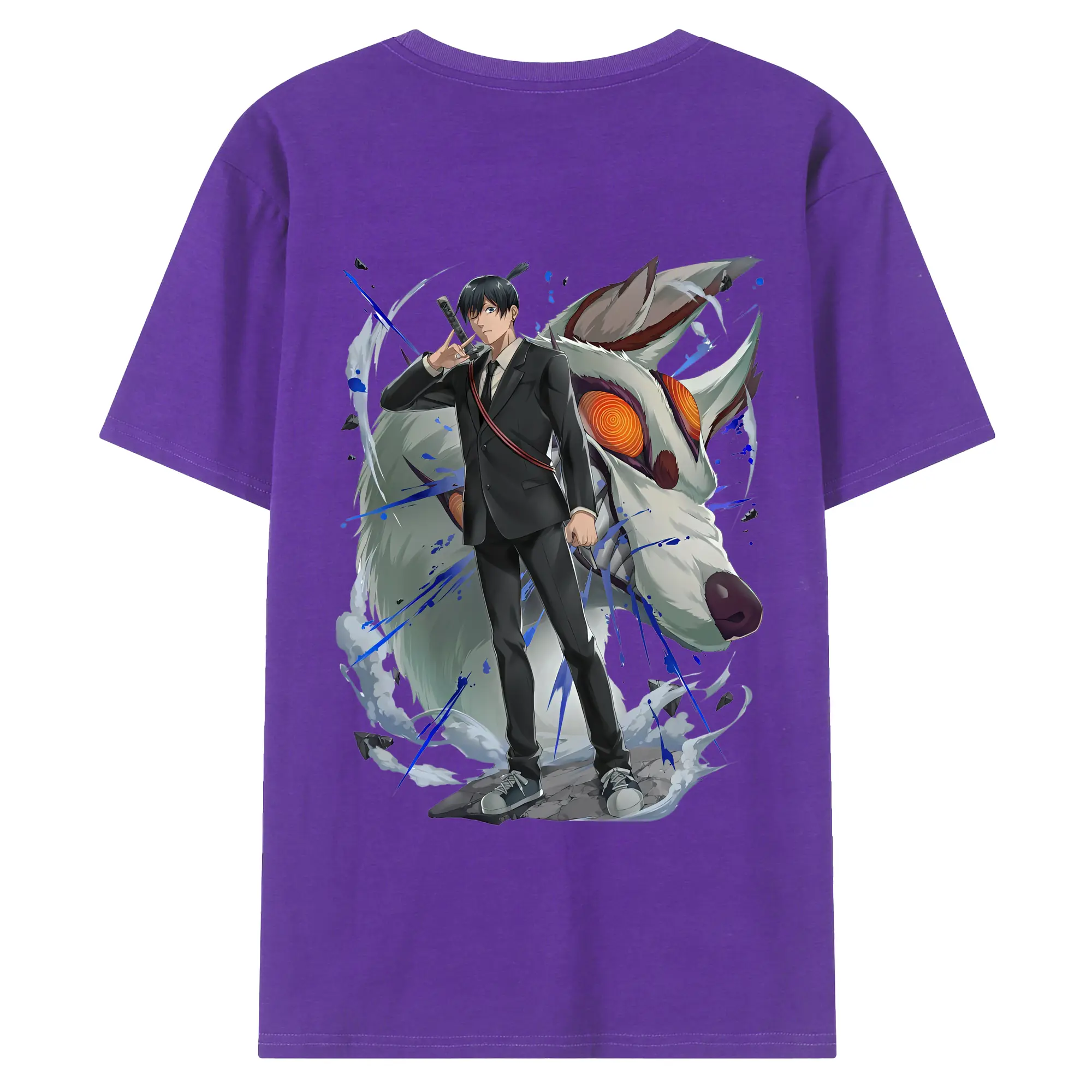 チェンソーマン グッズ,早川アキ - 綿100% ヴィンテージ風 半袖Tシャツ ・ 背面プリント ・ 柔らか肌触り ・ 通気性 快適 ・ スポーツ カジュアル 外出用
