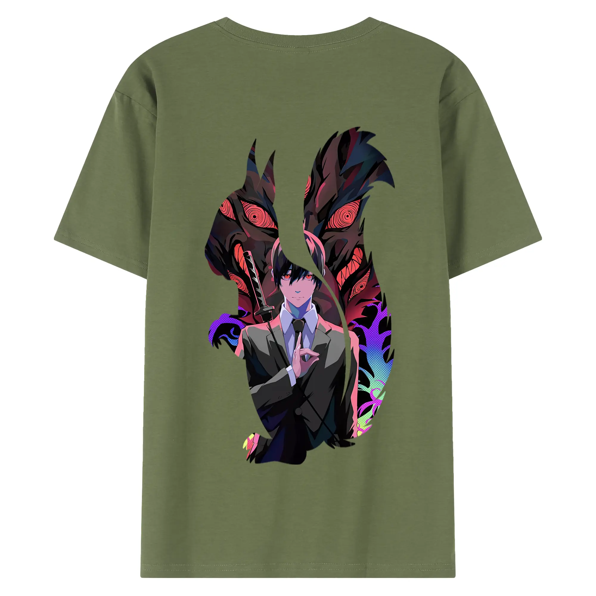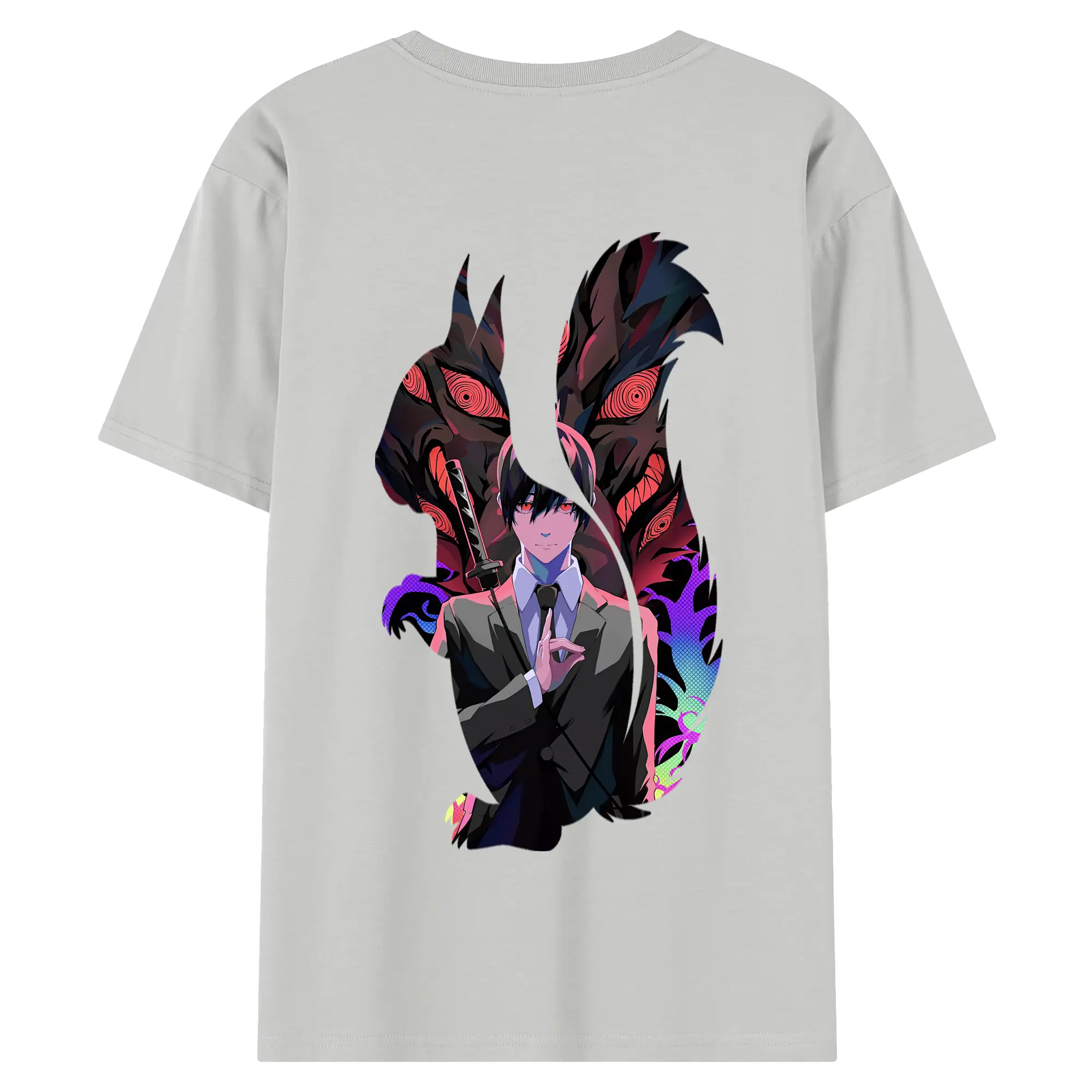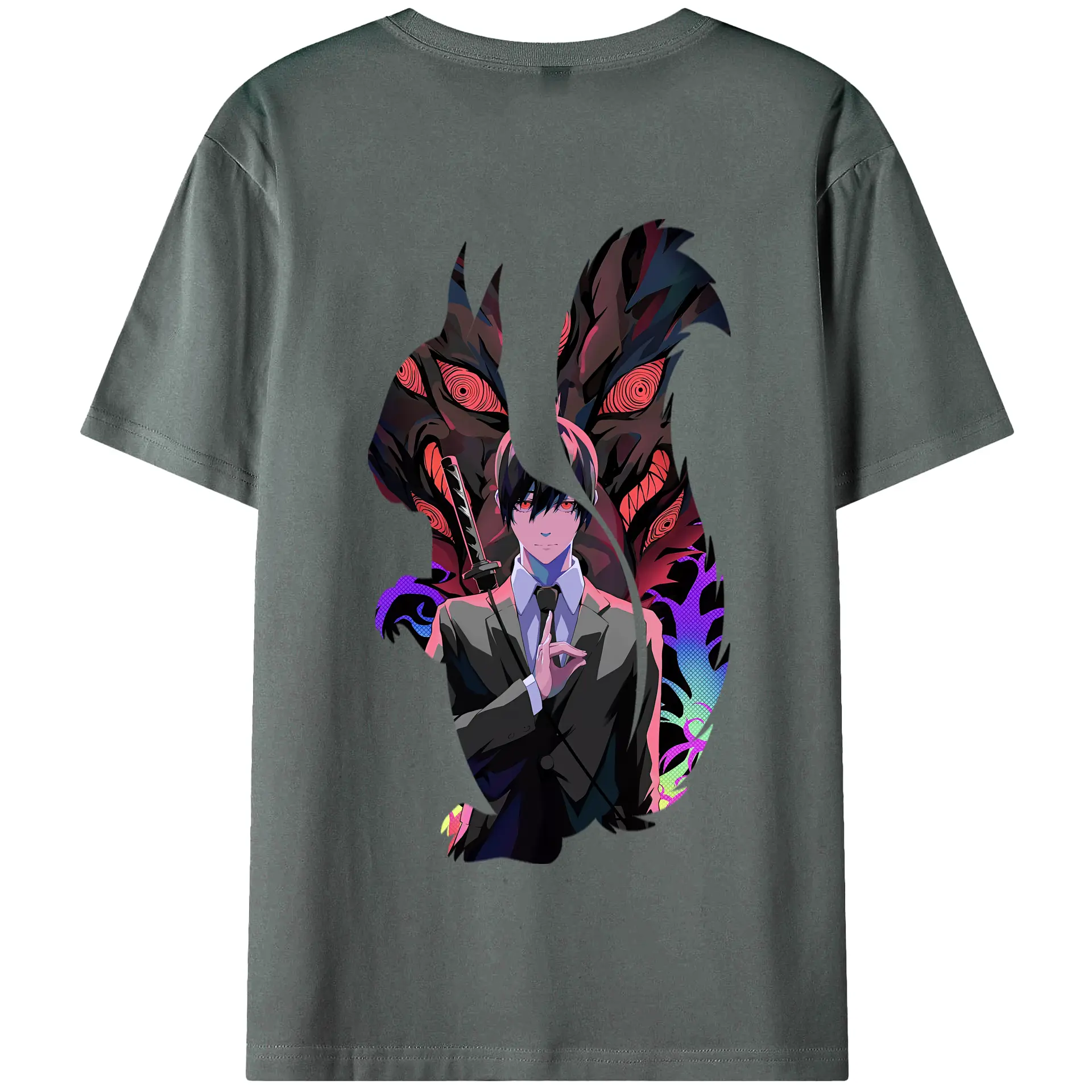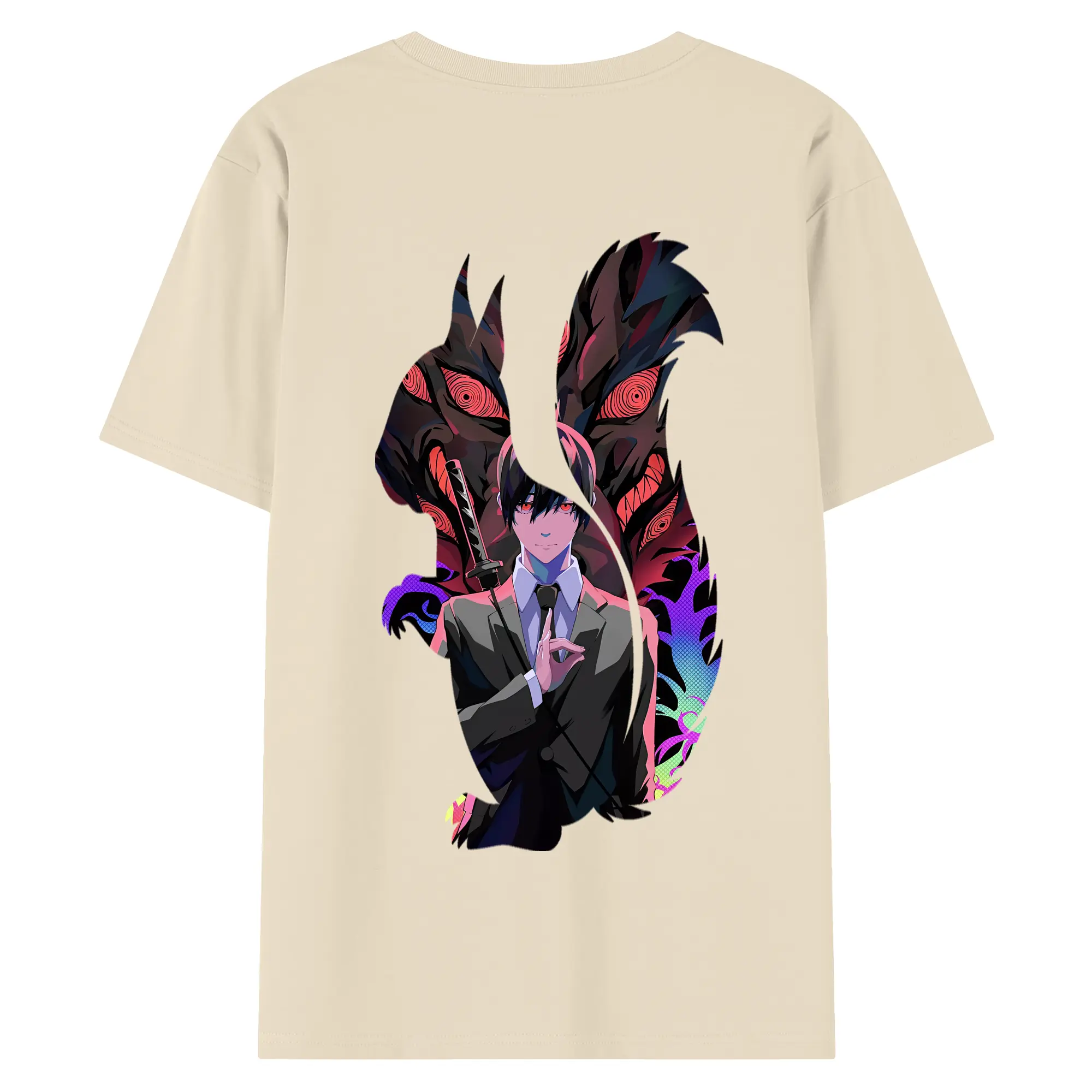 チェンソーマン グッズ,早川アキ - 綿100% ヴィンテージ風 半袖Tシャツ ・ 背面プリント ・ 柔らか肌触り ・ 通気性 快適 ・ スポーツ カジュアル 外出用
