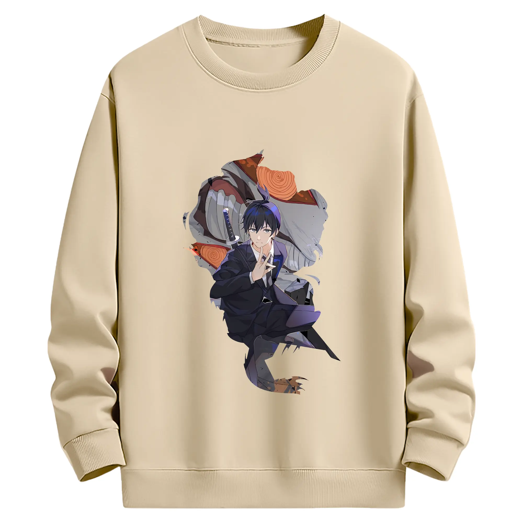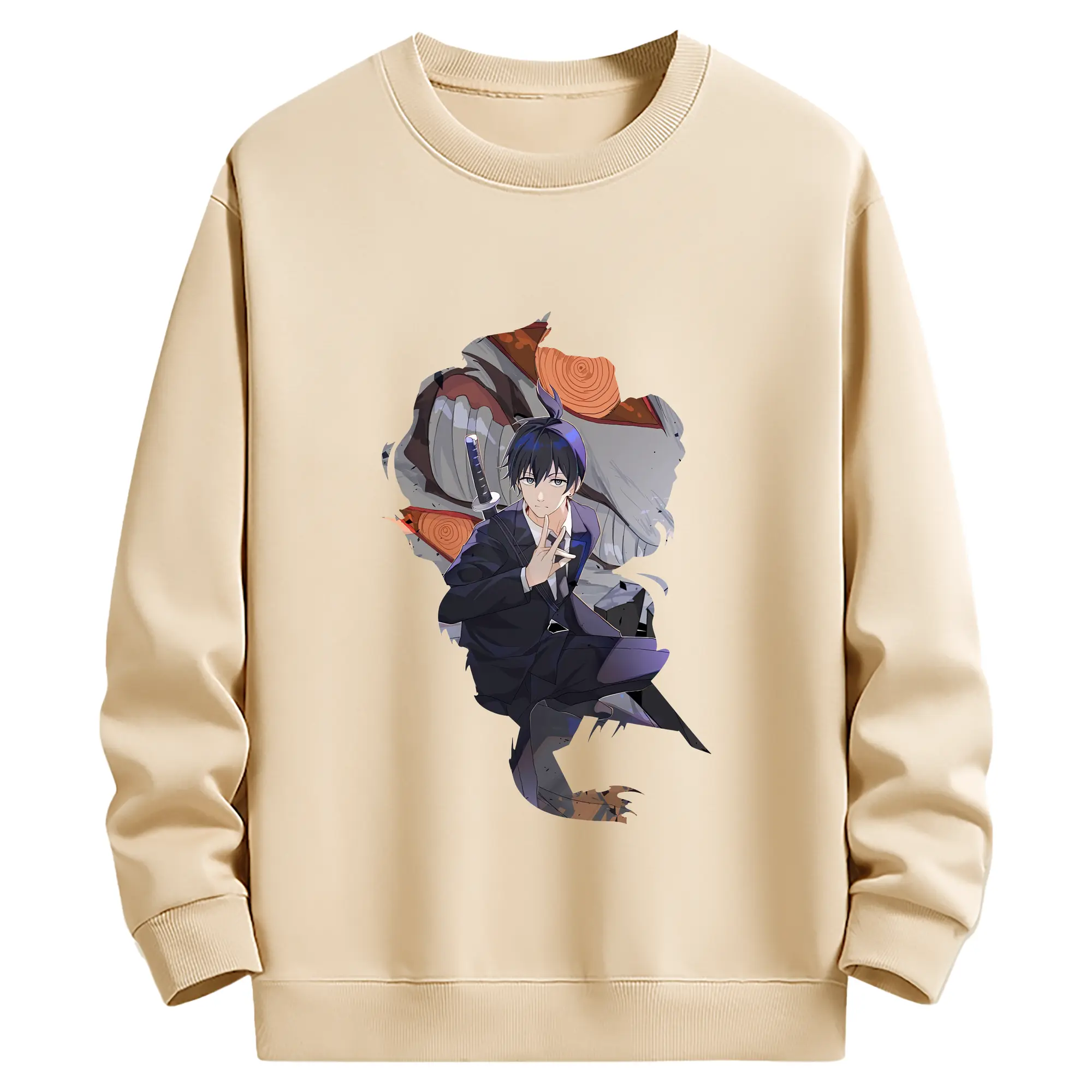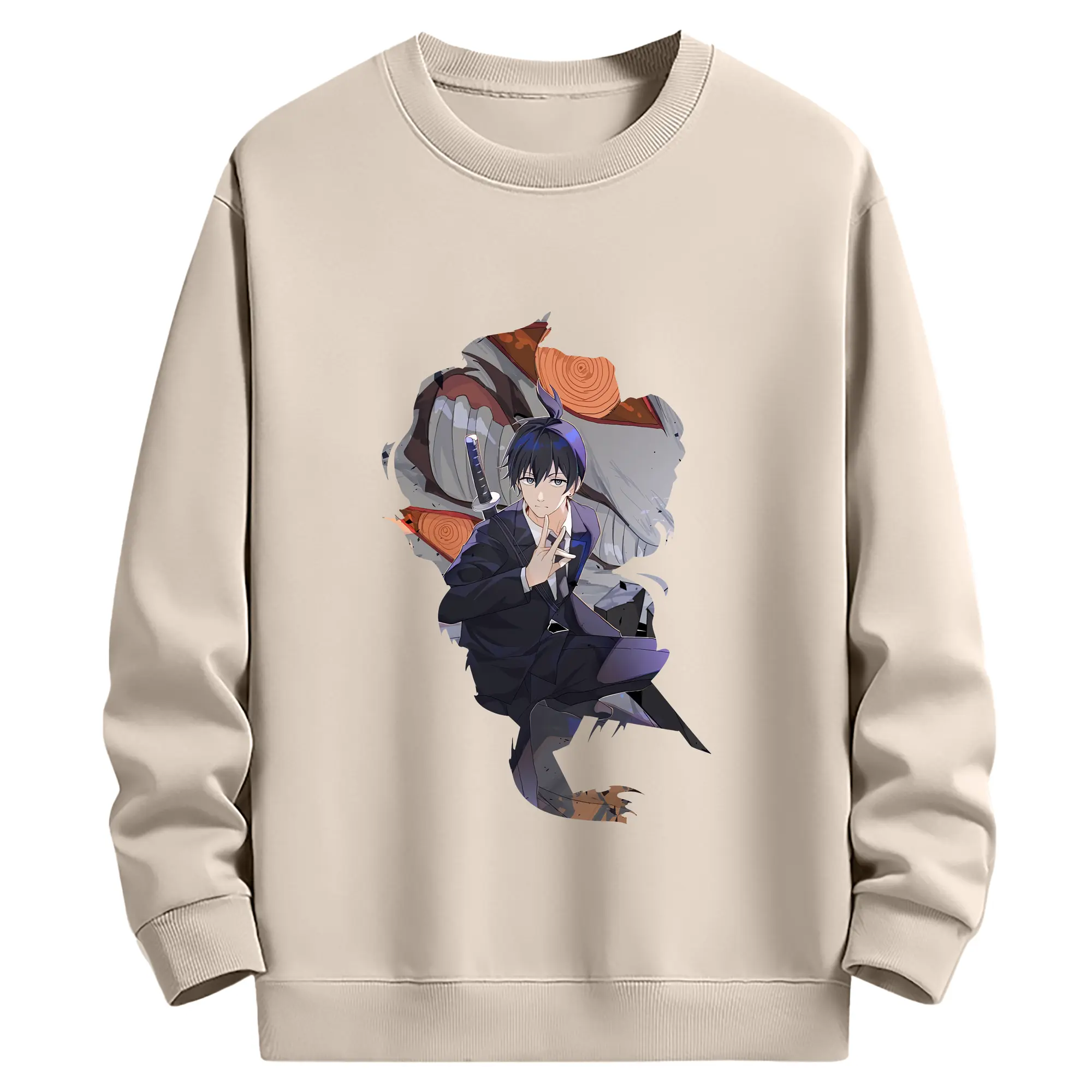 チェンソーマン グッズ,早川アキ - 薄手 クルーネック スウェット 裏毛260g · ポリエステル 春秋向け カジュアル 男女兼用 · トレーナー デイリー スポーツ 散歩に最適