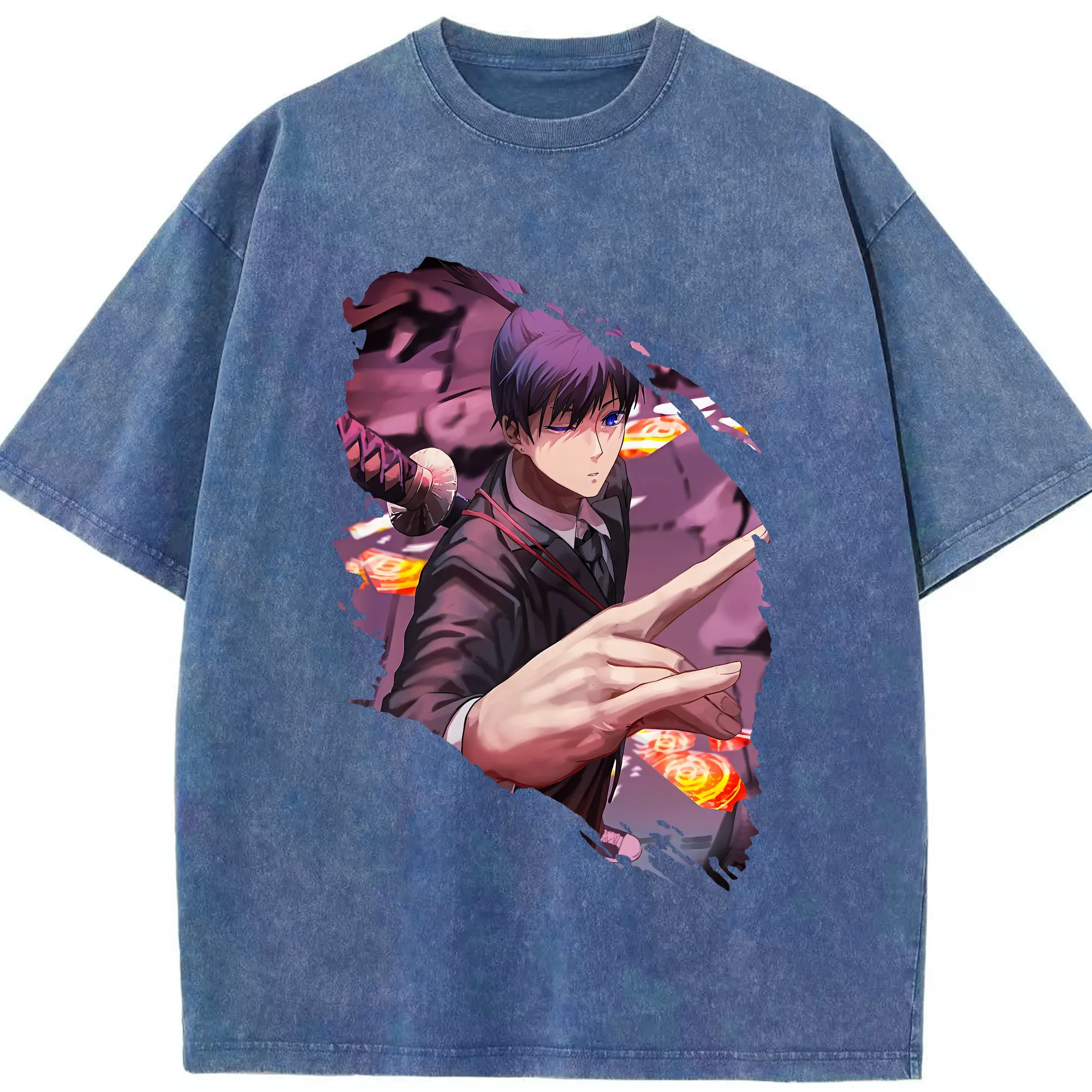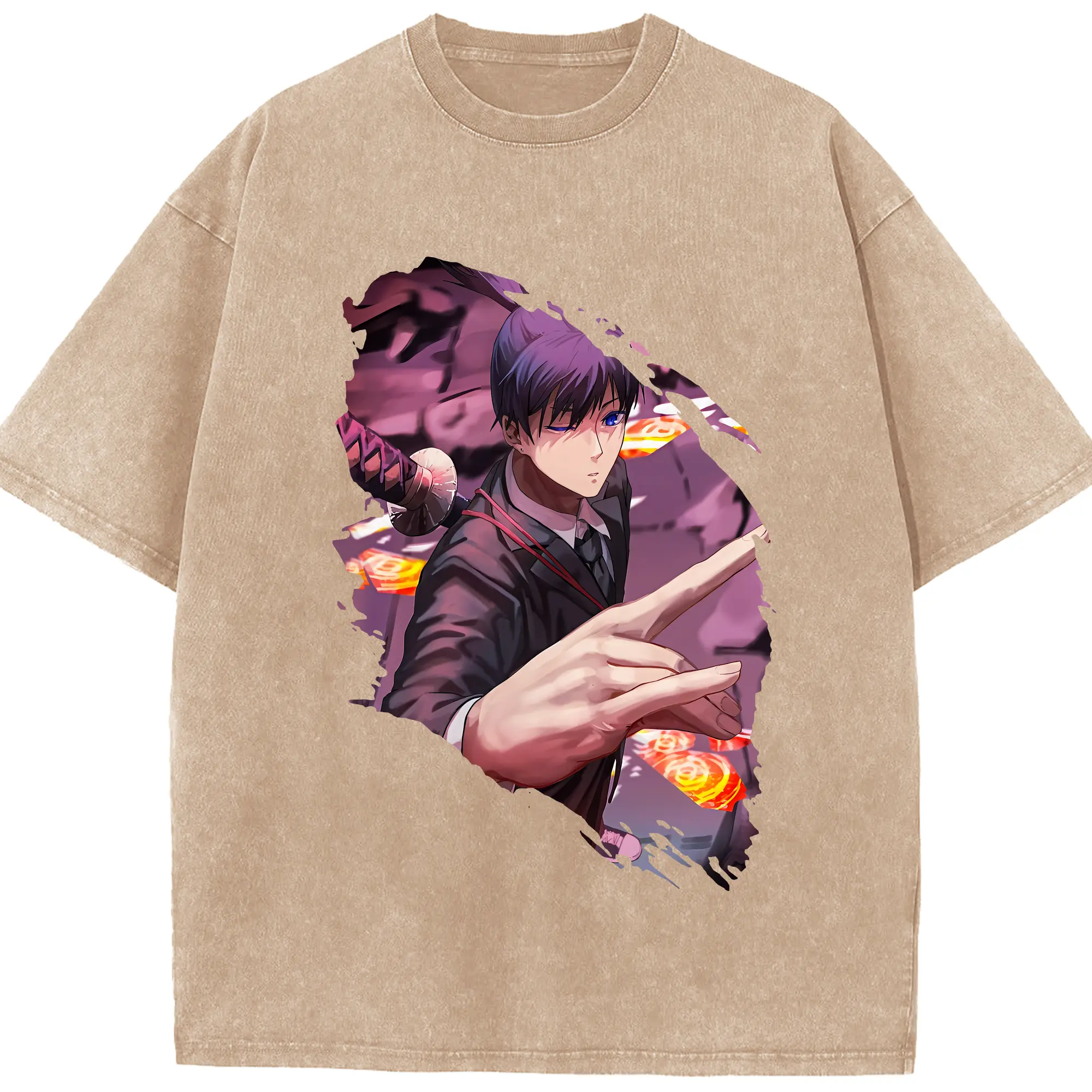チェンソーマン グッズ,早川アキ - 綿100% ヴィンテージ風 半袖Tシャツ ・ 背面プリント ・ 柔らか肌触り ・ 通気性 快適 ・ スポーツ カジュアル 外出用