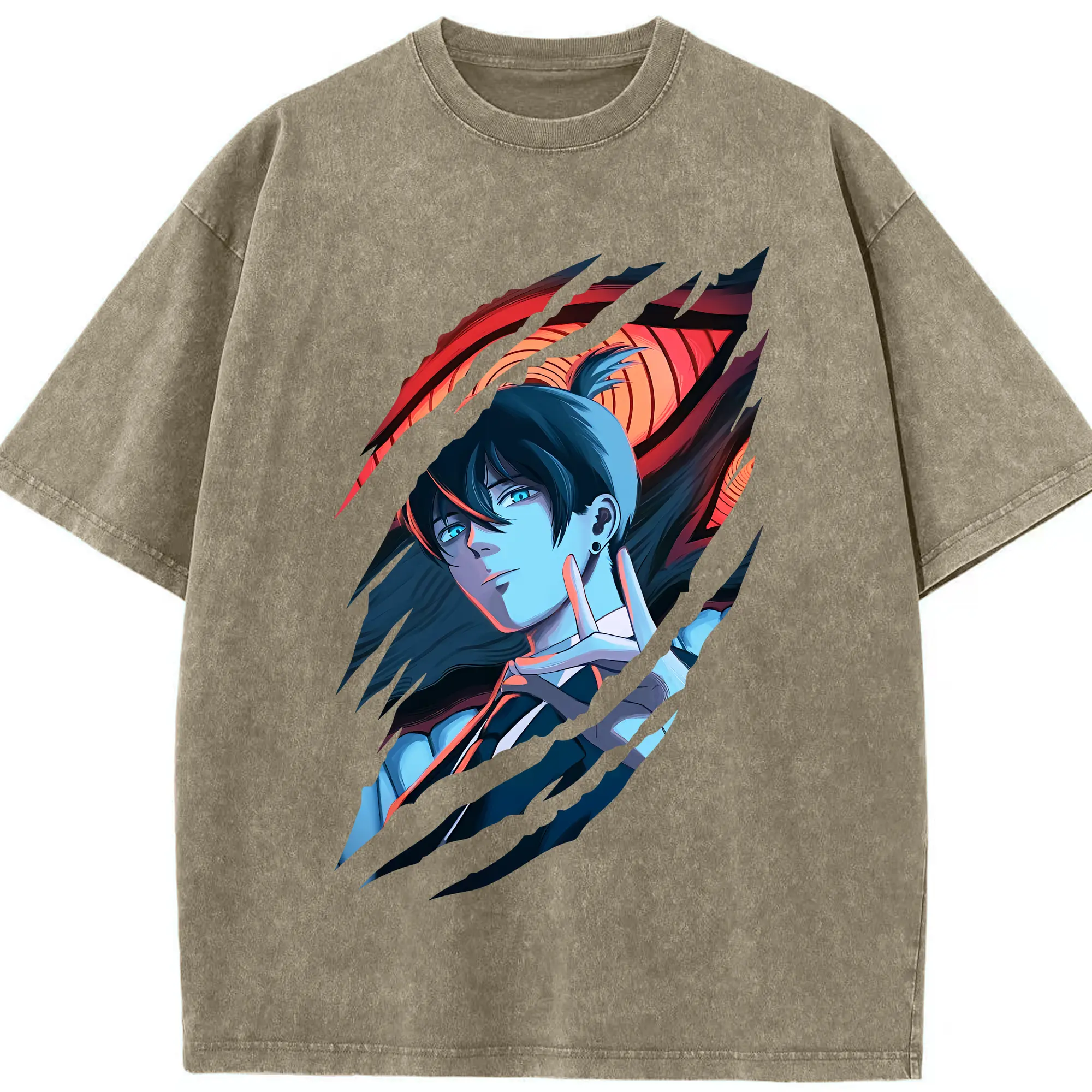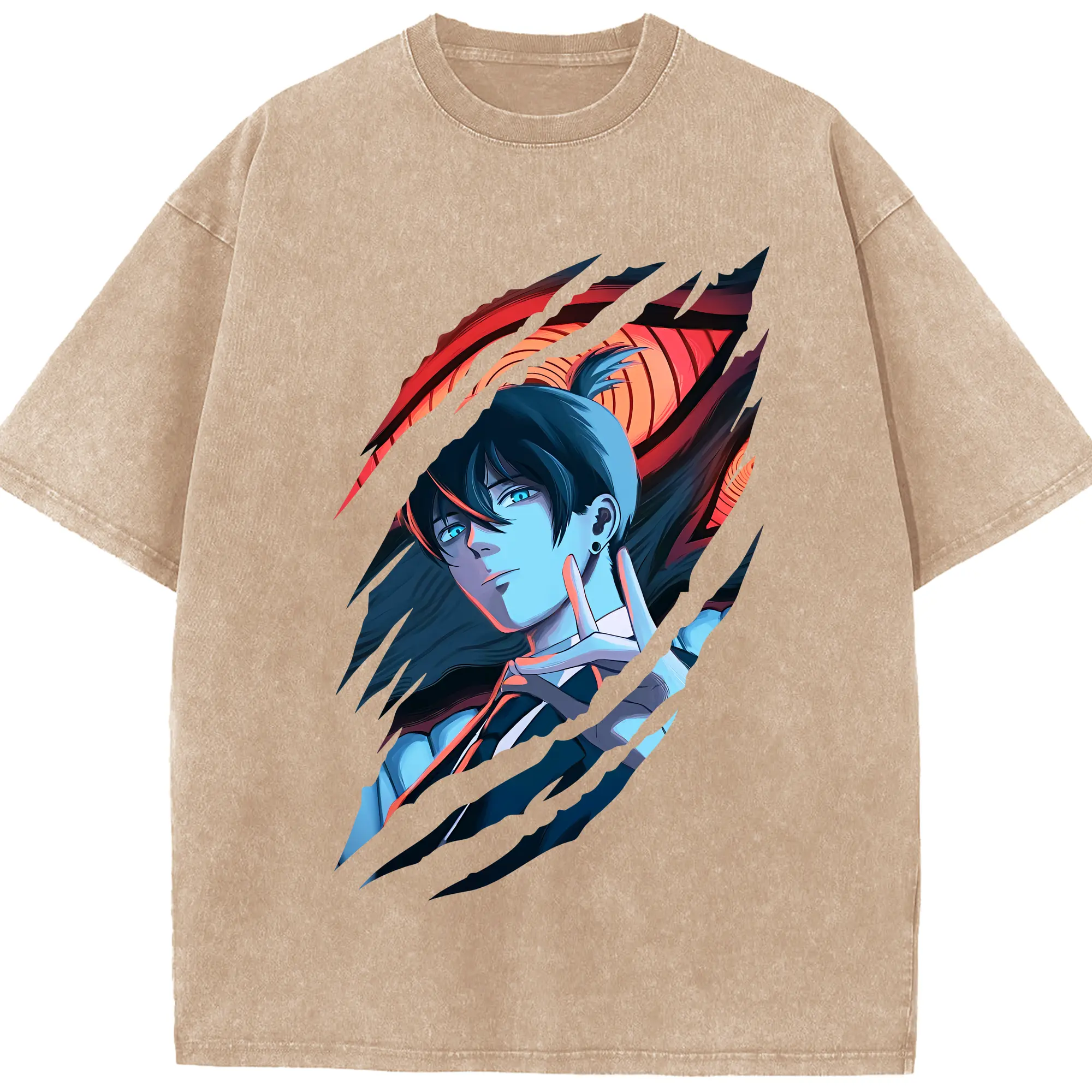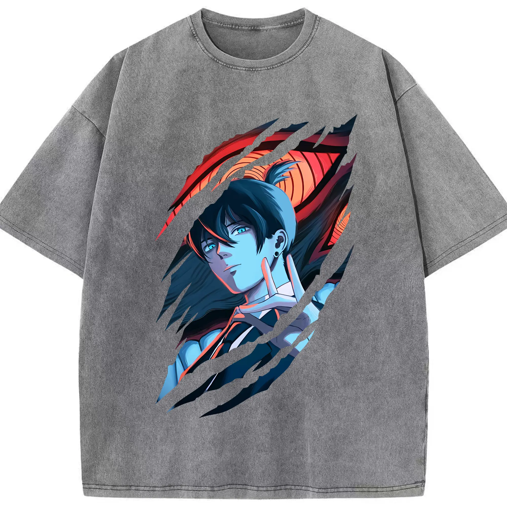 鬼滅の刃 グッズ,嘴平 伊之助 - 綿100% ヴィンテージ風 半袖Tシャツ ・ フロントプリント ・ 柔らか肌触り ・ 通気性 快適 ・ スポーツ カジュアル 外出用