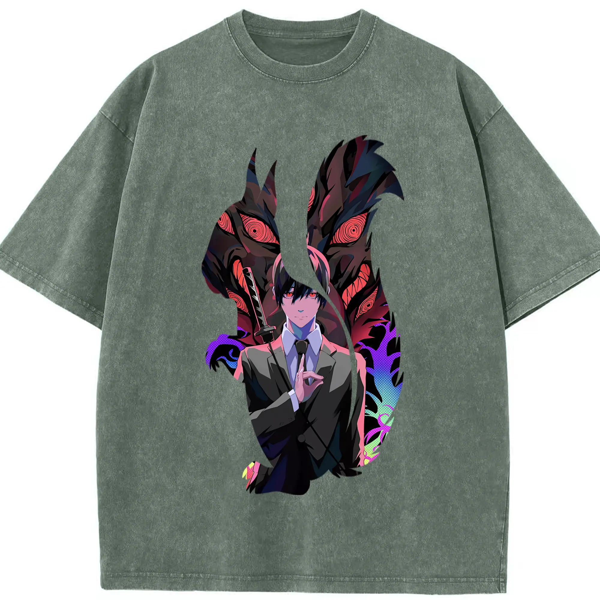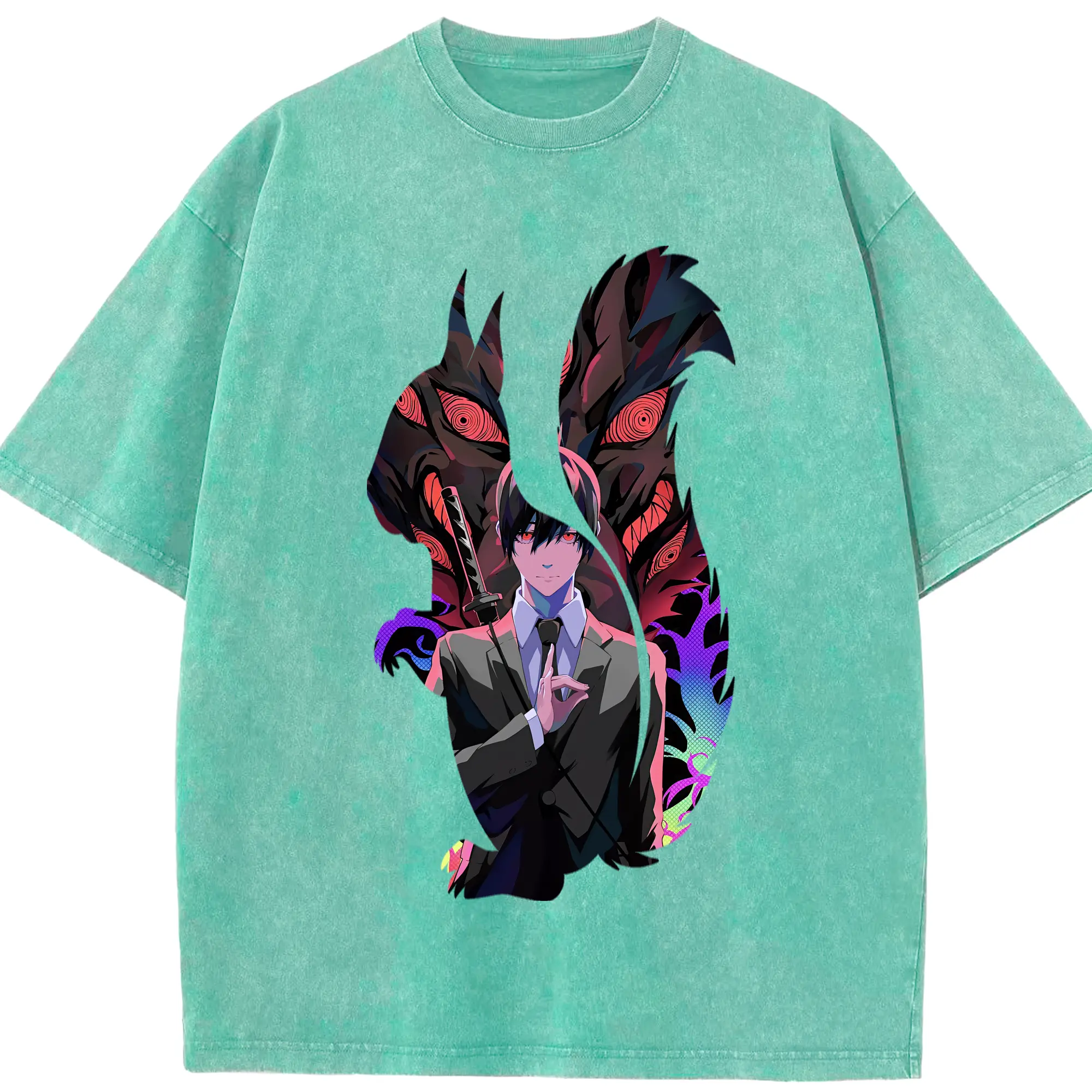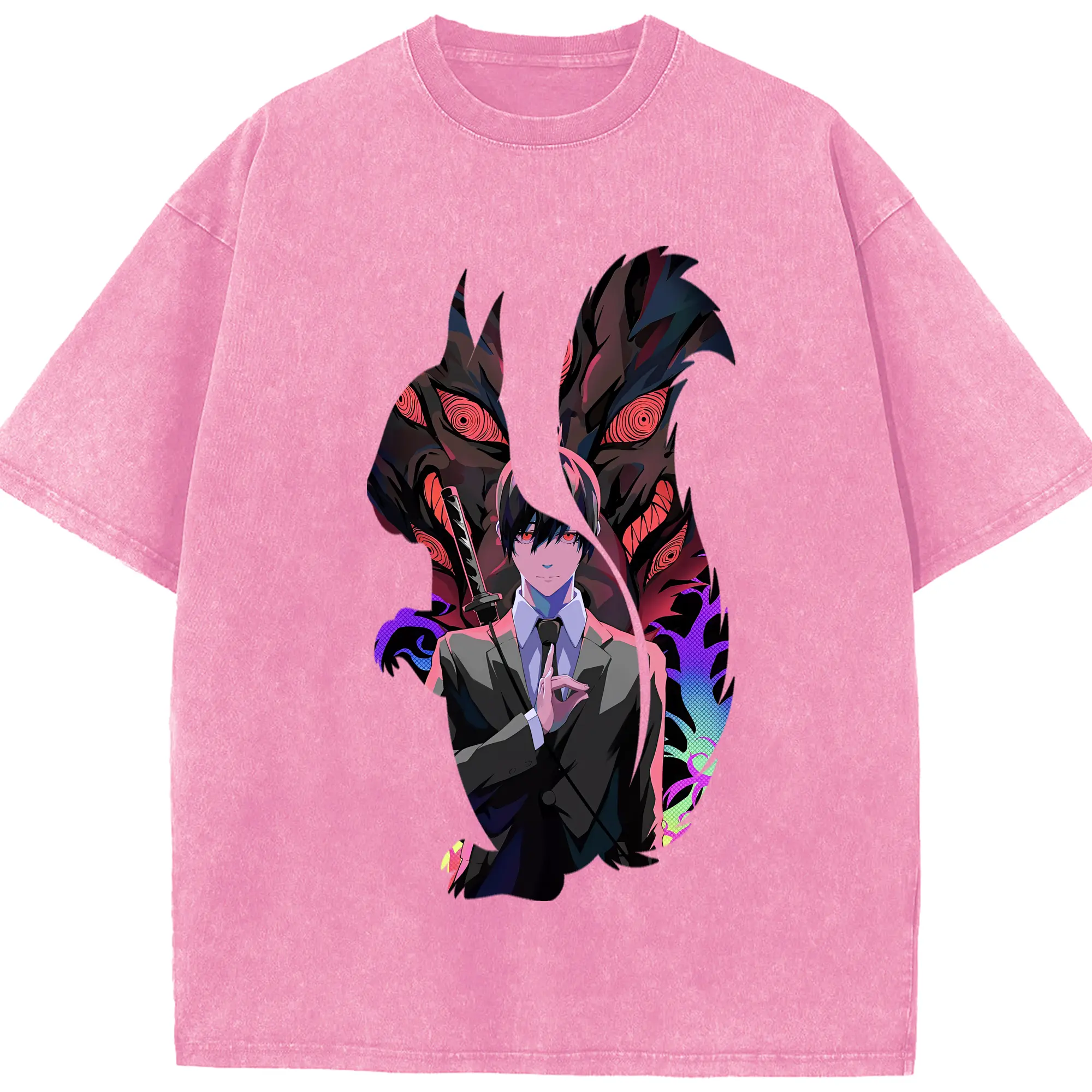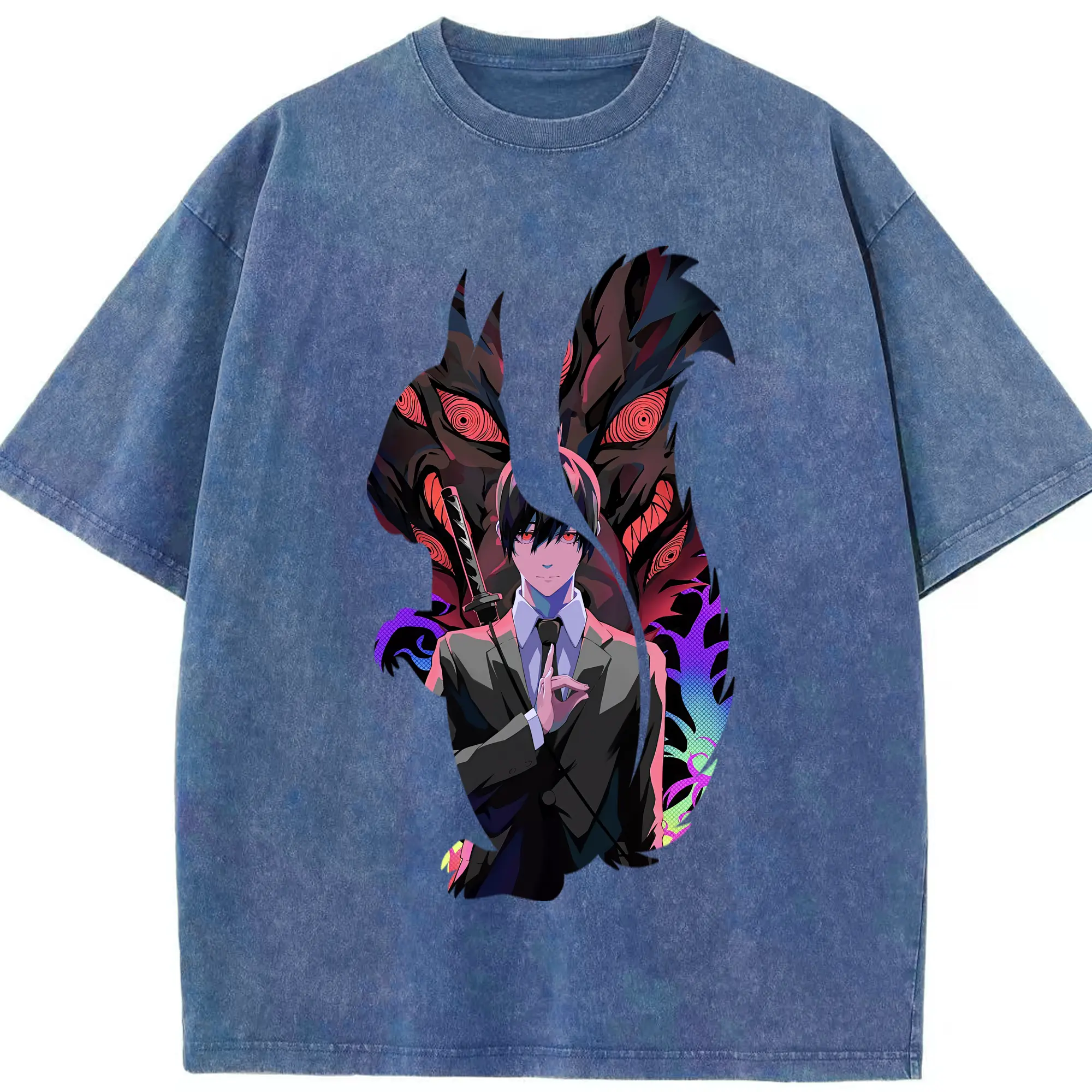 呪術廻戦 グッズ,五条 悟 - 綿100% ヴィンテージ風 半袖Tシャツ ・ フロントプリント ・ 柔らか肌触り ・ 通気性 快適 ・ スポーツ カジュアル 外出用