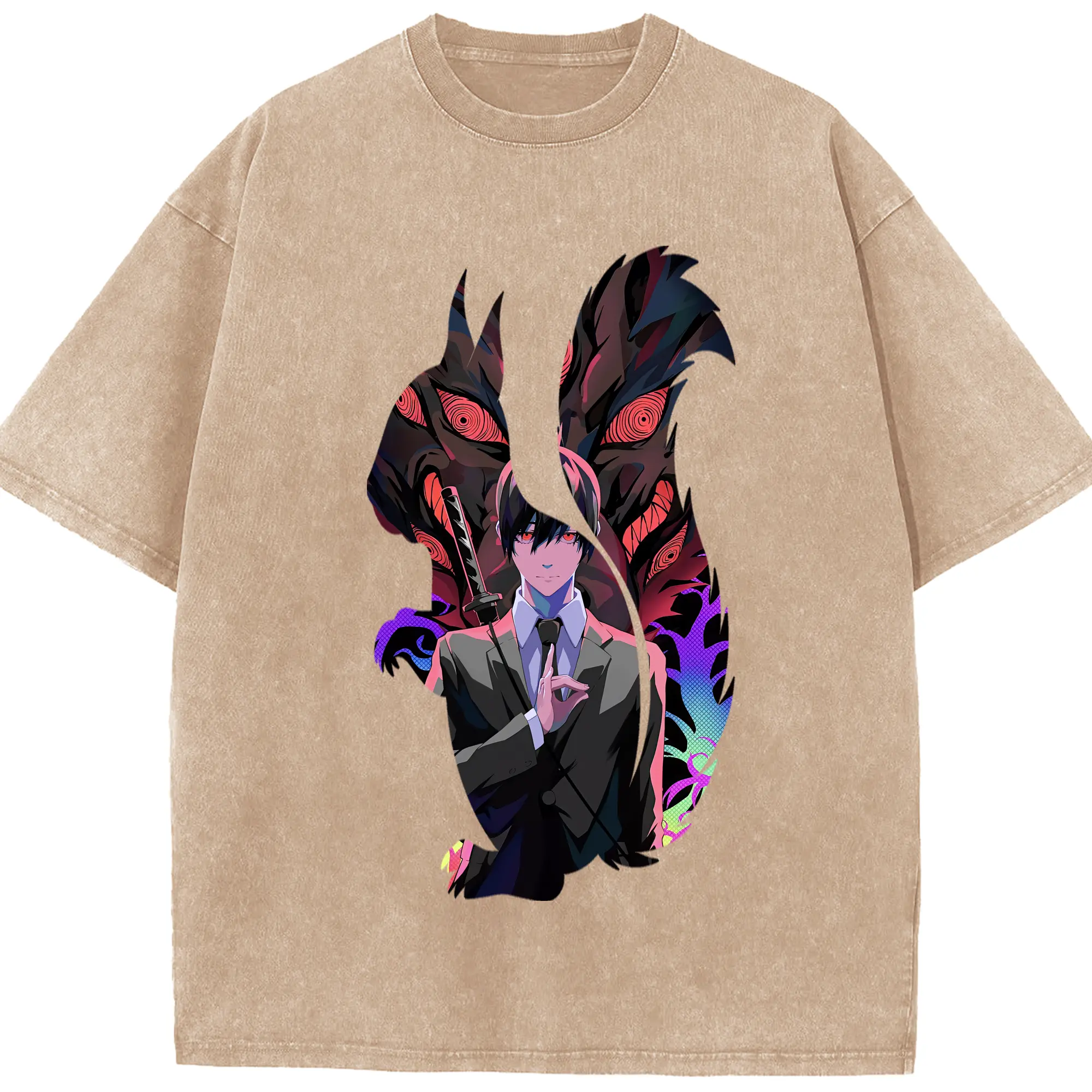 チェンソーマン グッズ,早川アキ - 綿100% ヴィンテージ風 半袖Tシャツ ・ 背面プリント ・ 柔らか肌触り ・ 通気性 快適 ・ スポーツ カジュアル 外出用