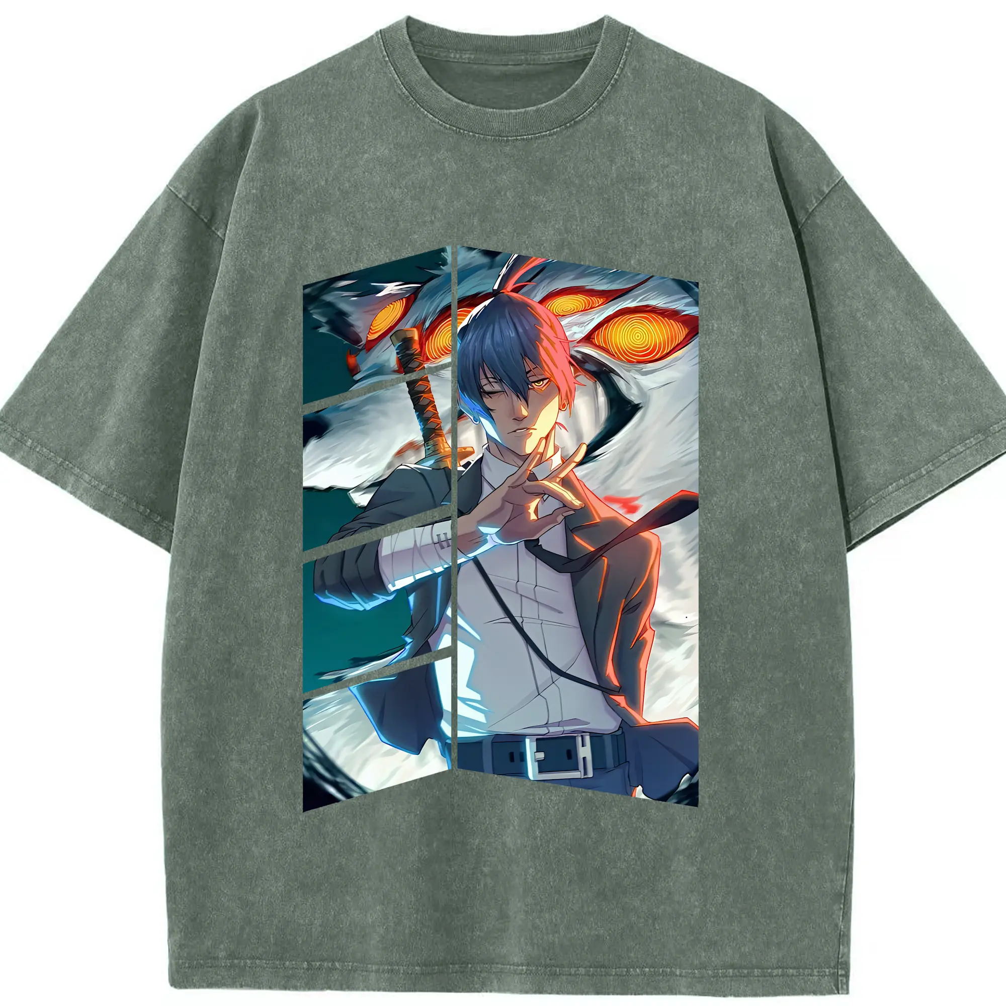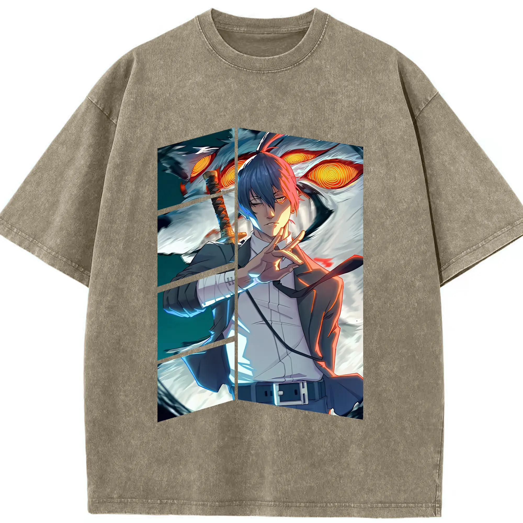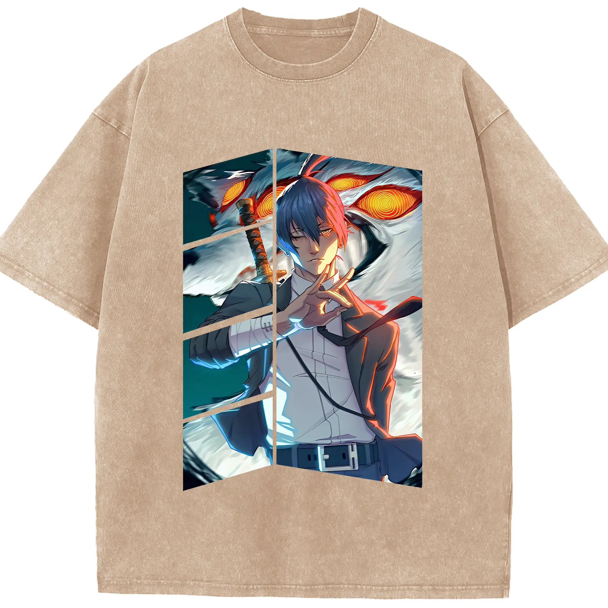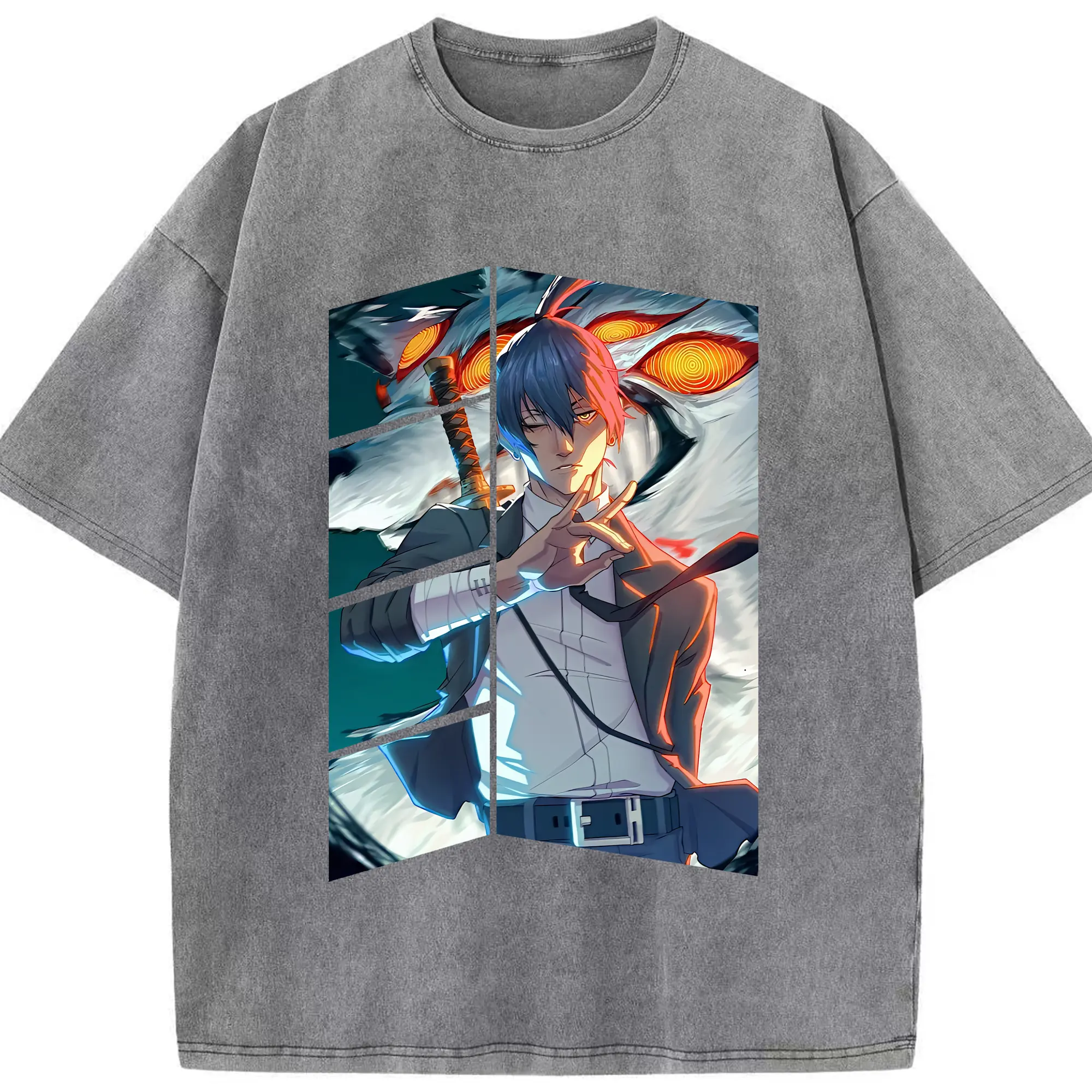 チェンソーマン グッズ,早川アキ - 綿100% ヴィンテージ風 半袖Tシャツ ・ 背面プリント ・ 柔らか肌触り ・ 通気性 快適 ・ スポーツ カジュアル 外出用