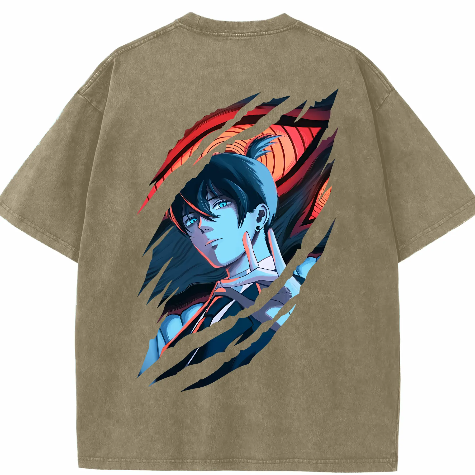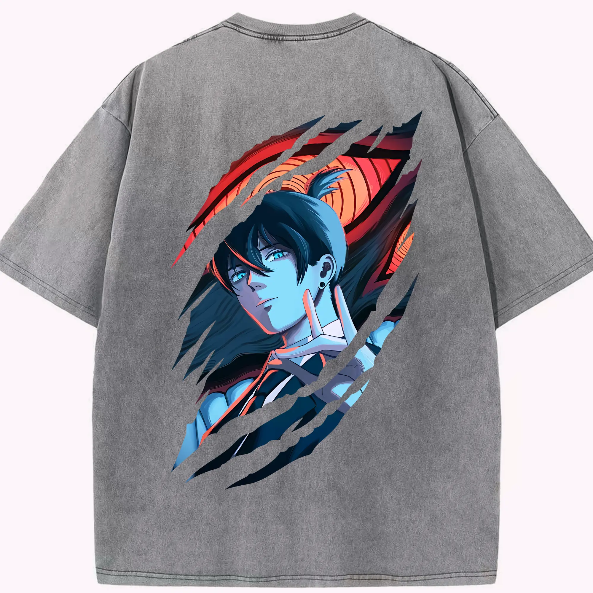 チェンソーマン グッズ,早川アキ - 綿100% ヴィンテージ風 半袖Tシャツ ・ フロントプリント ・ 柔らか肌触り ・ 通気性 快適 ・ スポーツ カジュアル 外出用