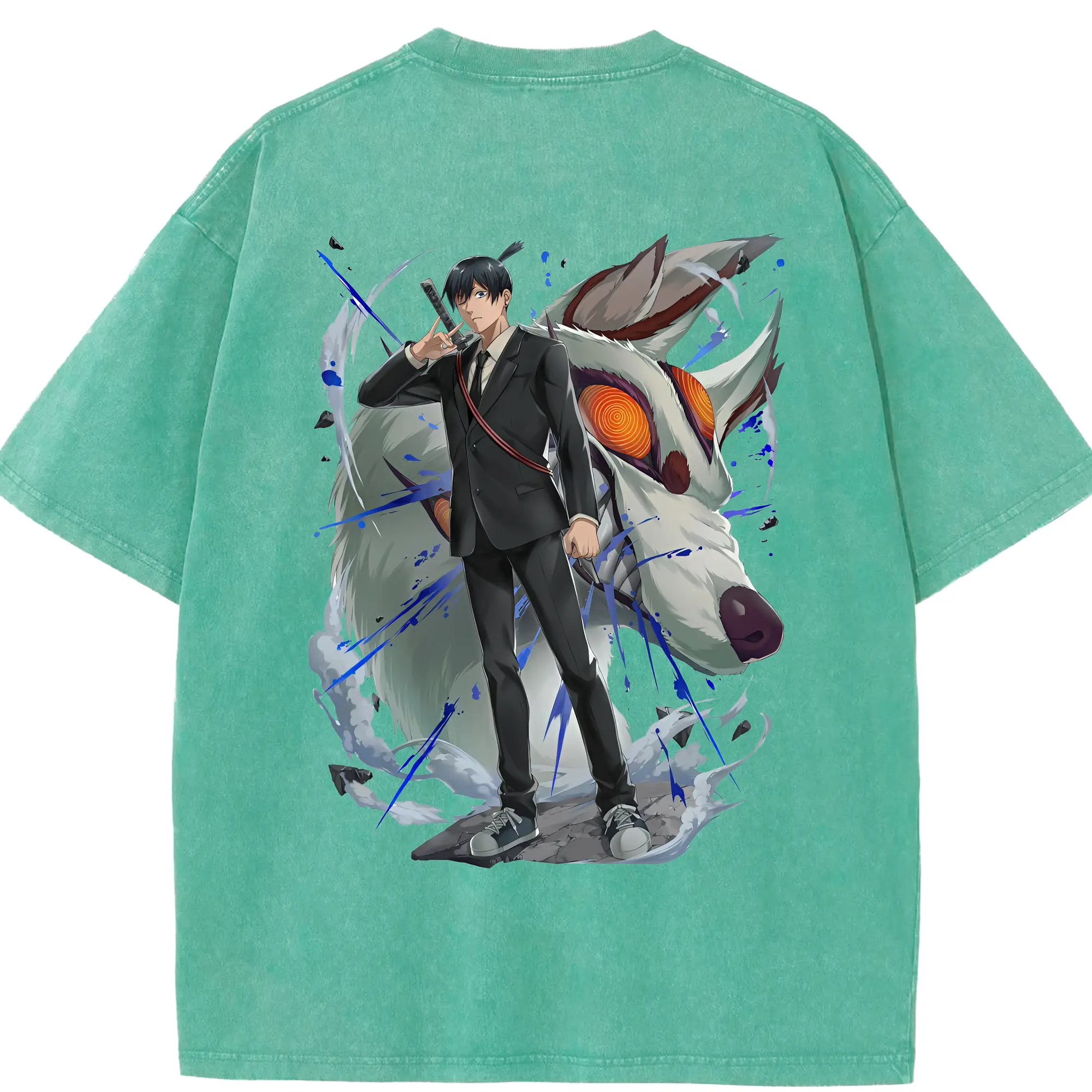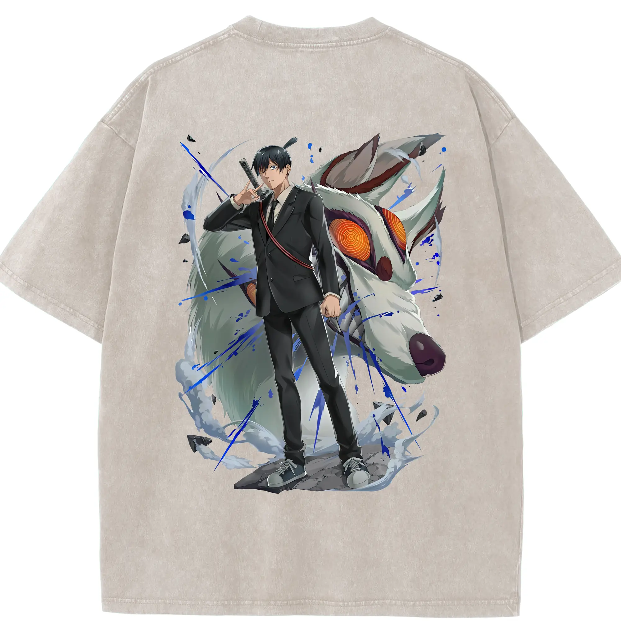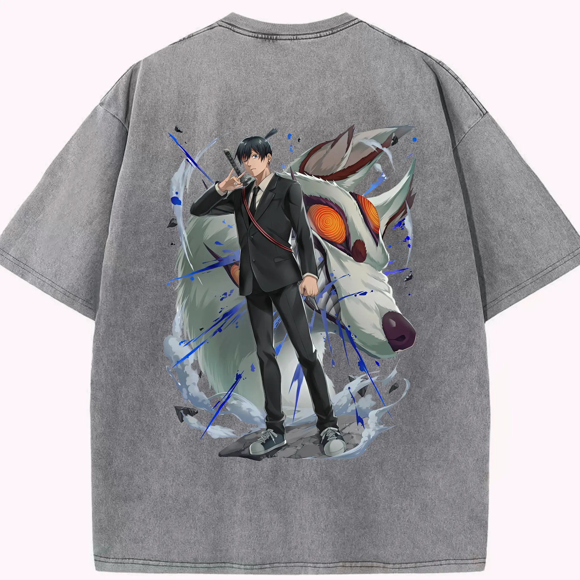 チェンソーマン グッズ,早川アキ - 綿100% ヴィンテージ風 半袖Tシャツ ・ 背面プリント ・ 柔らか肌触り ・ 通気性 快適 ・ スポーツ カジュアル 外出用