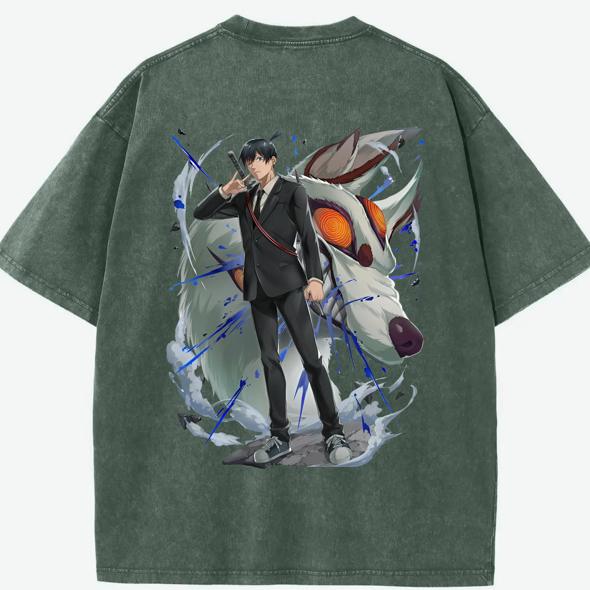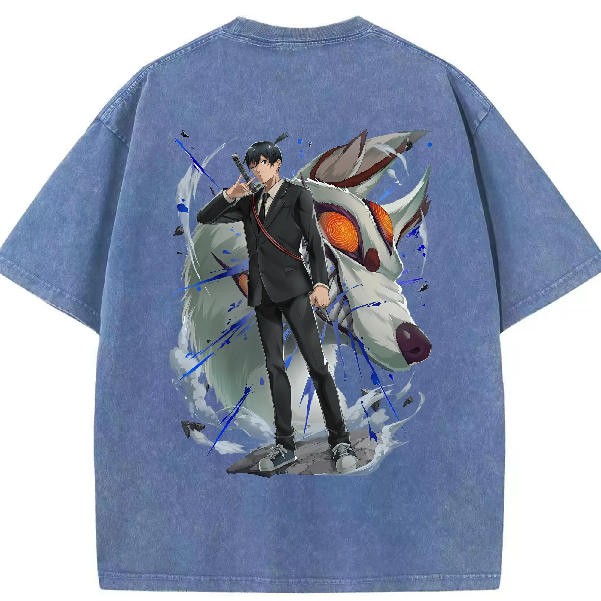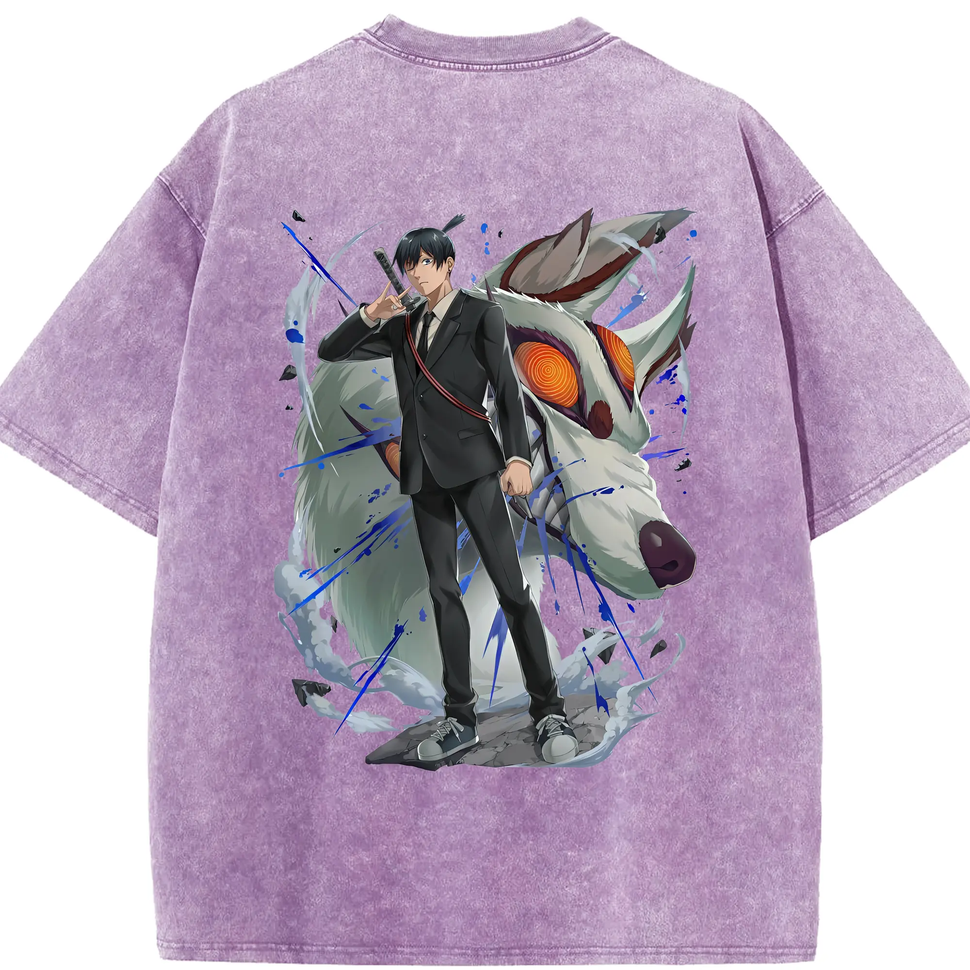 チェンソーマン グッズ,早川アキ - 綿100% ヴィンテージ風 半袖Tシャツ ・ 背面プリント ・ 柔らか肌触り ・ 通気性 快適 ・ スポーツ カジュアル 外出用