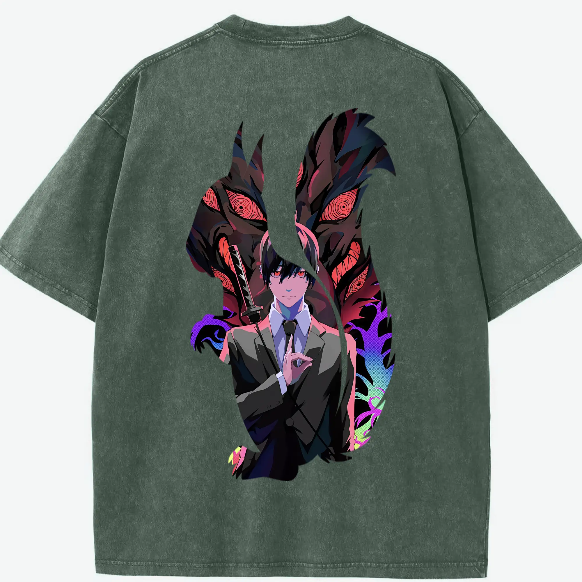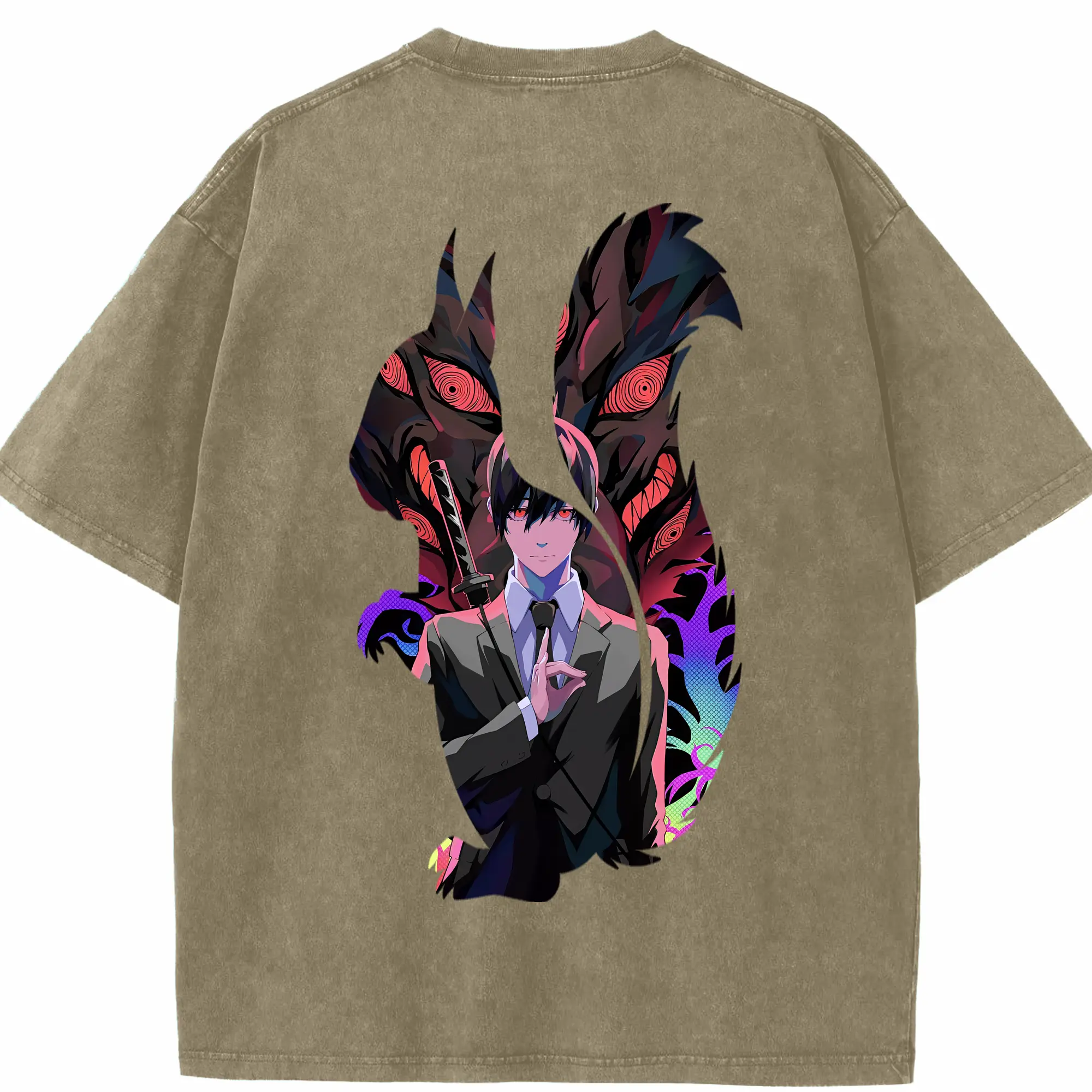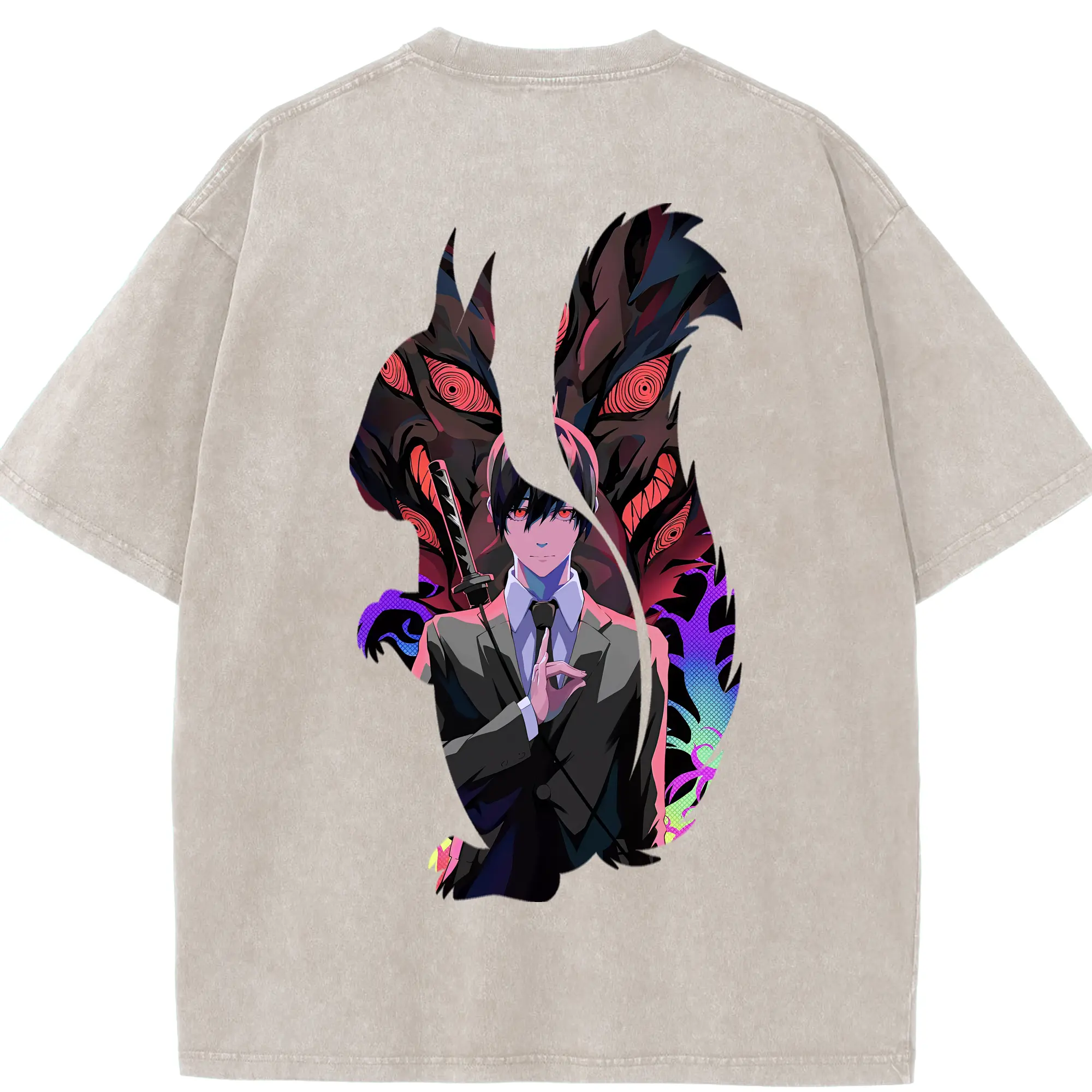 チェンソーマン グッズ,早川アキ - 綿100% ヴィンテージ風 半袖Tシャツ ・ フロントプリント ・ 柔らか肌触り ・ 通気性 快適 ・ スポーツ カジュアル 外出用