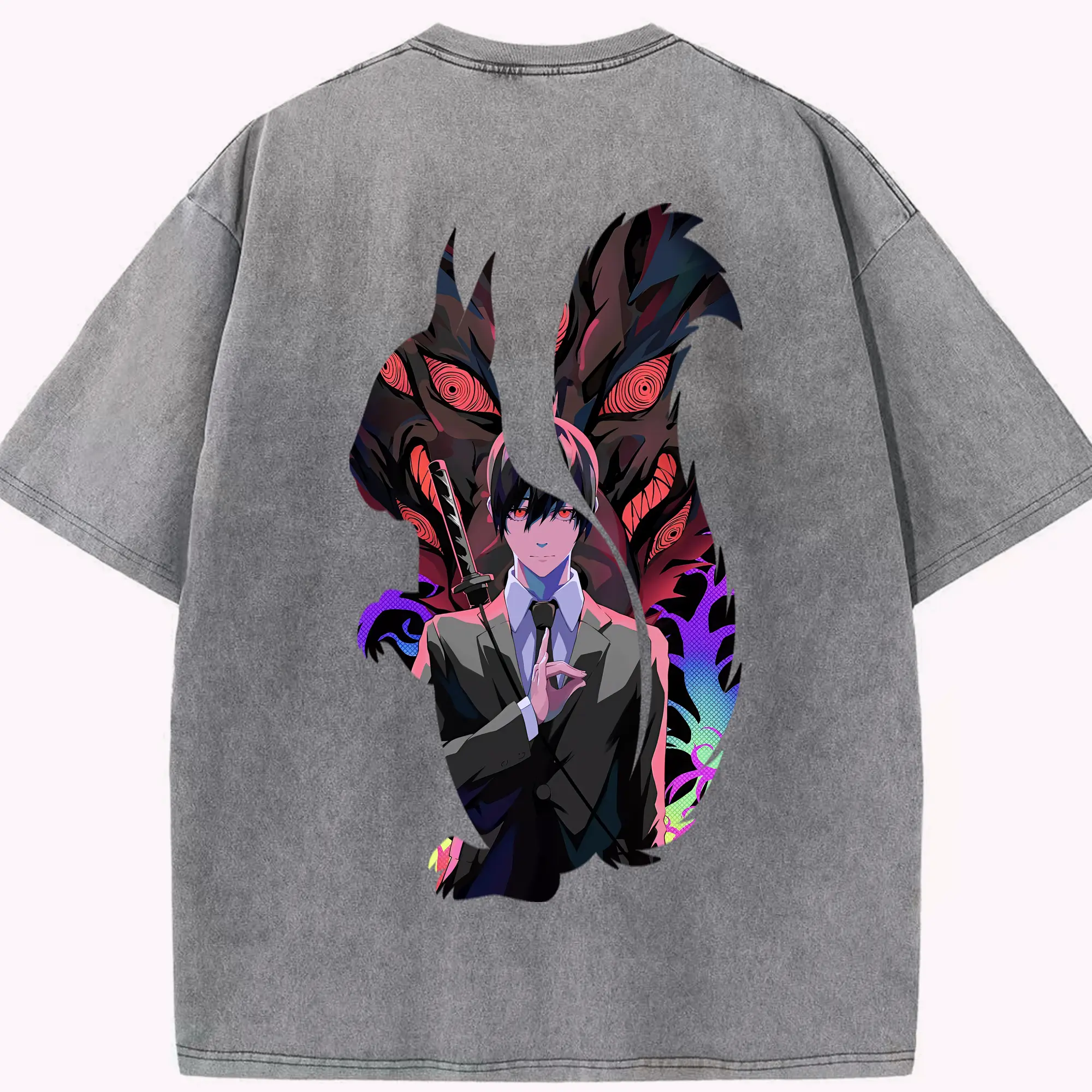 無職転生 グッズ,ルーデウス・グレイラット - 綿100% ヴィンテージ風 半袖Tシャツ ・ 背面プリント ・ 柔らか肌触り ・ 通気性 快適 ・ スポーツ カジュアル 外出用