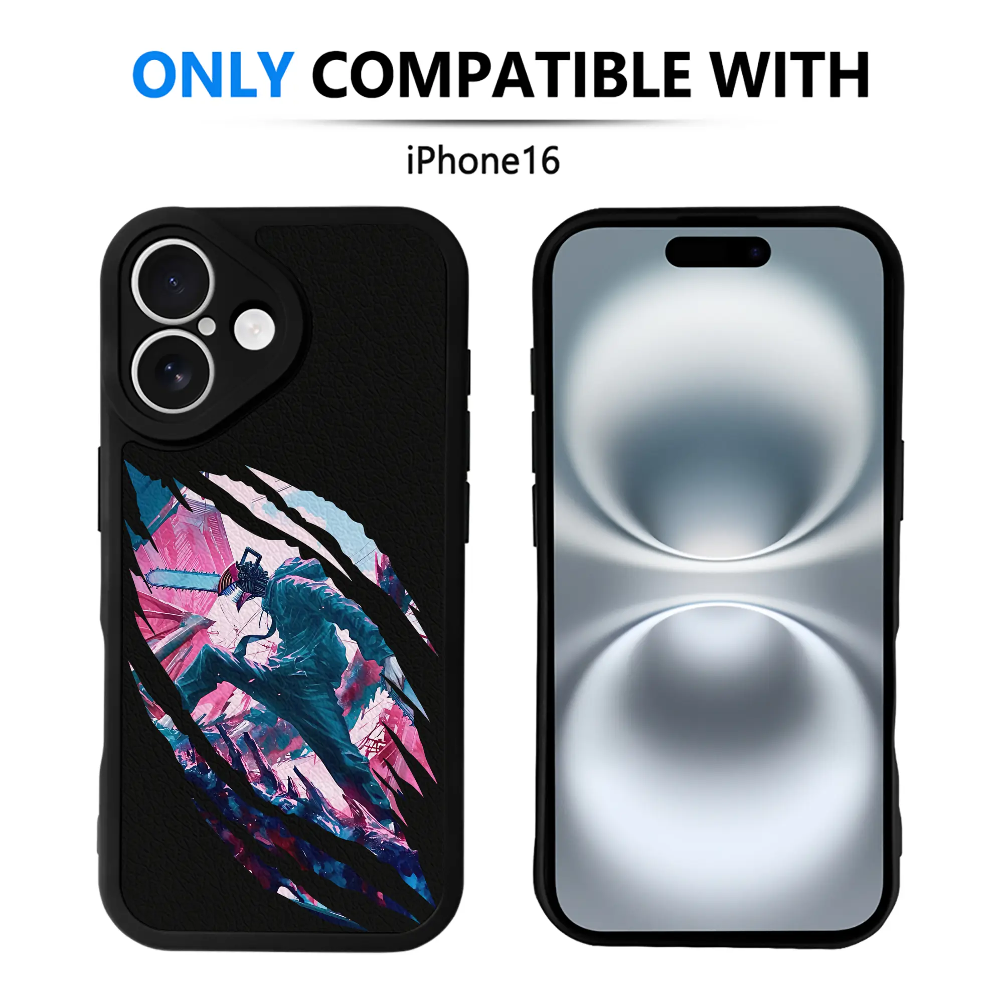 チェンソーマン グッズ,デンジ - IPhone 16シリーズ対応 ・ シリコンスマホケース ・ レザー調 ・ 高精度フィット ・ 耐衝撃 ・ ワイヤレス充電対応 ・ 精密カット