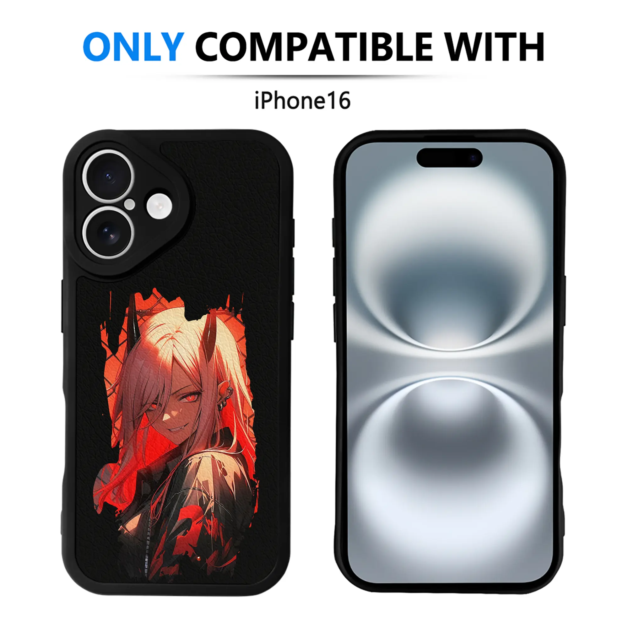 チェンソーマン グッズ,パワー - IPhone 16シリーズ対応 ・ シリコンスマホケース ・ レザー調 ・ 高精度フィット ・ 耐衝撃 ・ ワイヤレス充電対応 ・ 精密カット