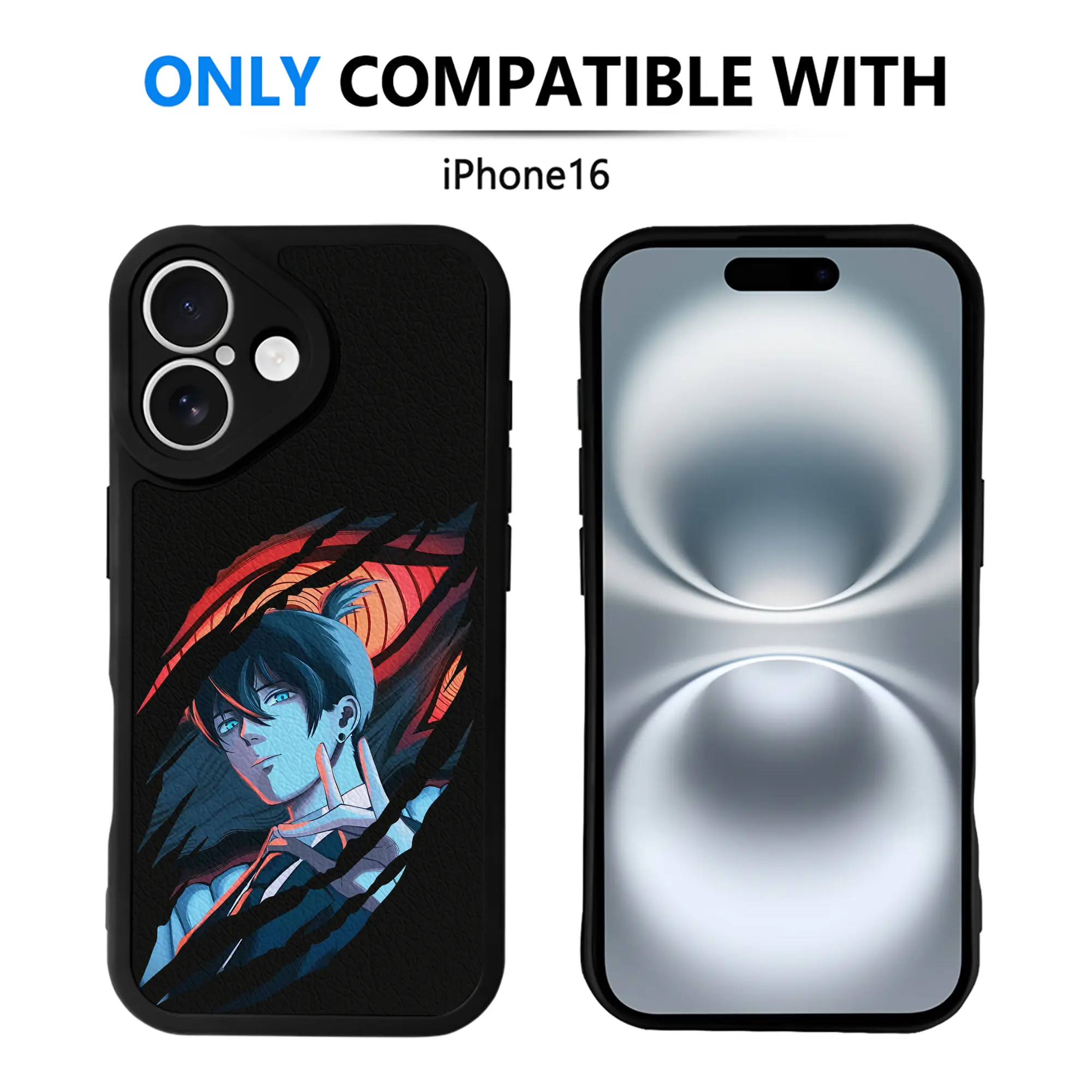 チェンソーマン グッズ,早川アキ - IPhone 16シリーズ対応 ・ シリコンスマホケース ・ レザー調 ・ 高精度フィット ・ 耐衝撃 ・ ワイヤレス充電対応 ・ 精密カット