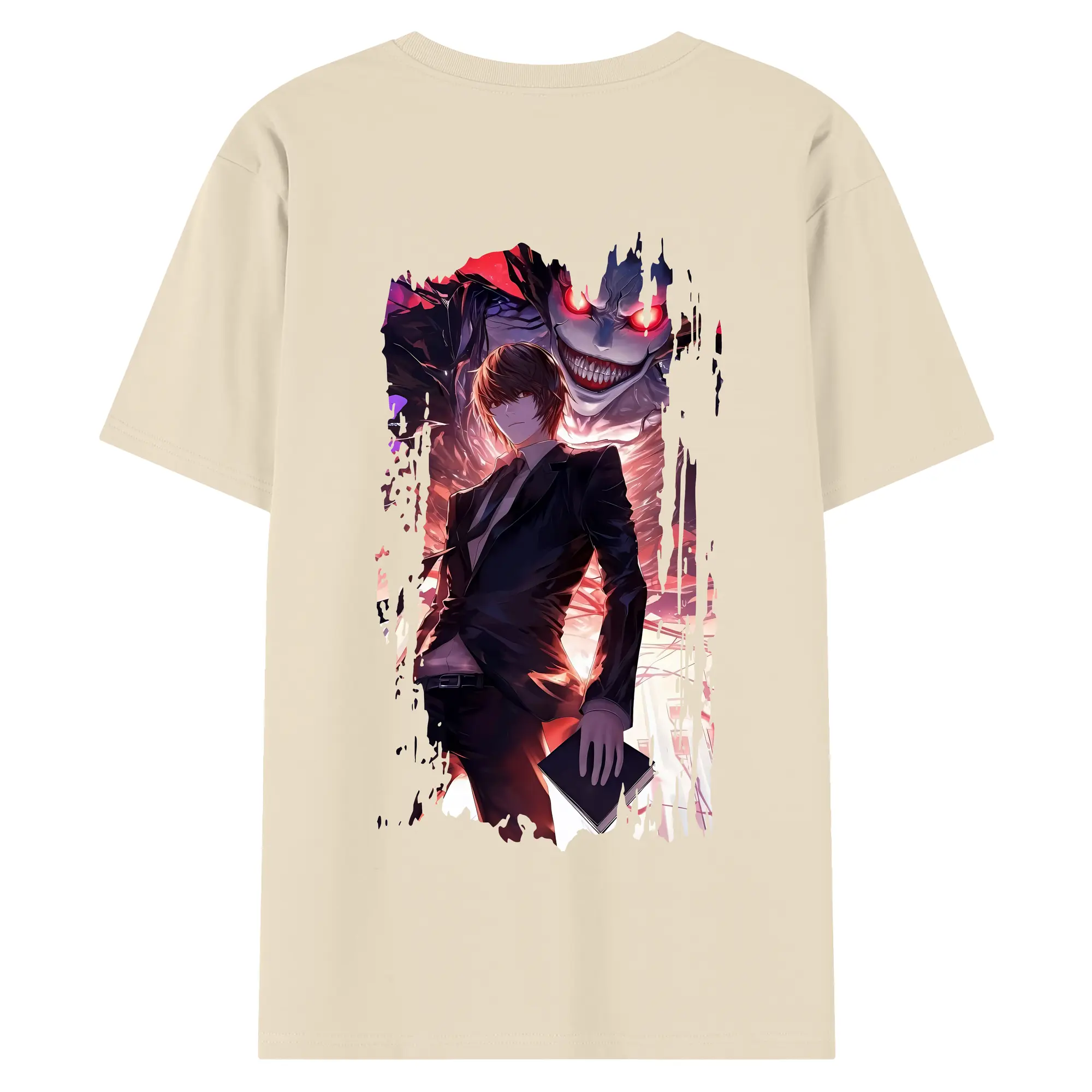 デスノート グッズ,夜神月 - 綿100% ヴィンテージ風 半袖Tシャツ ・ 背面プリント ・ 柔らか肌触り ・ 通気性 快適 ・ スポーツ カジュアル 外出用