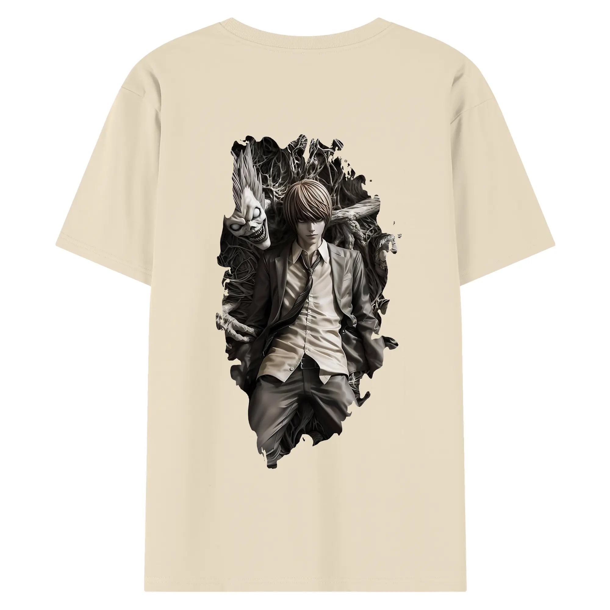 デスノート グッズ,夜神月 - 綿100% ヴィンテージ風 半袖Tシャツ ・ 背面プリント ・ 柔らか肌触り ・ 通気性 快適 ・ スポーツ カジュアル 外出用