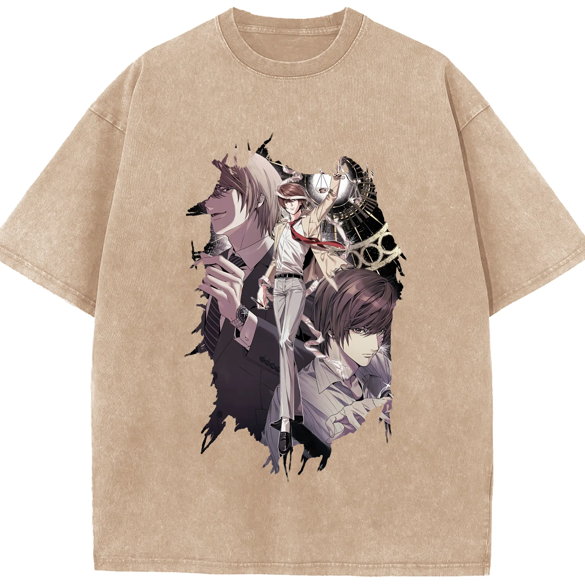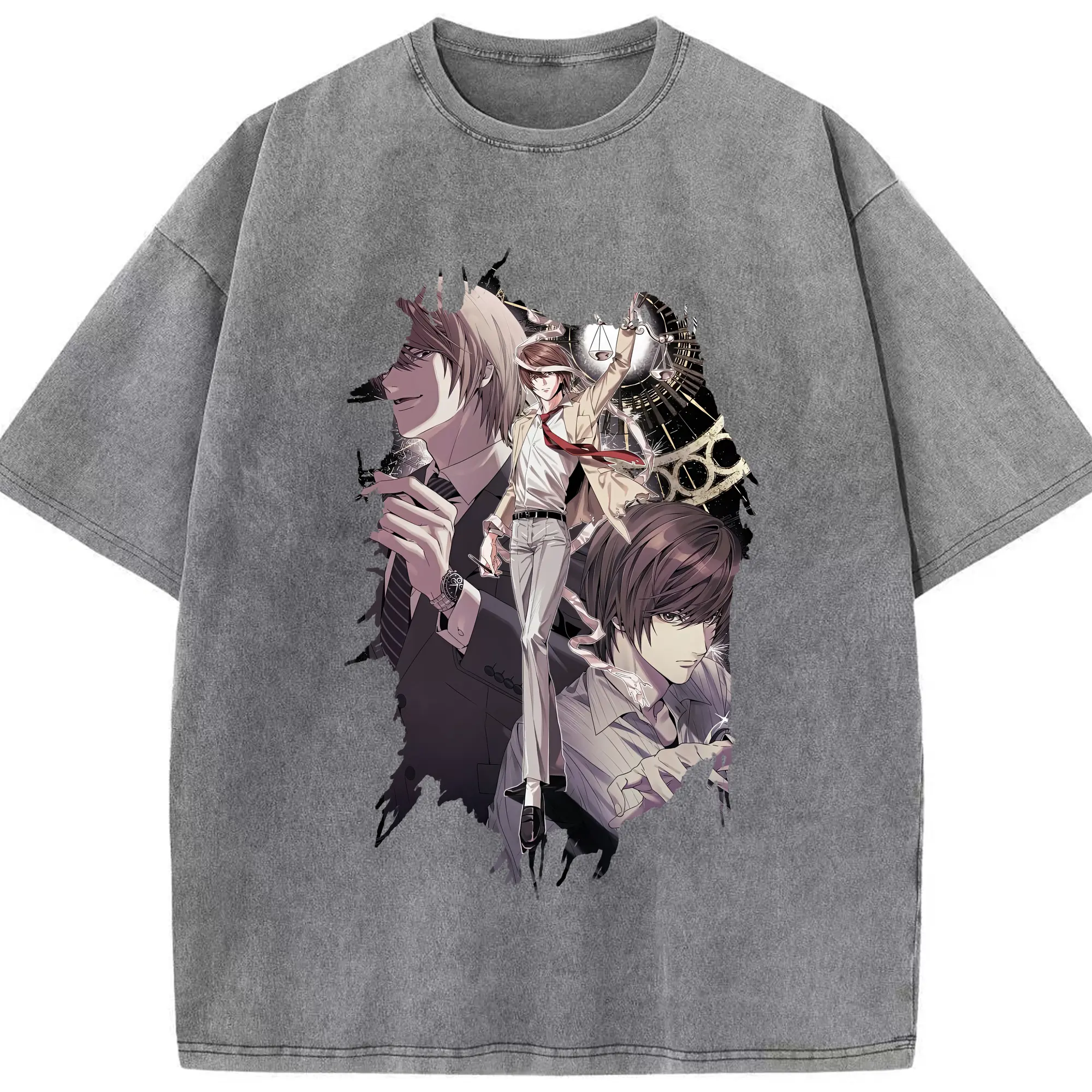 デスノート グッズ,夜神月 - 綿100% ヴィンテージ風 半袖Tシャツ ・ 背面プリント ・ 柔らか肌触り ・ 通気性 快適 ・ スポーツ カジュアル 外出用