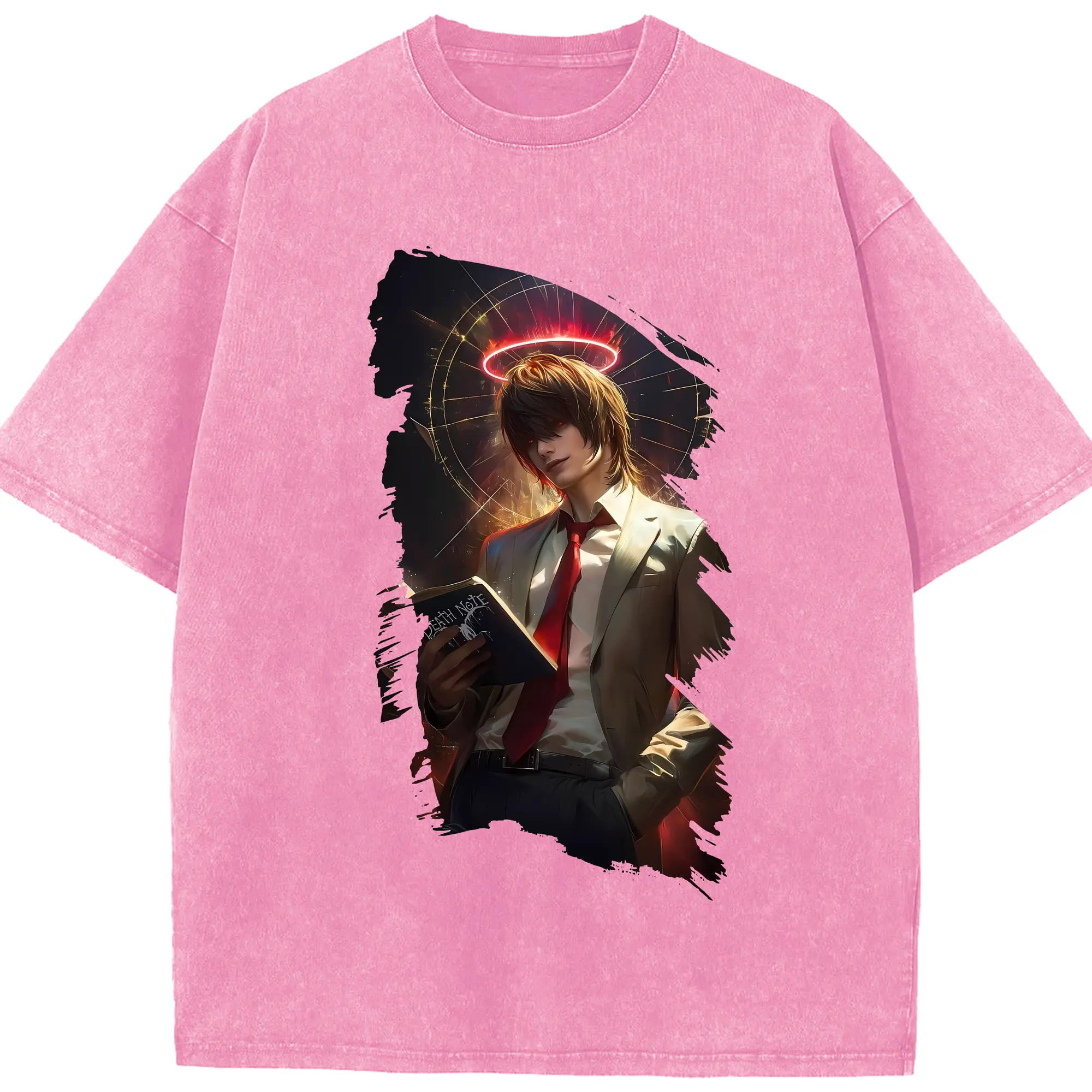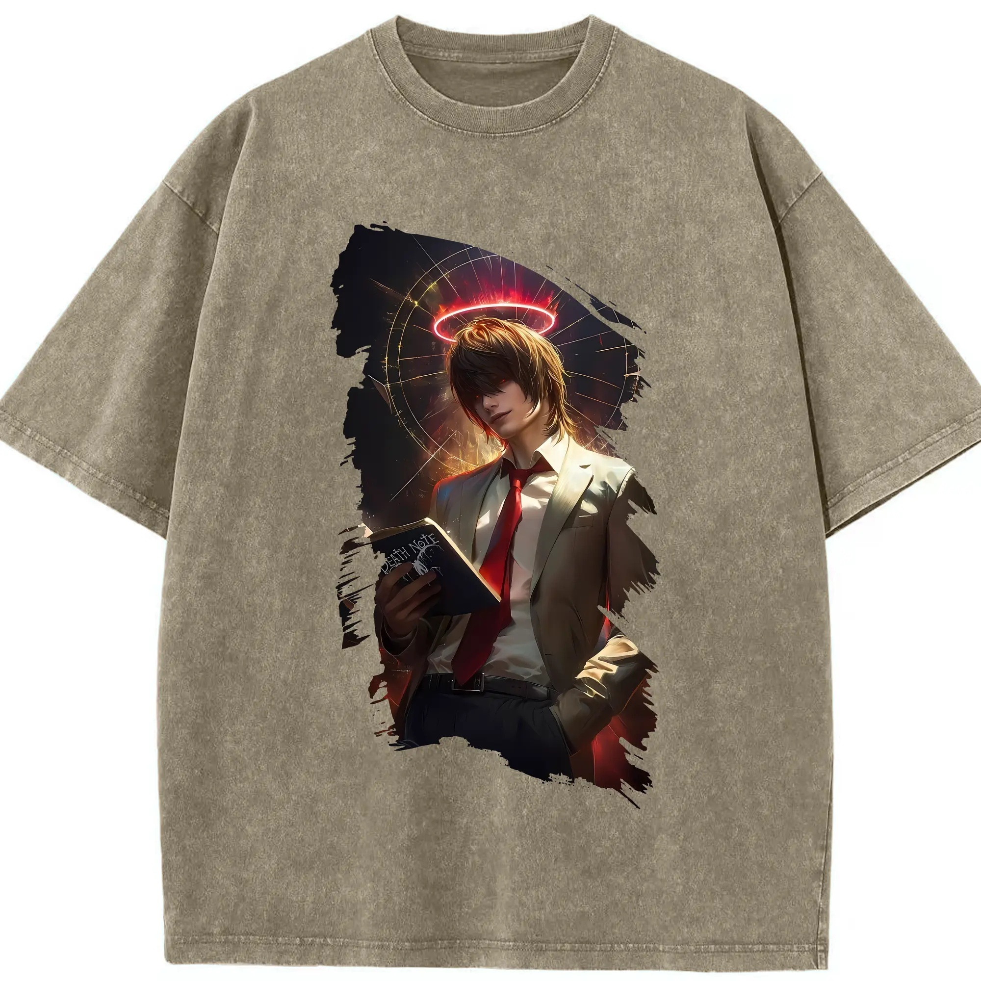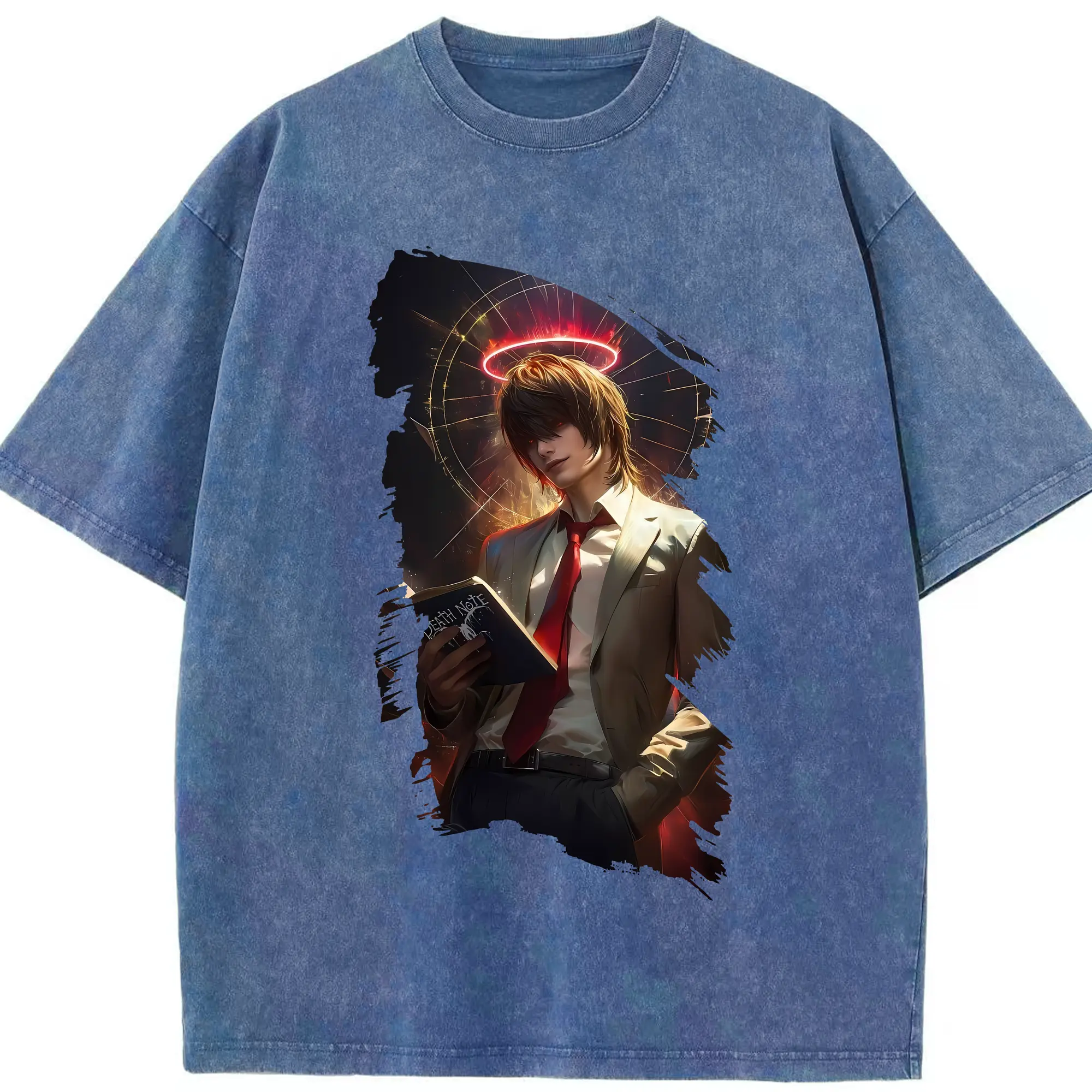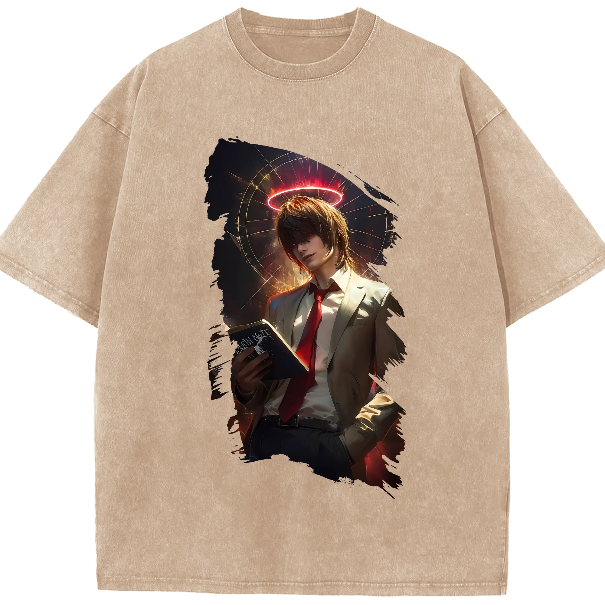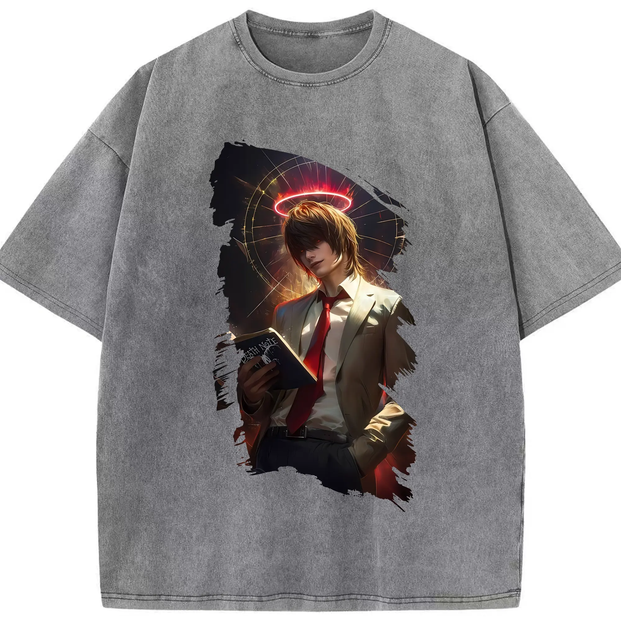 デスノート グッズ,夜神月 - 綿100% ヴィンテージ風 半袖Tシャツ ・ 背面プリント ・ 柔らか肌触り ・ 通気性 快適 ・ スポーツ カジュアル 外出用