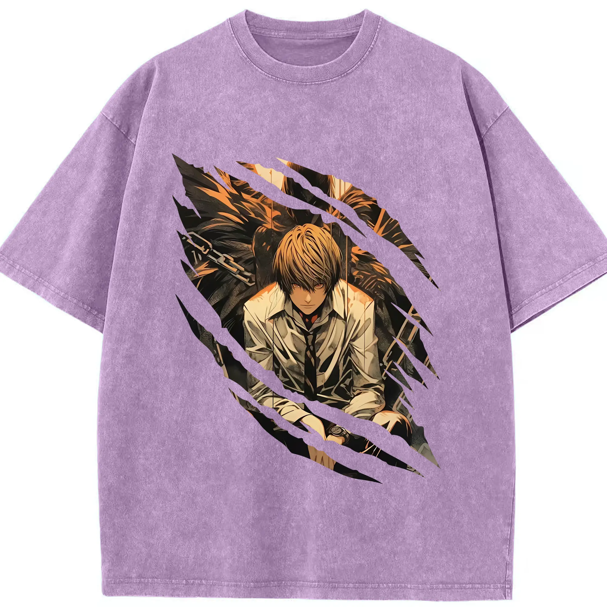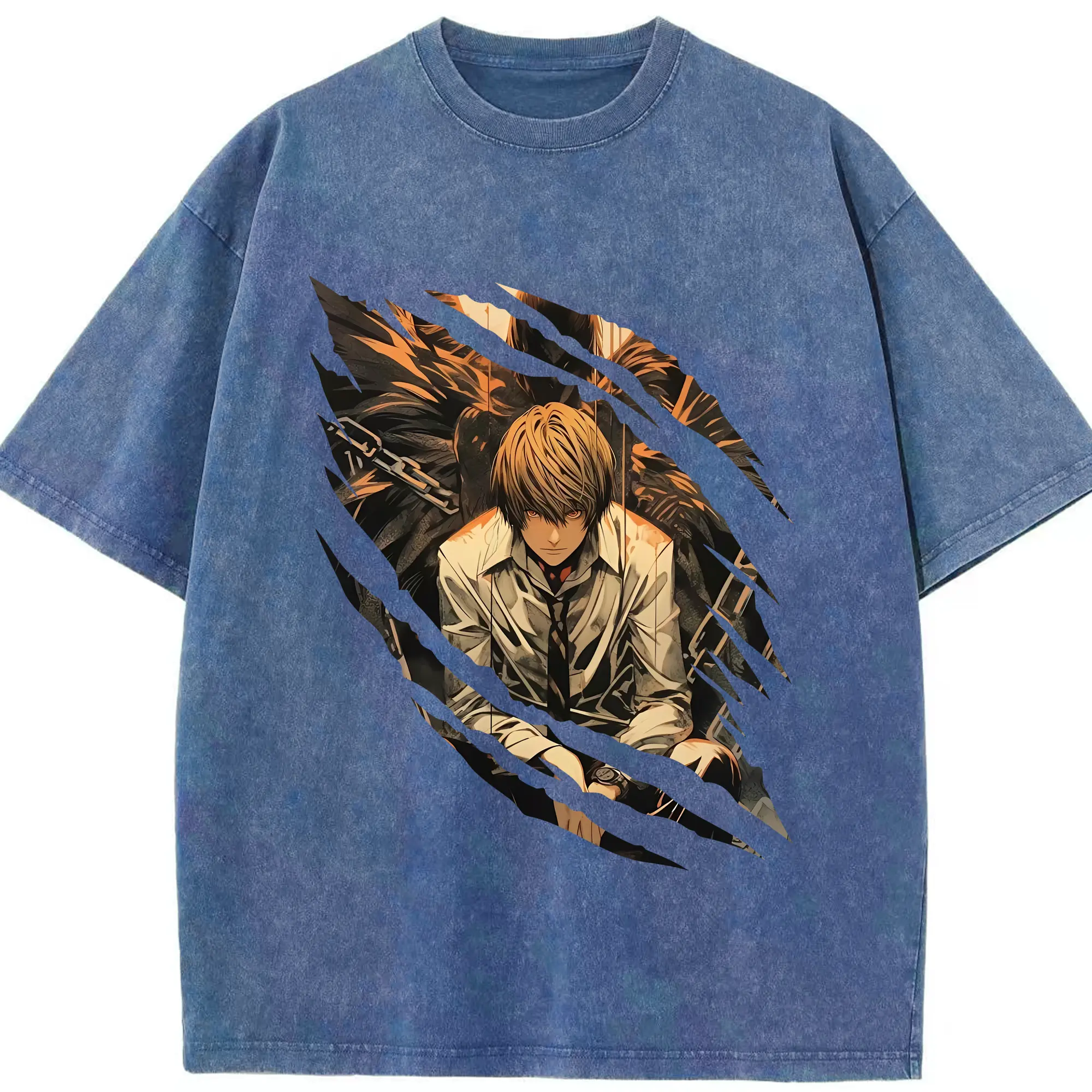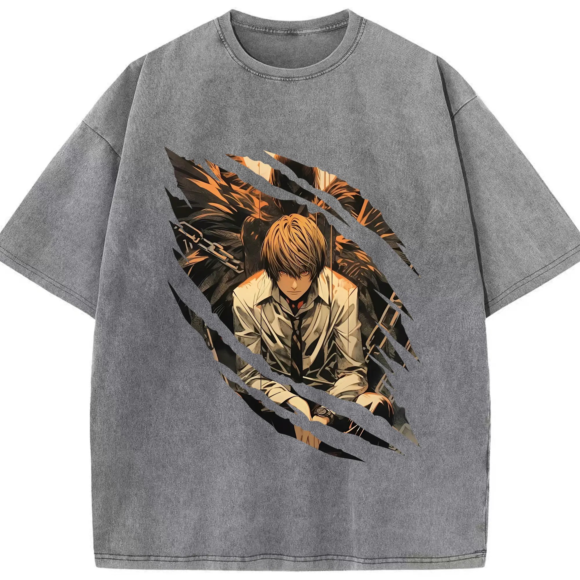デスノート グッズ,夜神月 - 綿100% ヴィンテージ風 半袖Tシャツ ・ 背面プリント ・ 柔らか肌触り ・ 通気性 快適 ・ スポーツ カジュアル 外出用