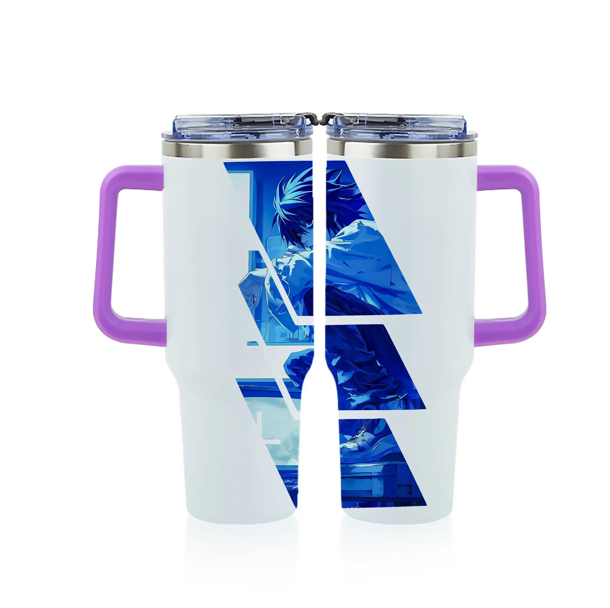 デスノート グッズ,L - 1200mL フルプリント車用タンブラー ・ 304ステンレス 内側 ・ 201ステンレス 外側 ・ 保温 保冷 ・ 通勤 ドライブ アウトドア用