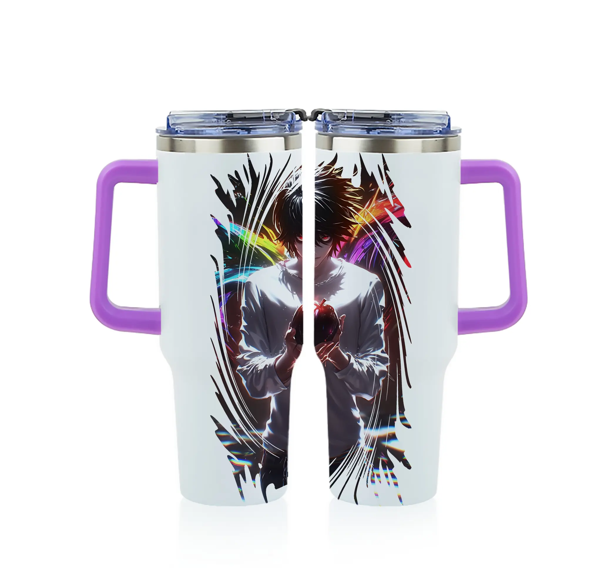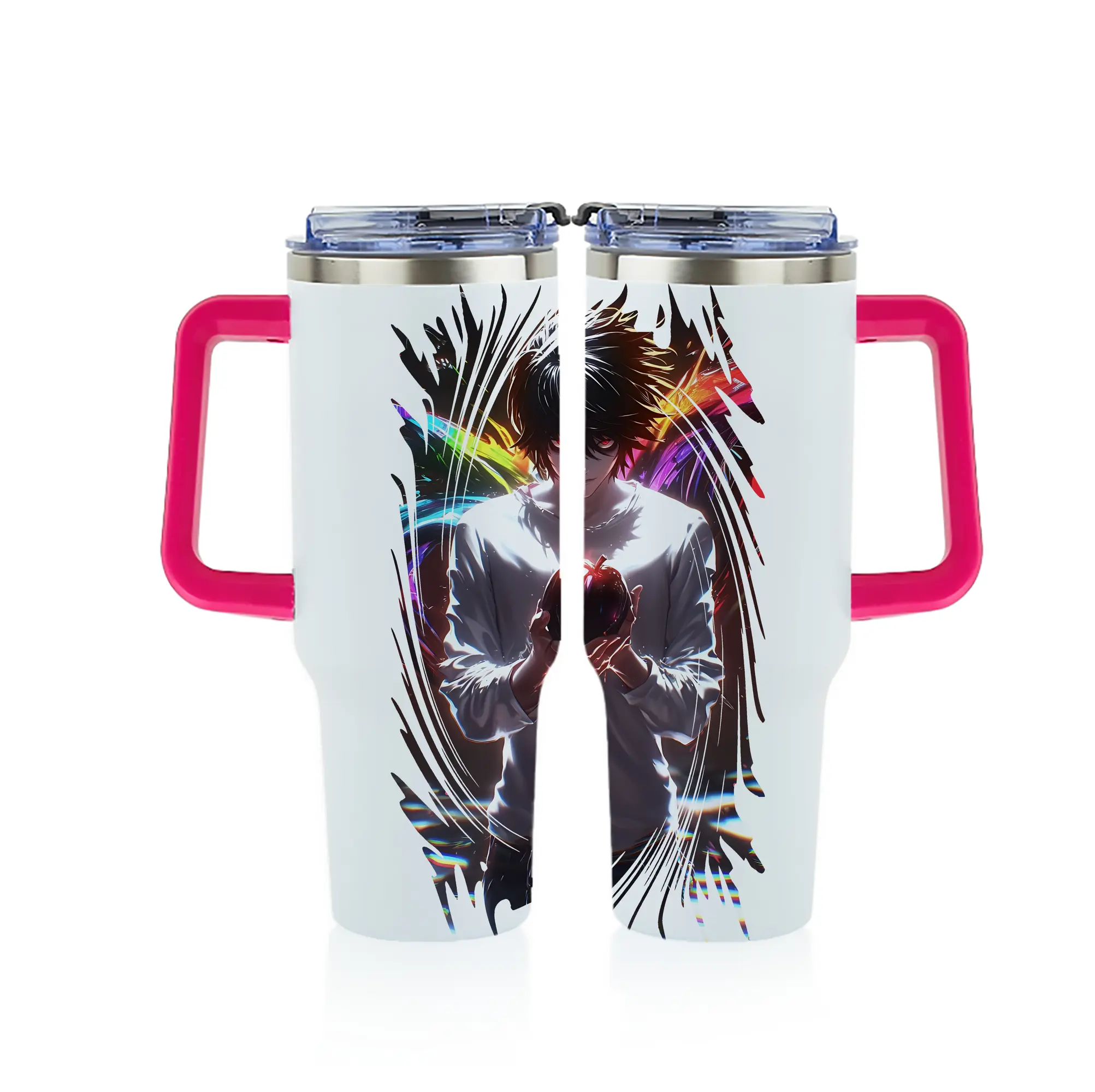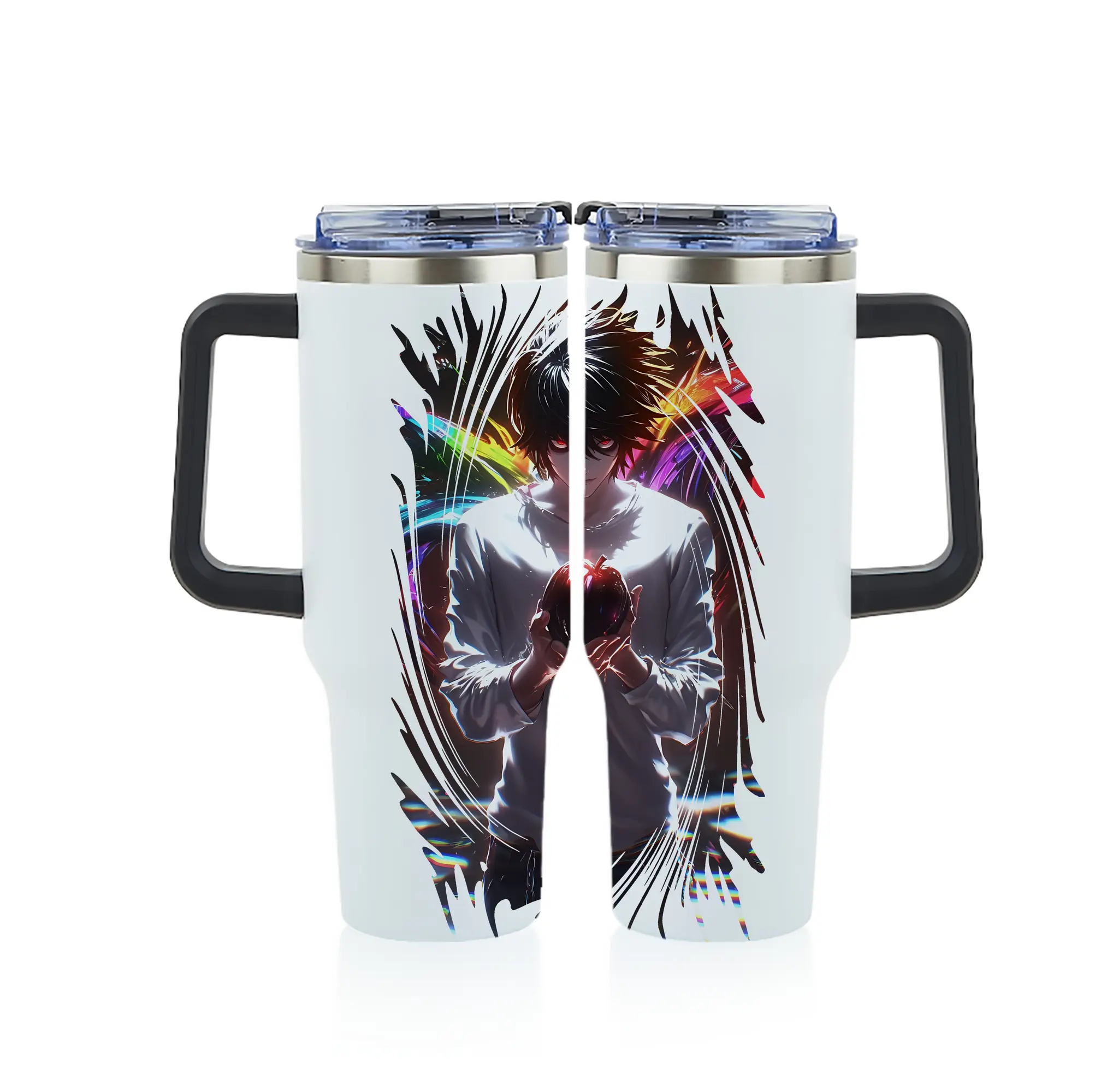 デスノート グッズ,L - 1200mL フルプリント車用タンブラー ・ 304ステンレス 内側 ・ 201ステンレス 外側 ・ 保温 保冷 ・ 通勤 ドライブ アウトドア用