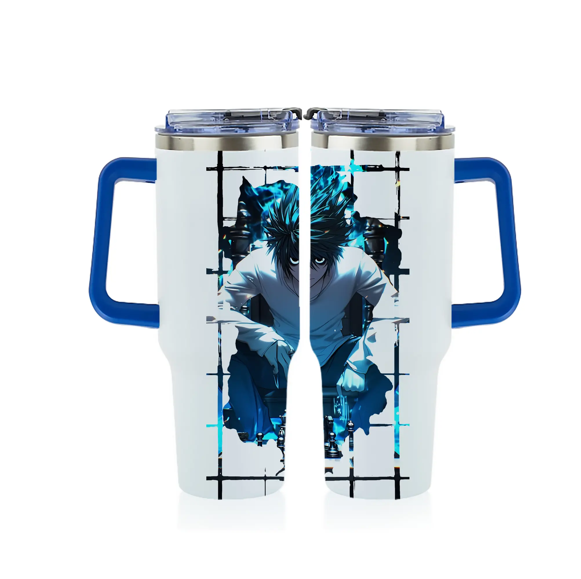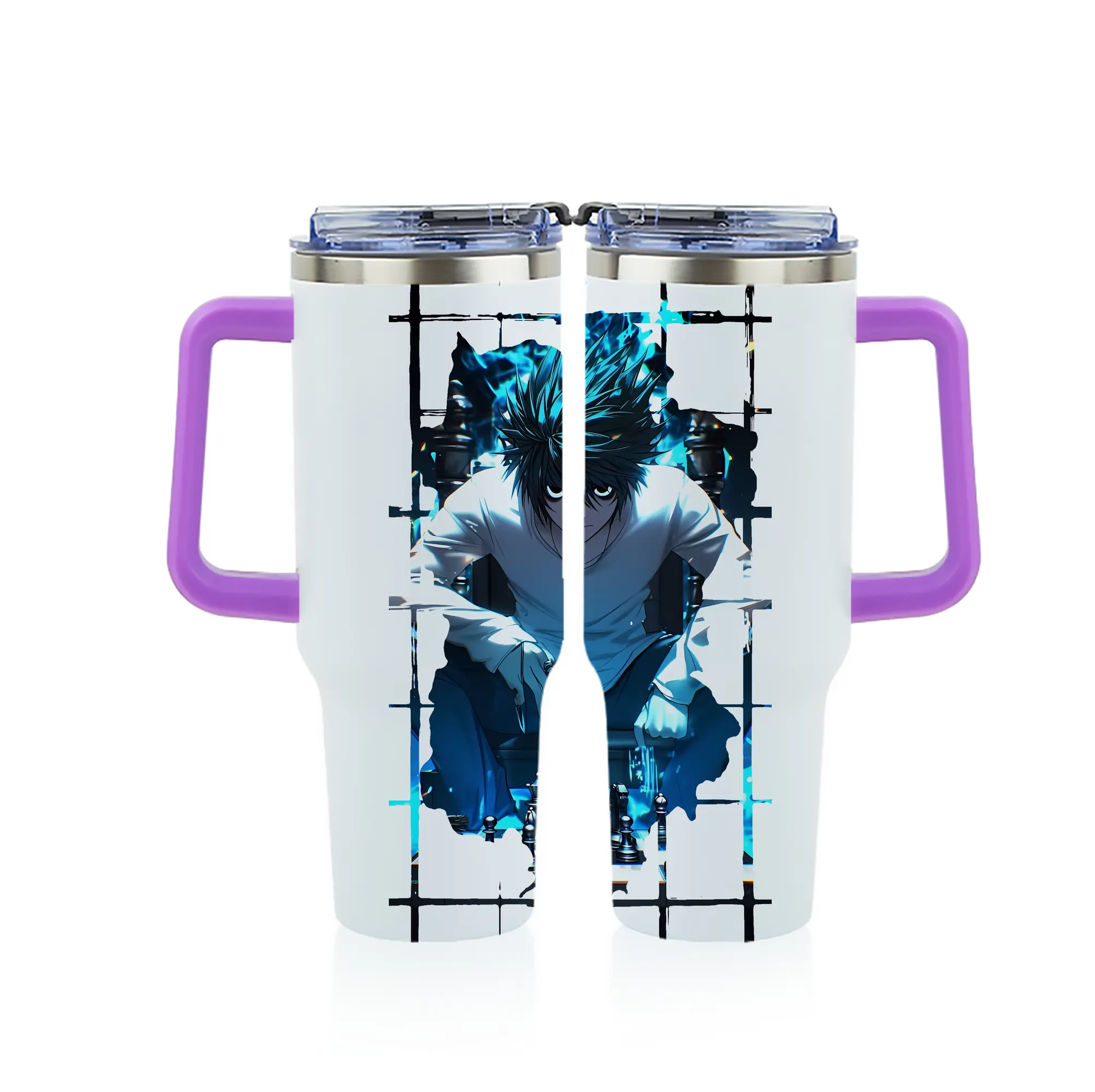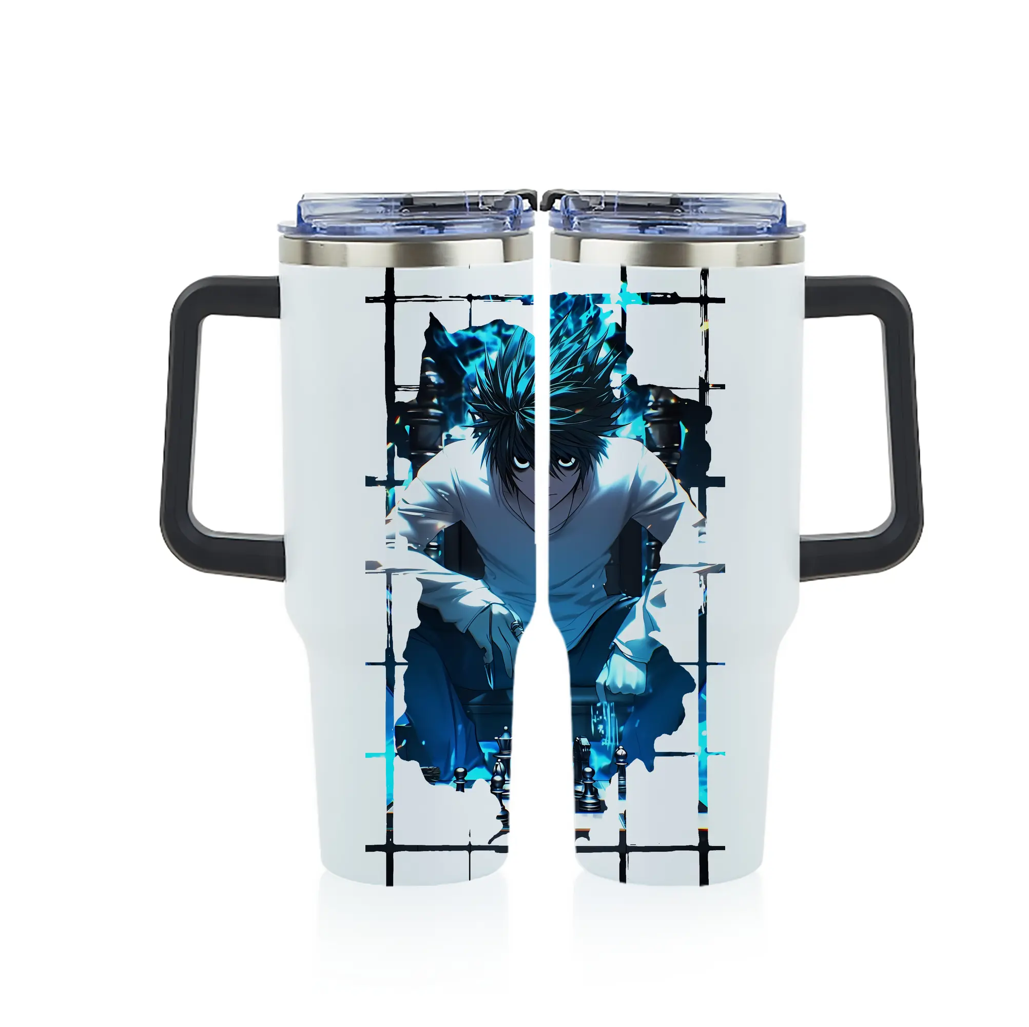 デスノート グッズ,L - 1200mL フルプリント車用タンブラー ・ 304ステンレス 内側 ・ 201ステンレス 外側 ・ 保温 保冷 ・ 通勤 ドライブ アウトドア用