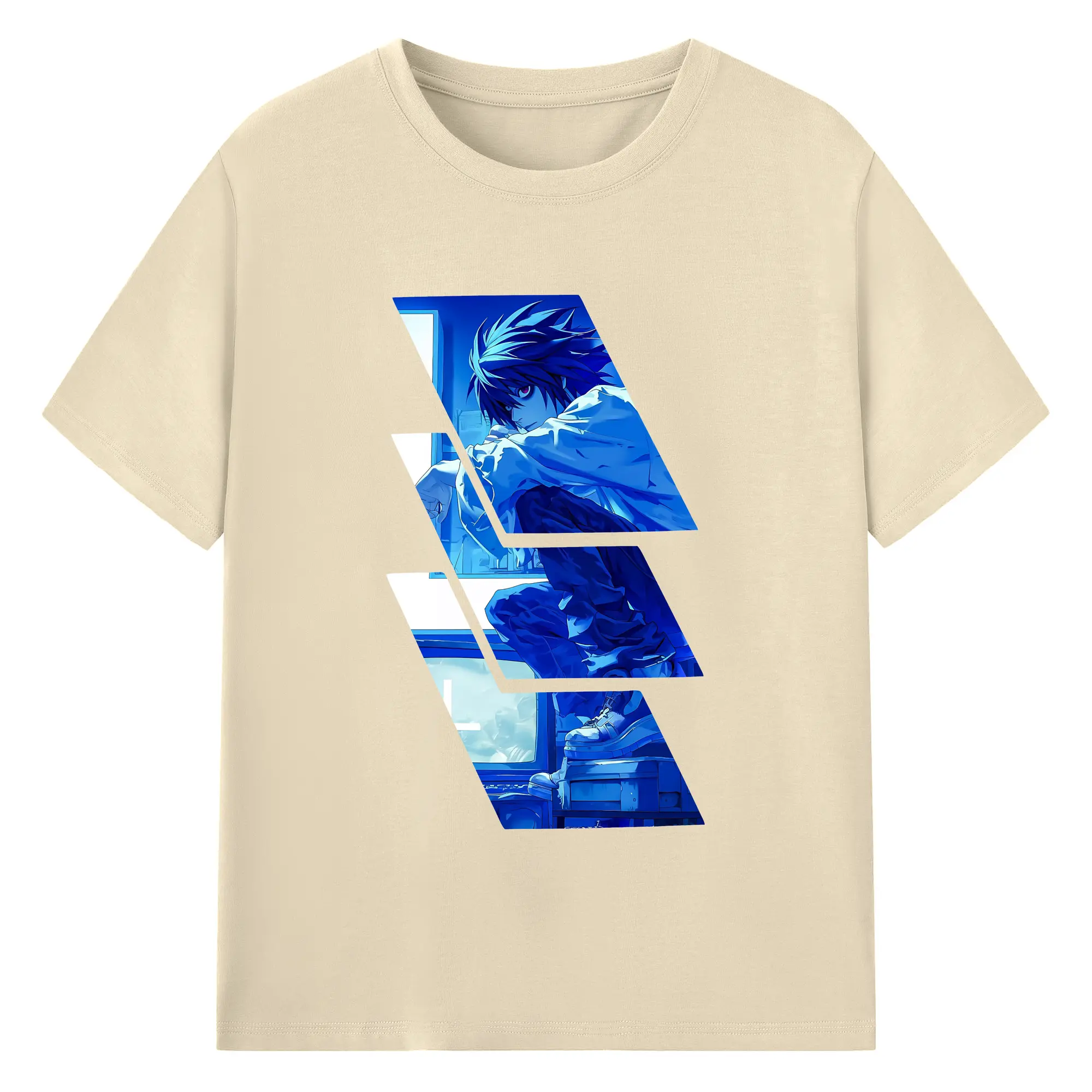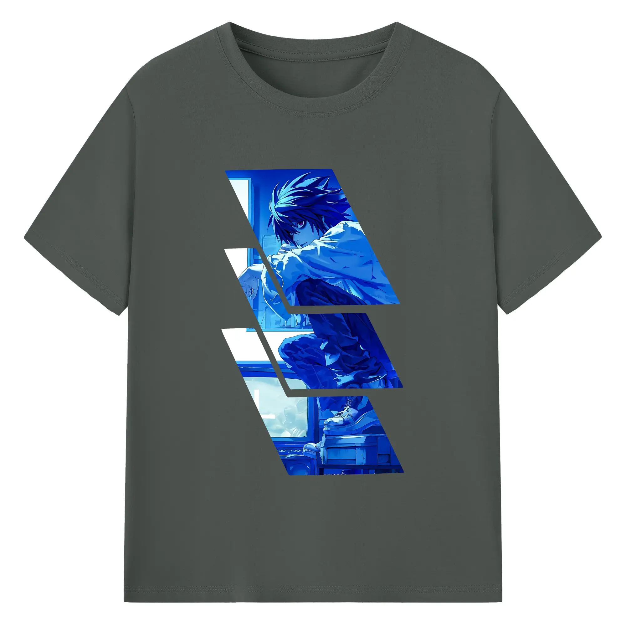 デスノート グッズ,L - 綿100% 半袖Tシャツ ・ バックプリント ・ 快適 通気性 ・ 日常使い 散歩 スポーツ用