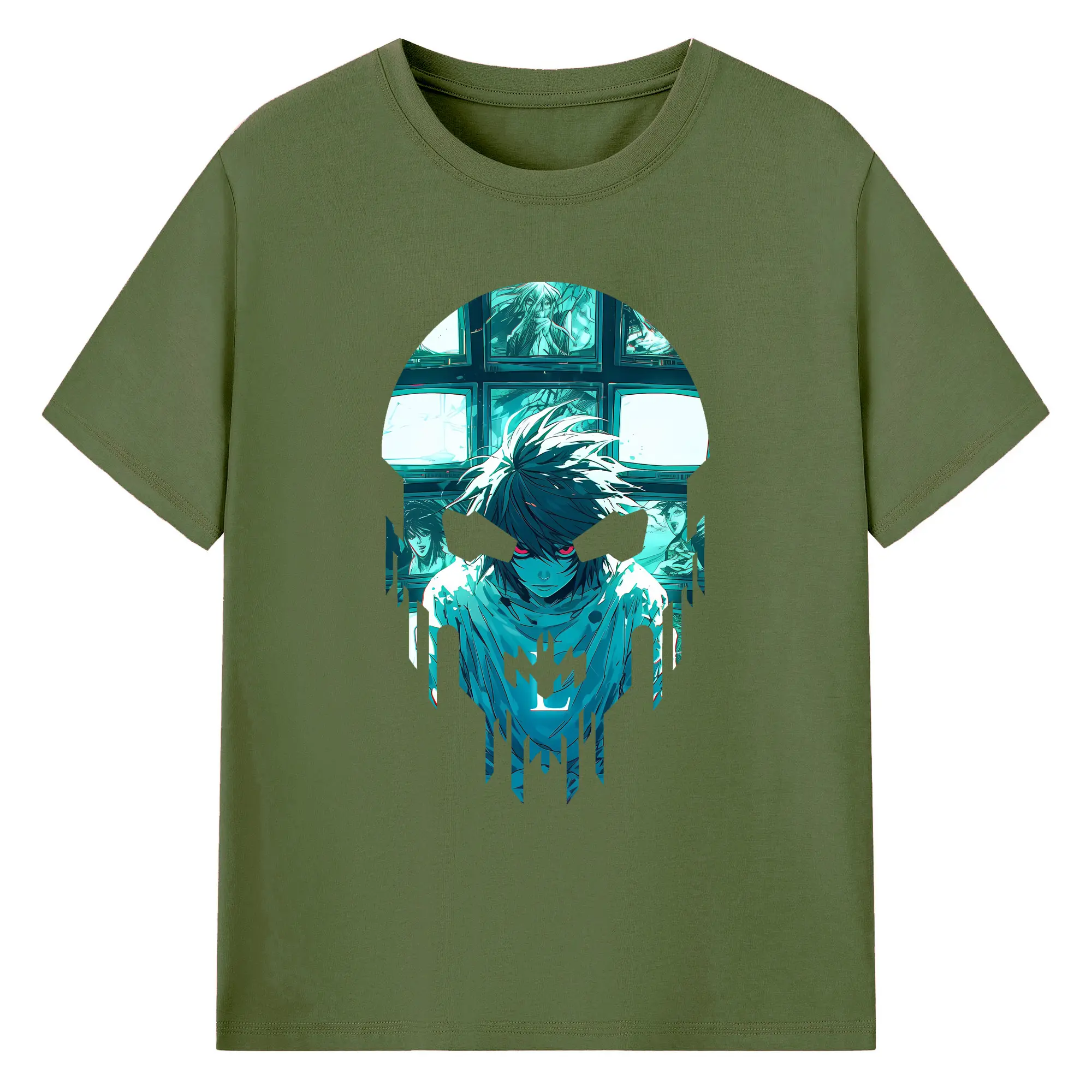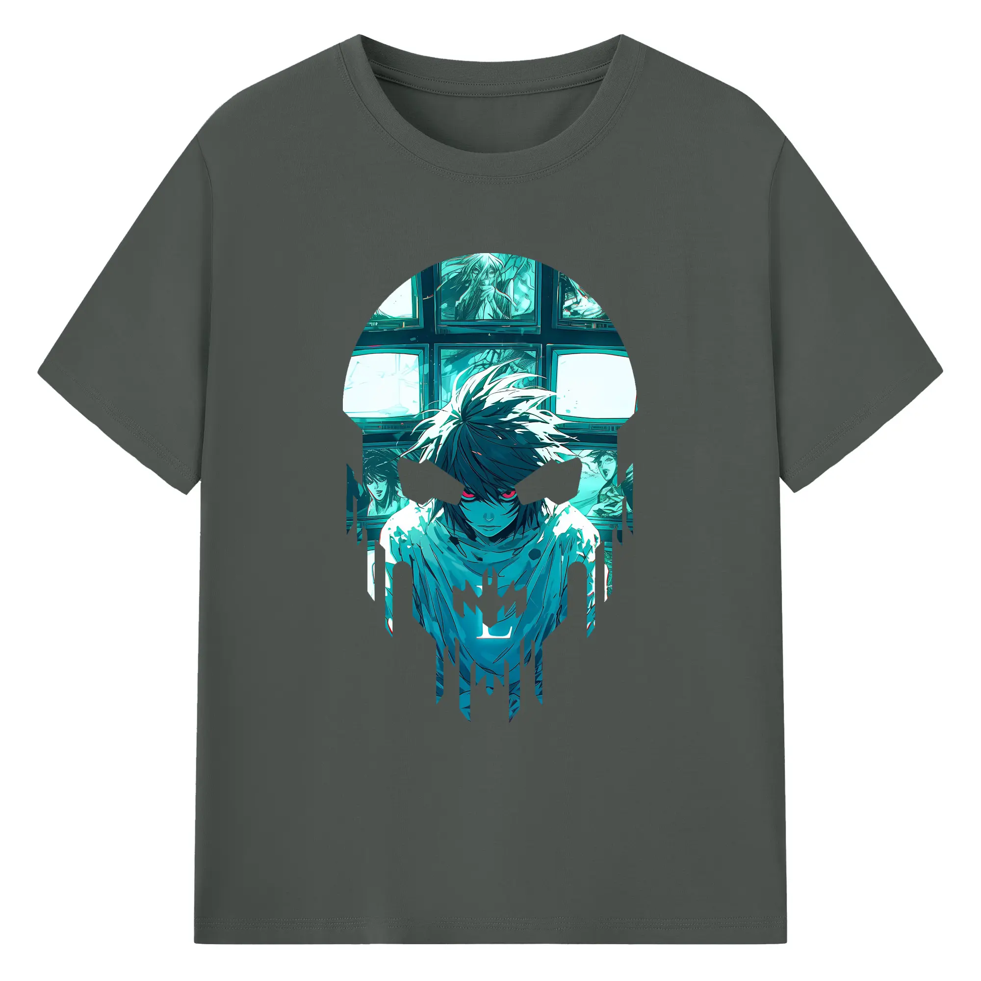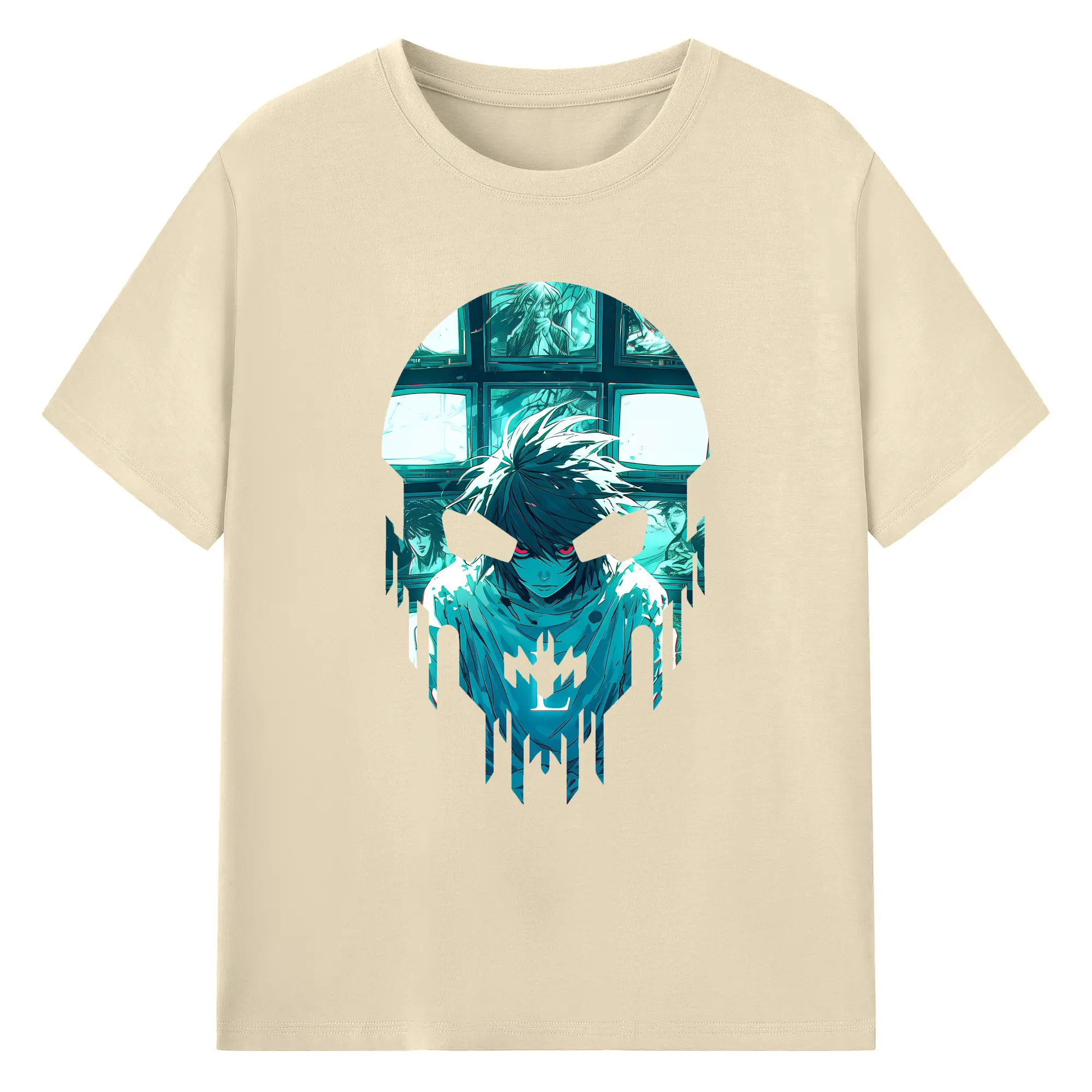 デスノート グッズ,L - 綿100% ヴィンテージ風 半袖Tシャツ ・ フロントプリント ・ 柔らか肌触り ・ 通気性 快適 ・ スポーツ カジュアル 外出用