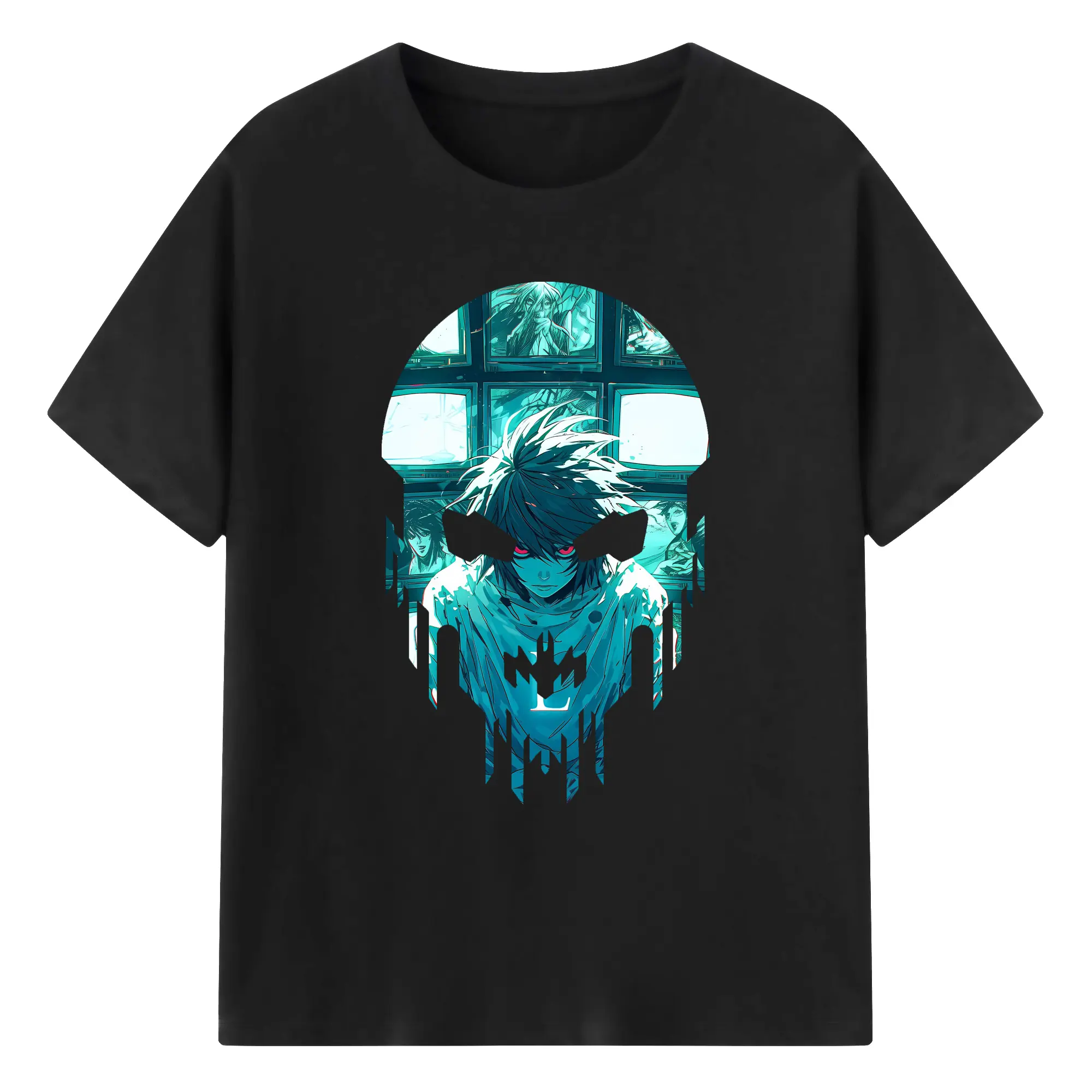 デスノート グッズ,L - 綿100% 半袖Tシャツ ・ バックプリント ・ 快適 通気性 ・ 日常使い 散歩 スポーツ用