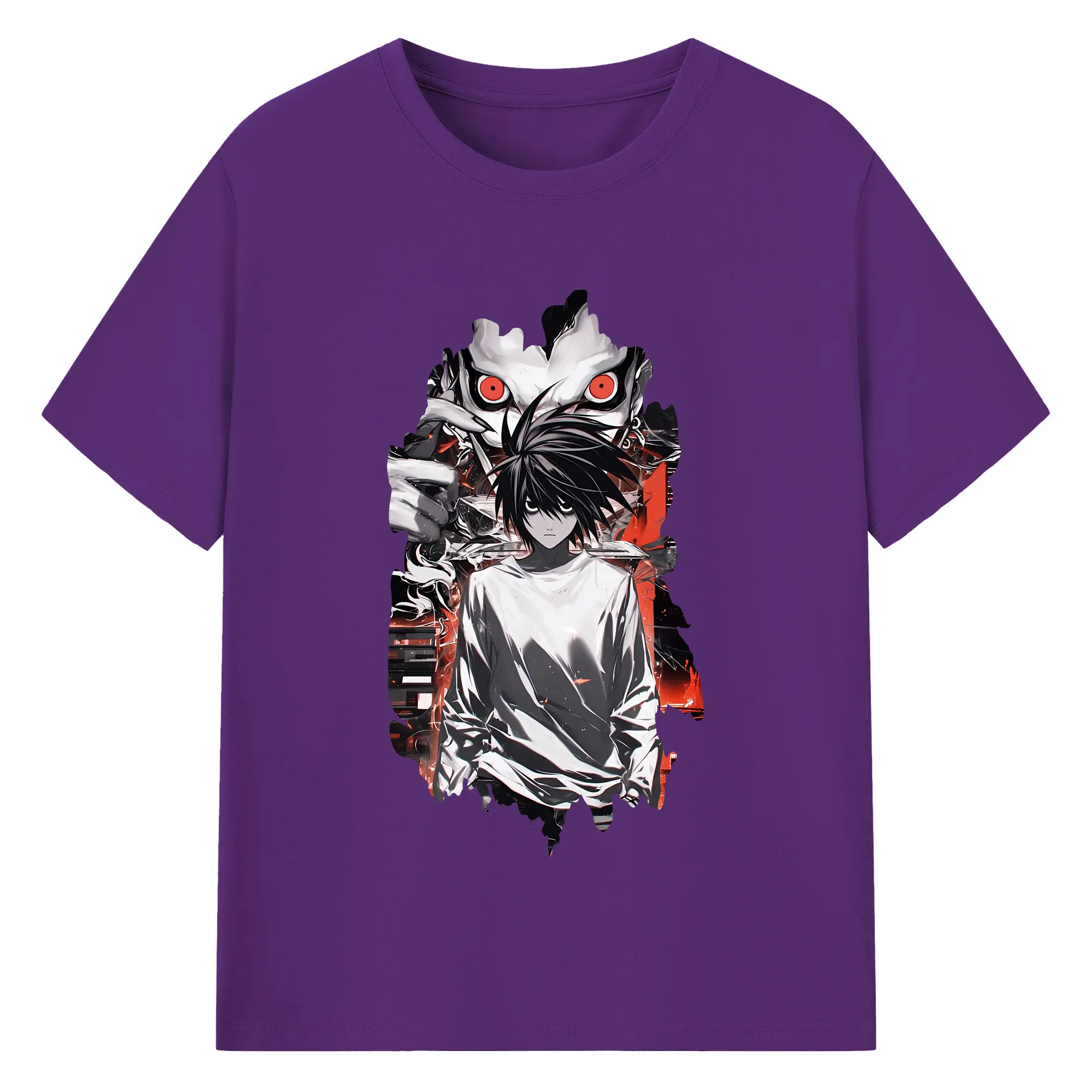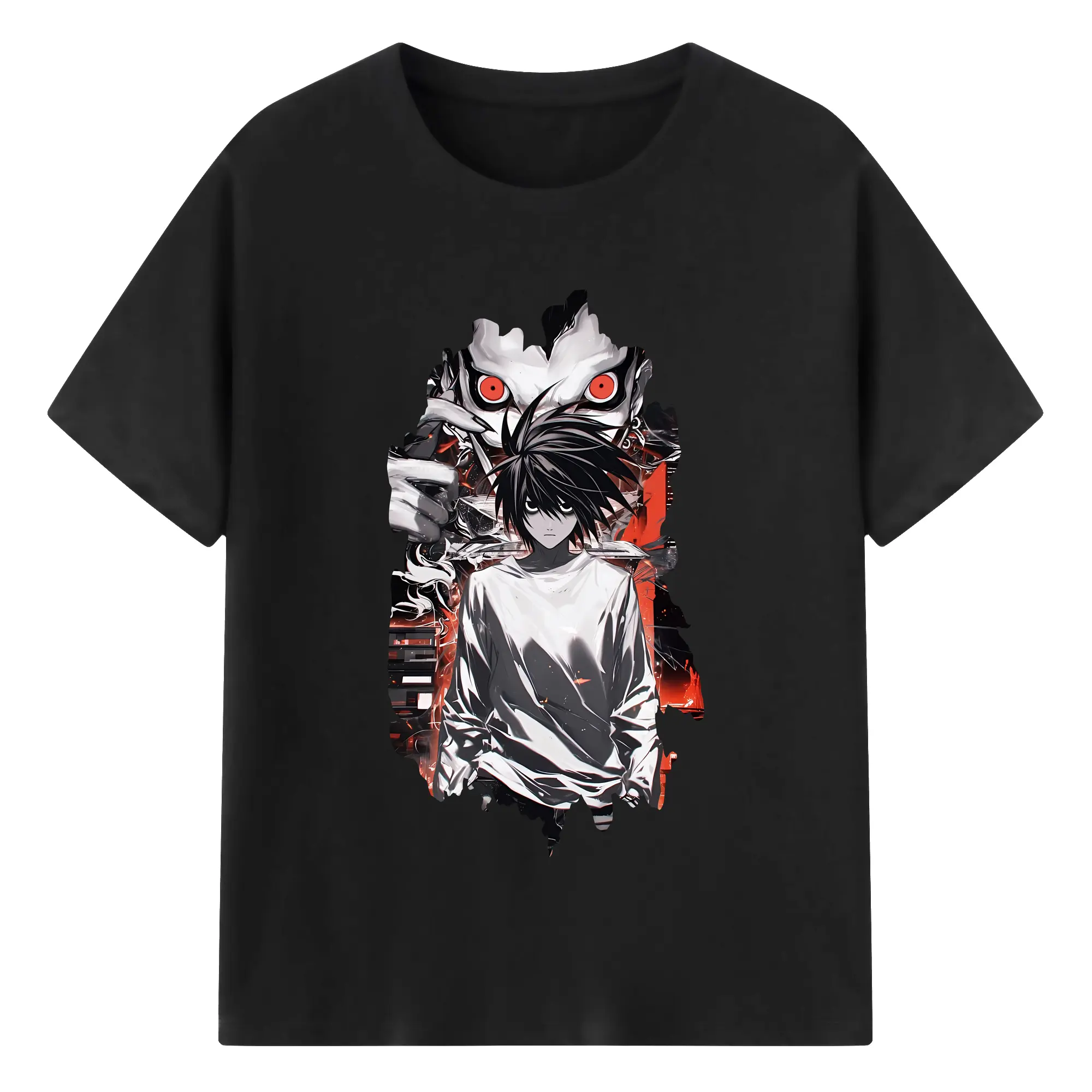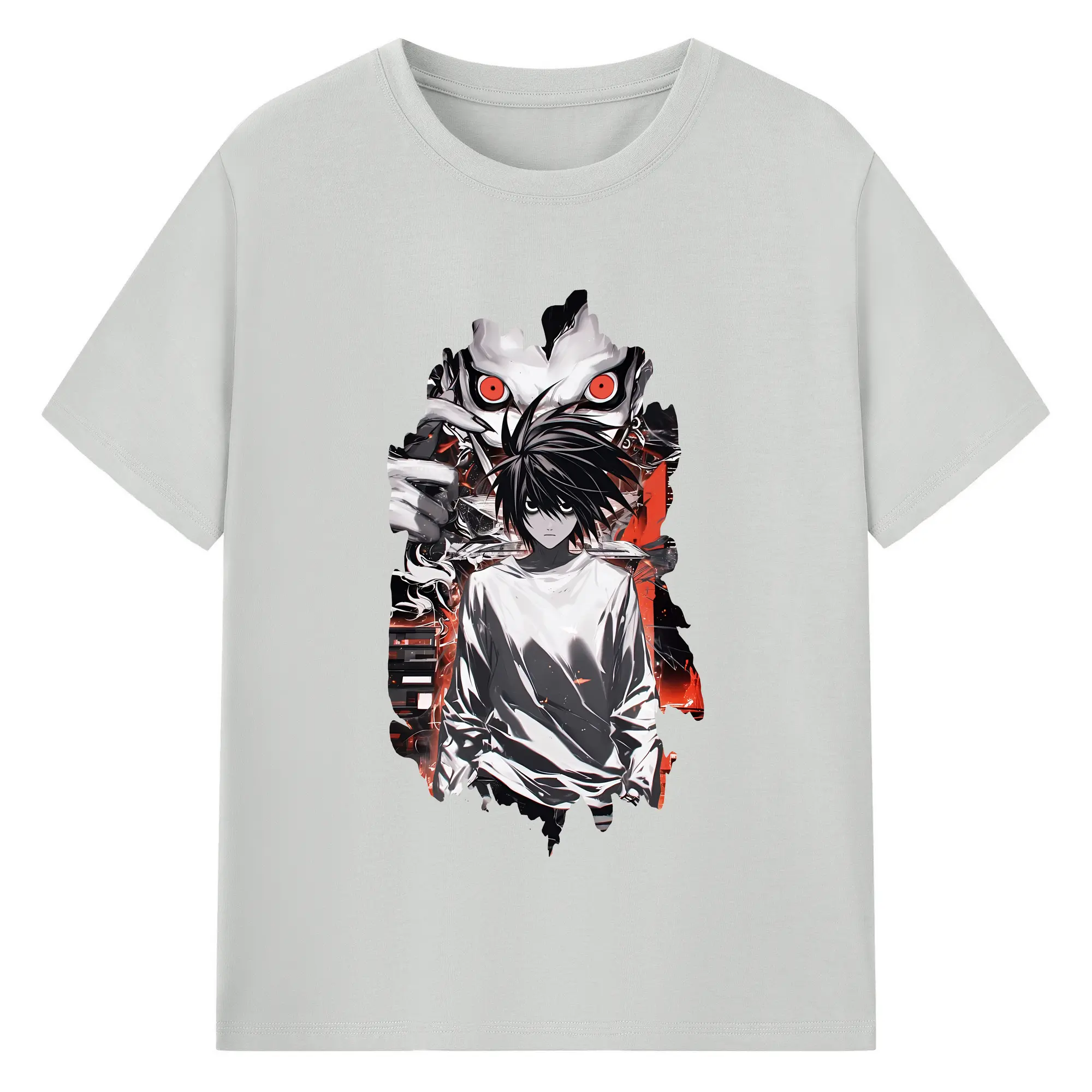 デスノート グッズ,L - 綿100% 半袖Tシャツ ・ バックプリント ・ 快適 通気性 ・ 日常使い 散歩 スポーツ用