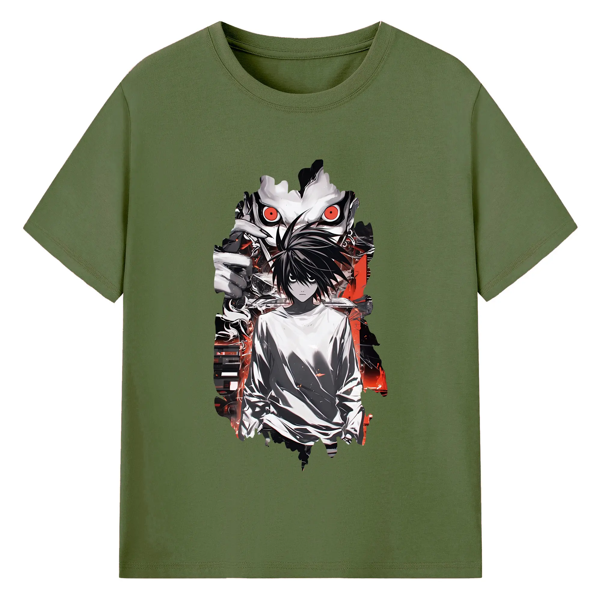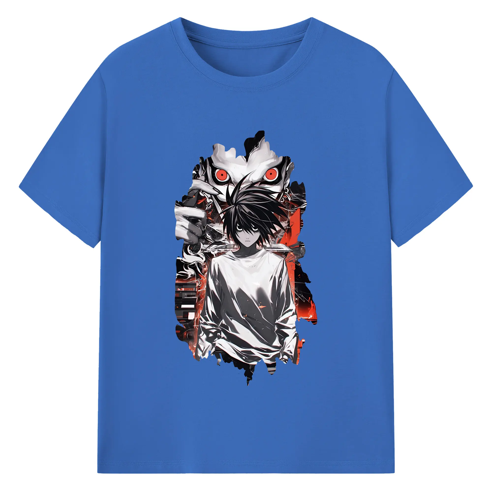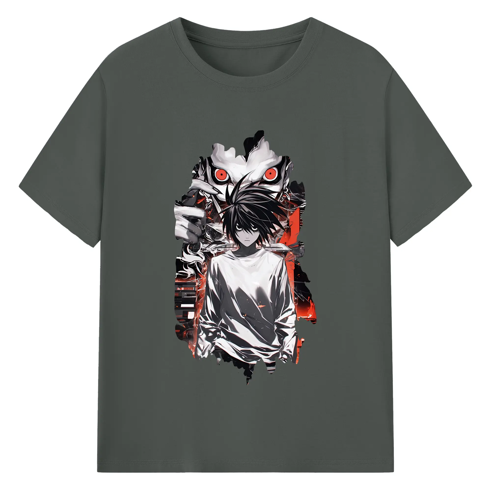 デスノート グッズ,L - 綿100% 半袖Tシャツ ・ バックプリント ・ 快適 通気性 ・ 日常使い 散歩 スポーツ用