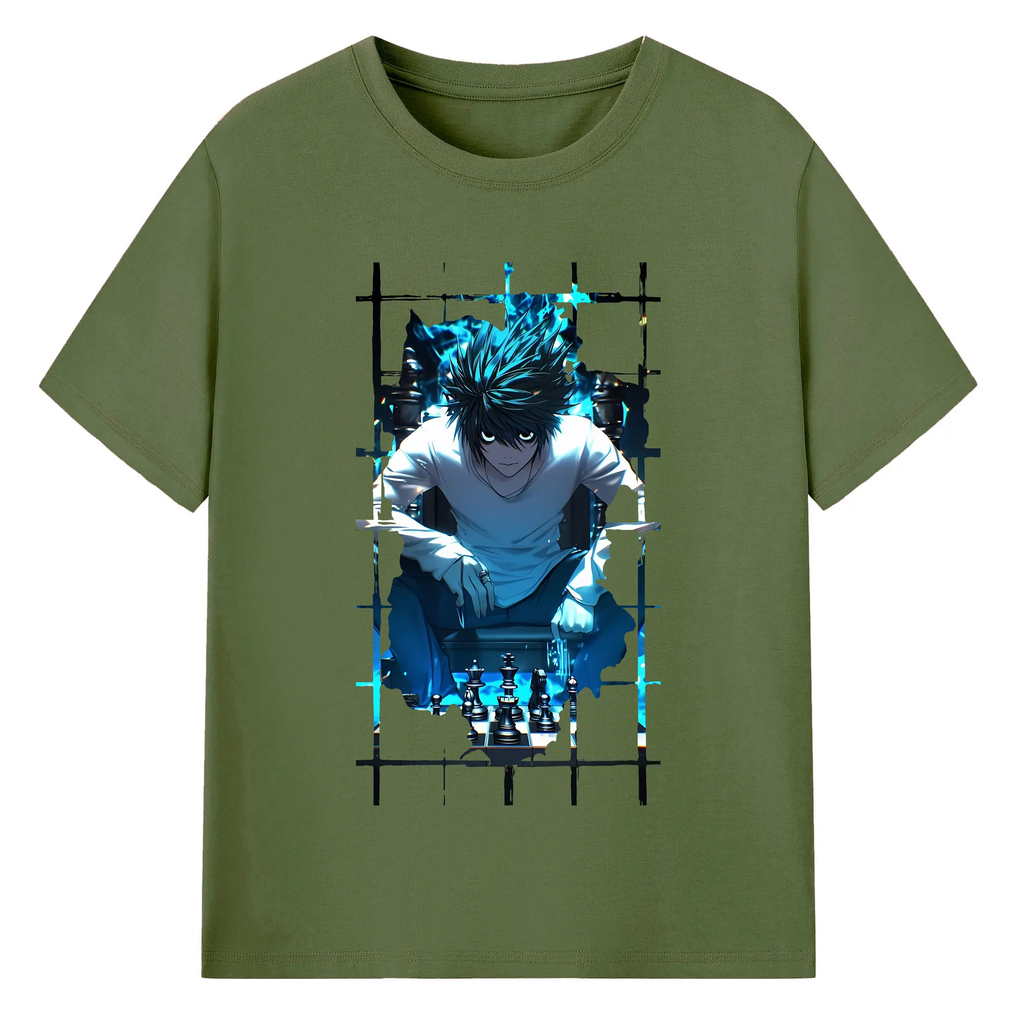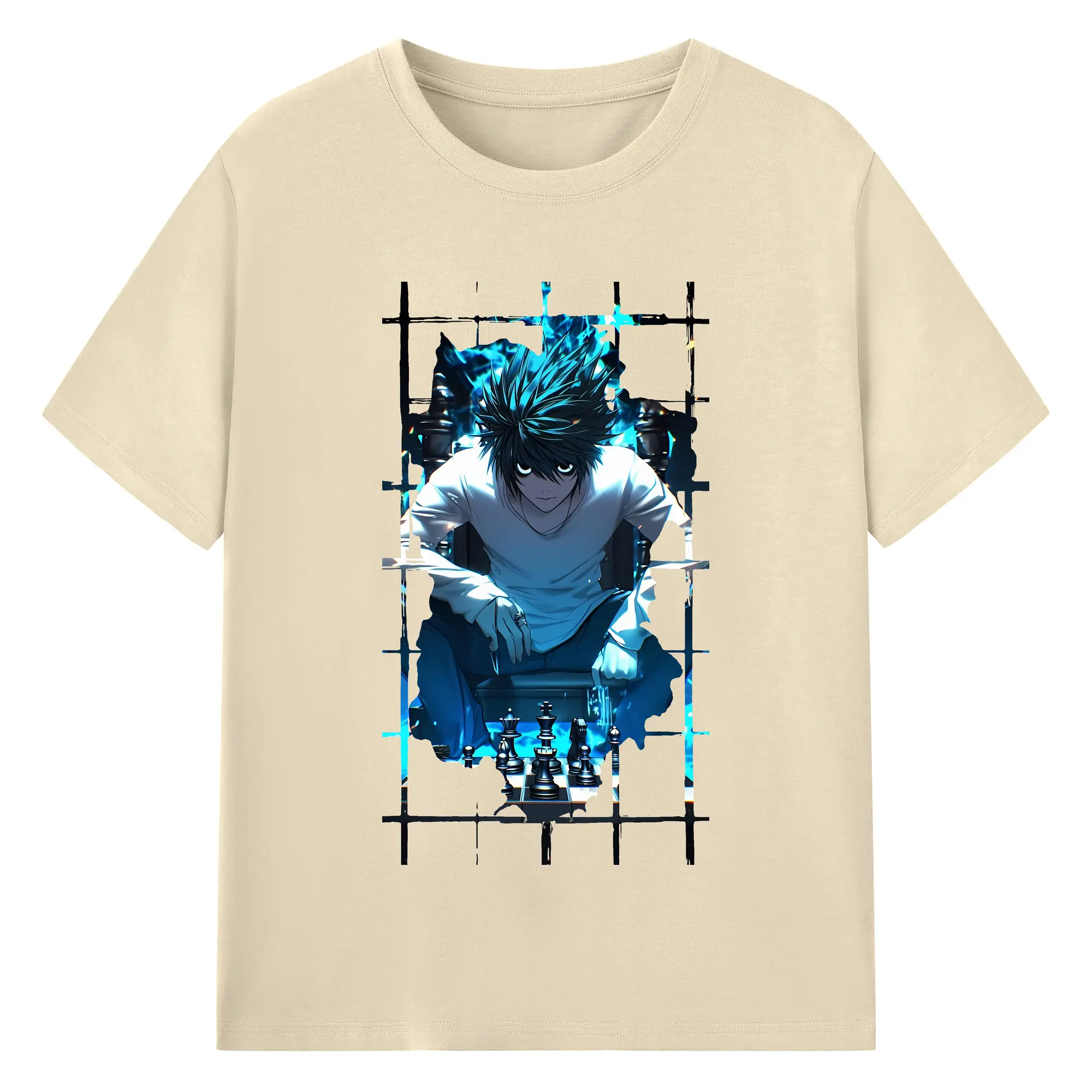 デスノート グッズ,L - 綿100% 半袖Tシャツ ・ バックプリント ・ 快適 通気性 ・ 日常使い 散歩 スポーツ用