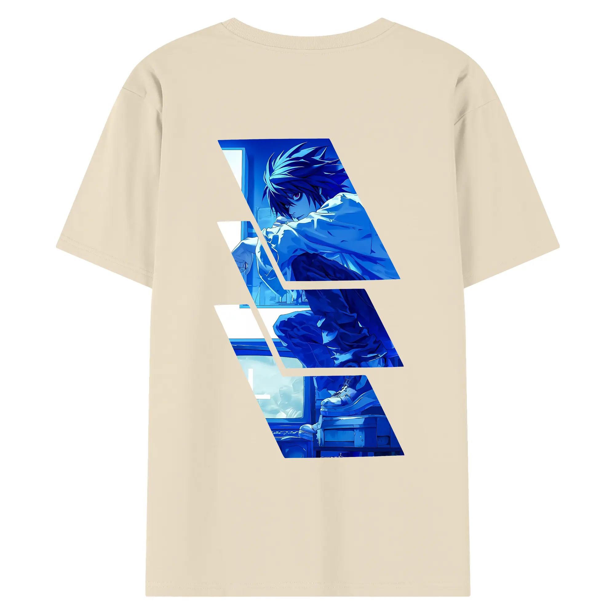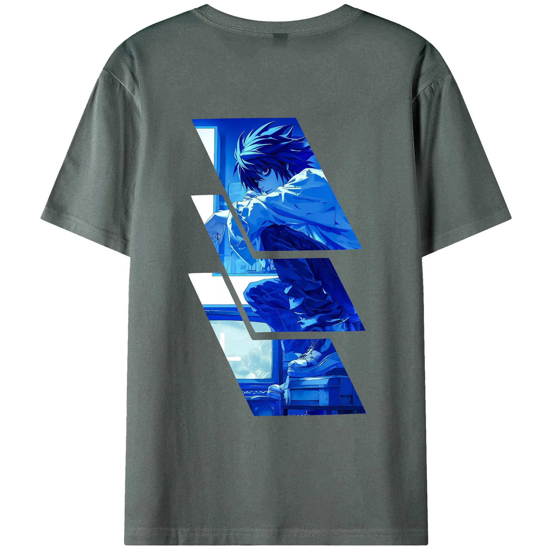 デスノート グッズ,L - 綿100% ヴィンテージ風 半袖Tシャツ ・ 背面プリント ・ 柔らか肌触り ・ 通気性 快適 ・ スポーツ カジュアル 外出用