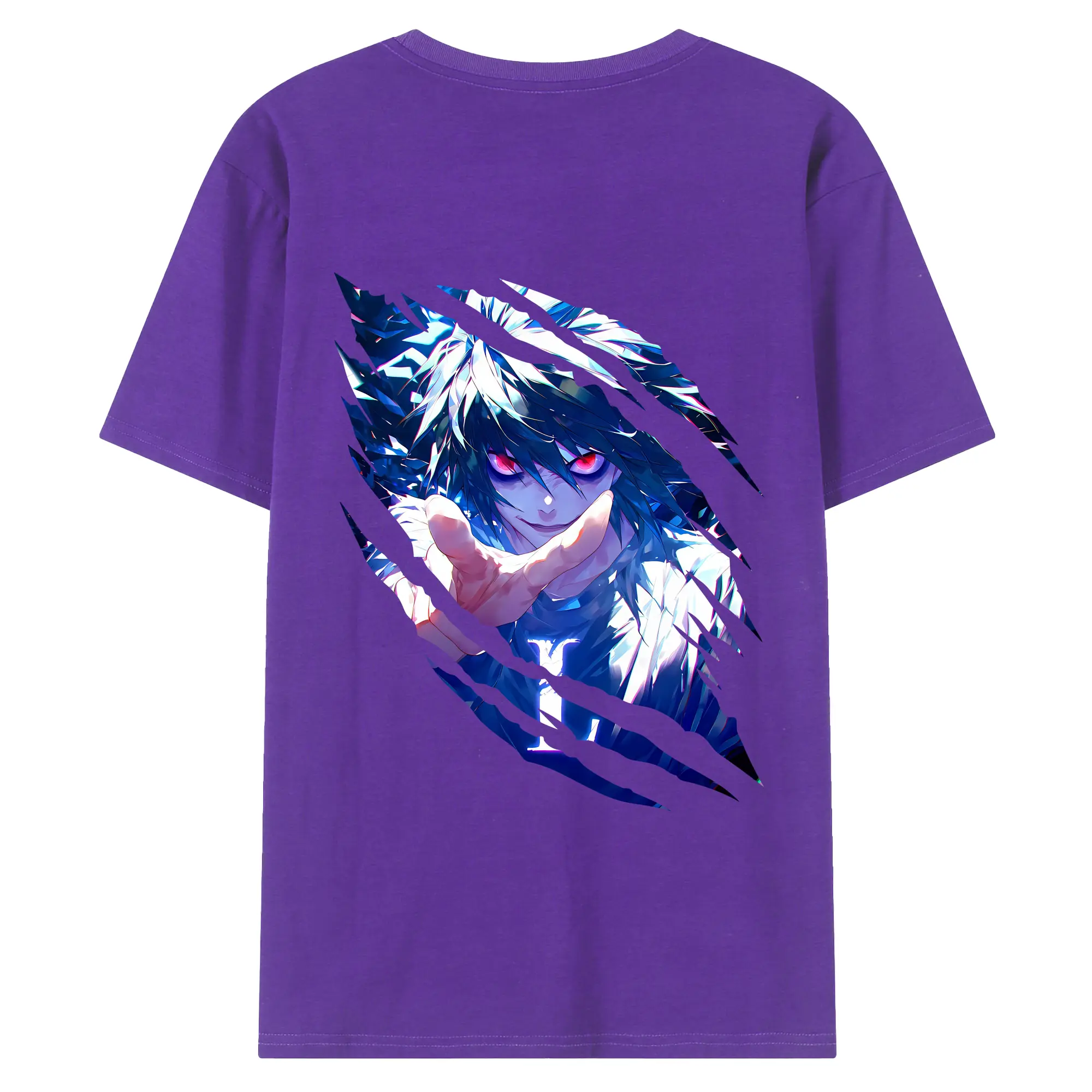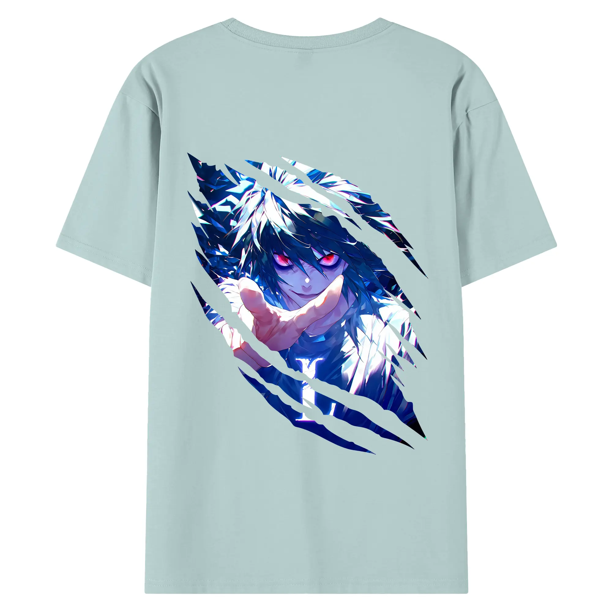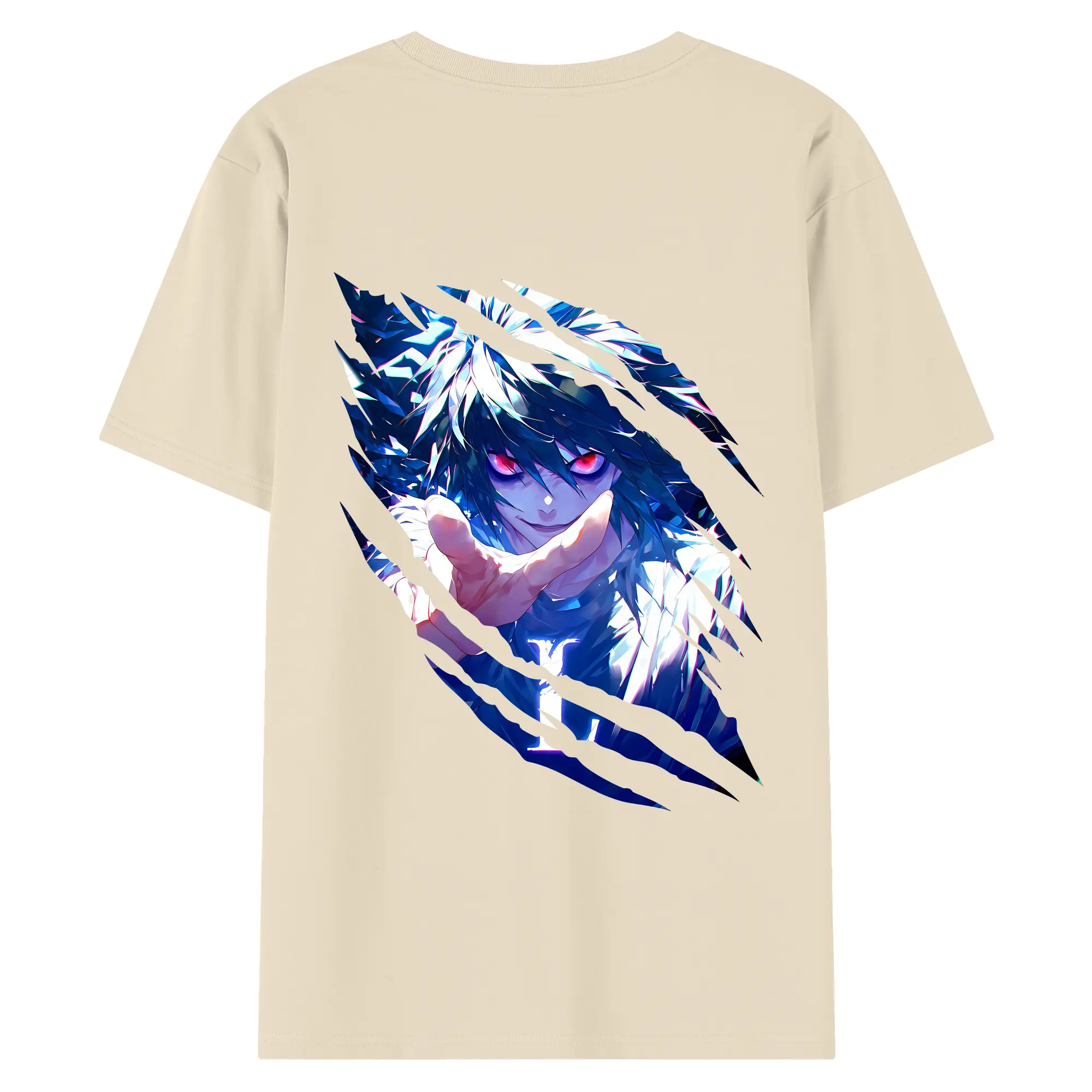 デスノート グッズ,L - 綿100% ヴィンテージ風 半袖Tシャツ ・ 背面プリント ・ 柔らか肌触り ・ 通気性 快適 ・ スポーツ カジュアル 外出用