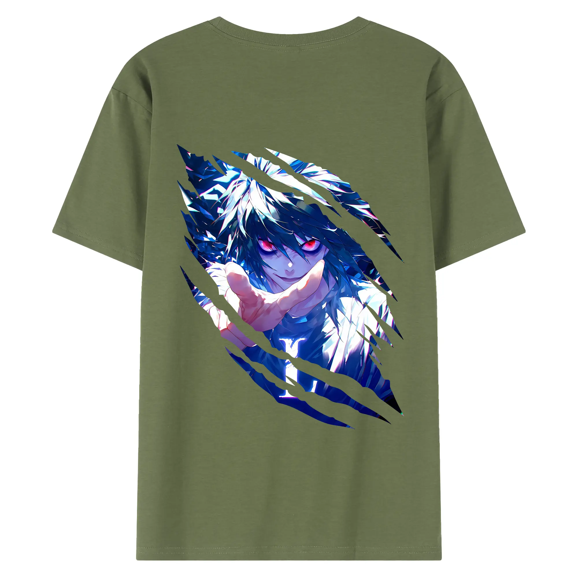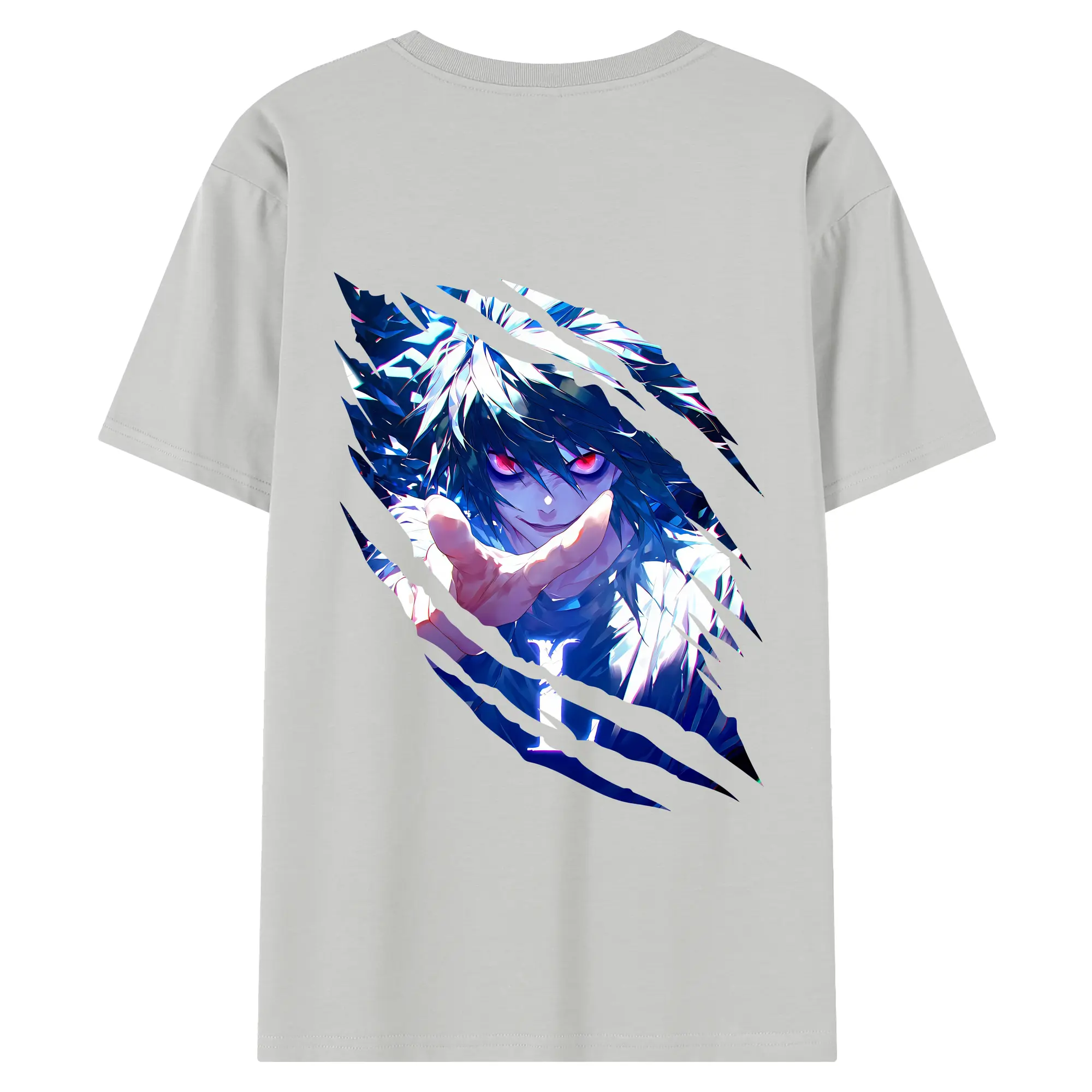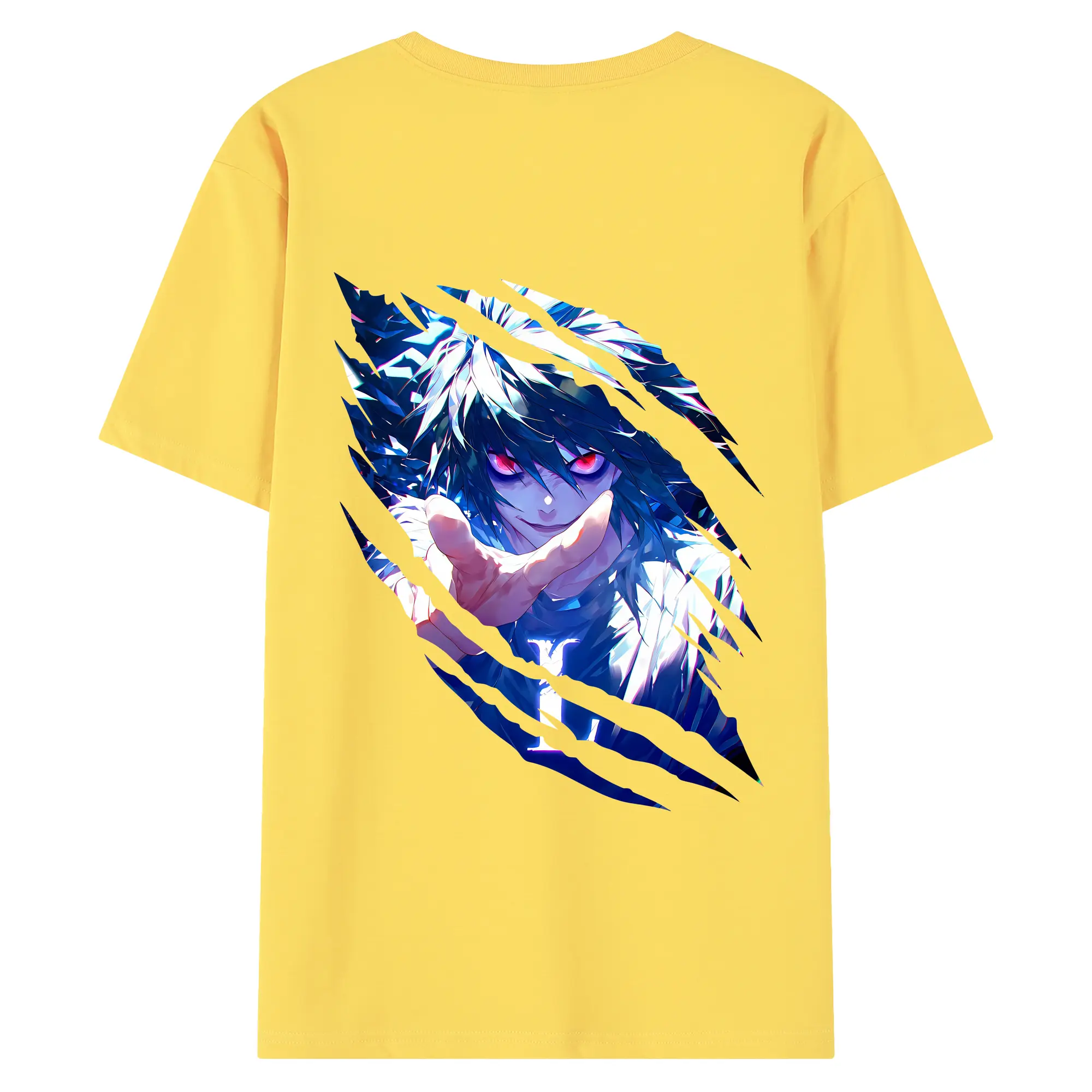 デスノート グッズ,L - 綿100% ヴィンテージ風 半袖Tシャツ ・ 背面プリント ・ 柔らか肌触り ・ 通気性 快適 ・ スポーツ カジュアル 外出用