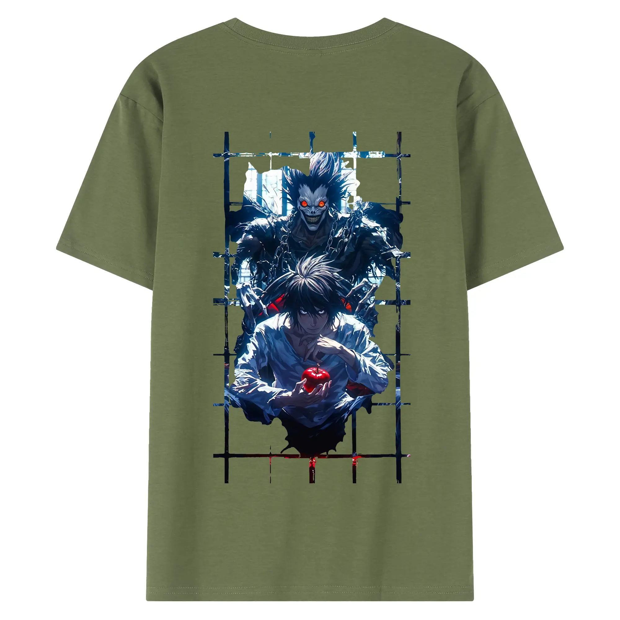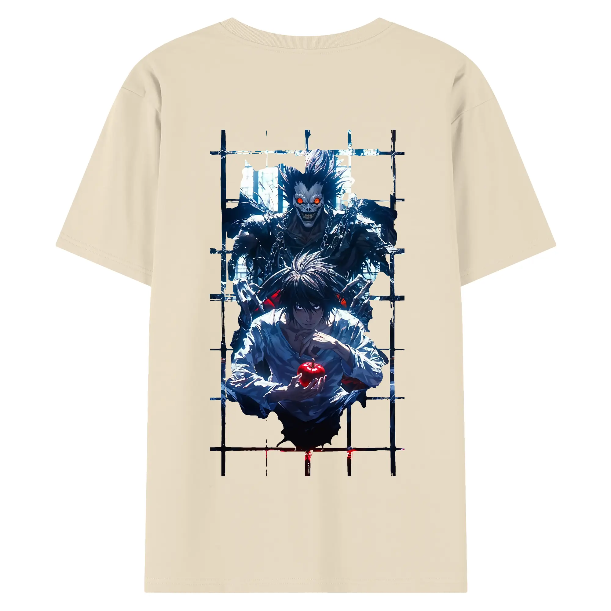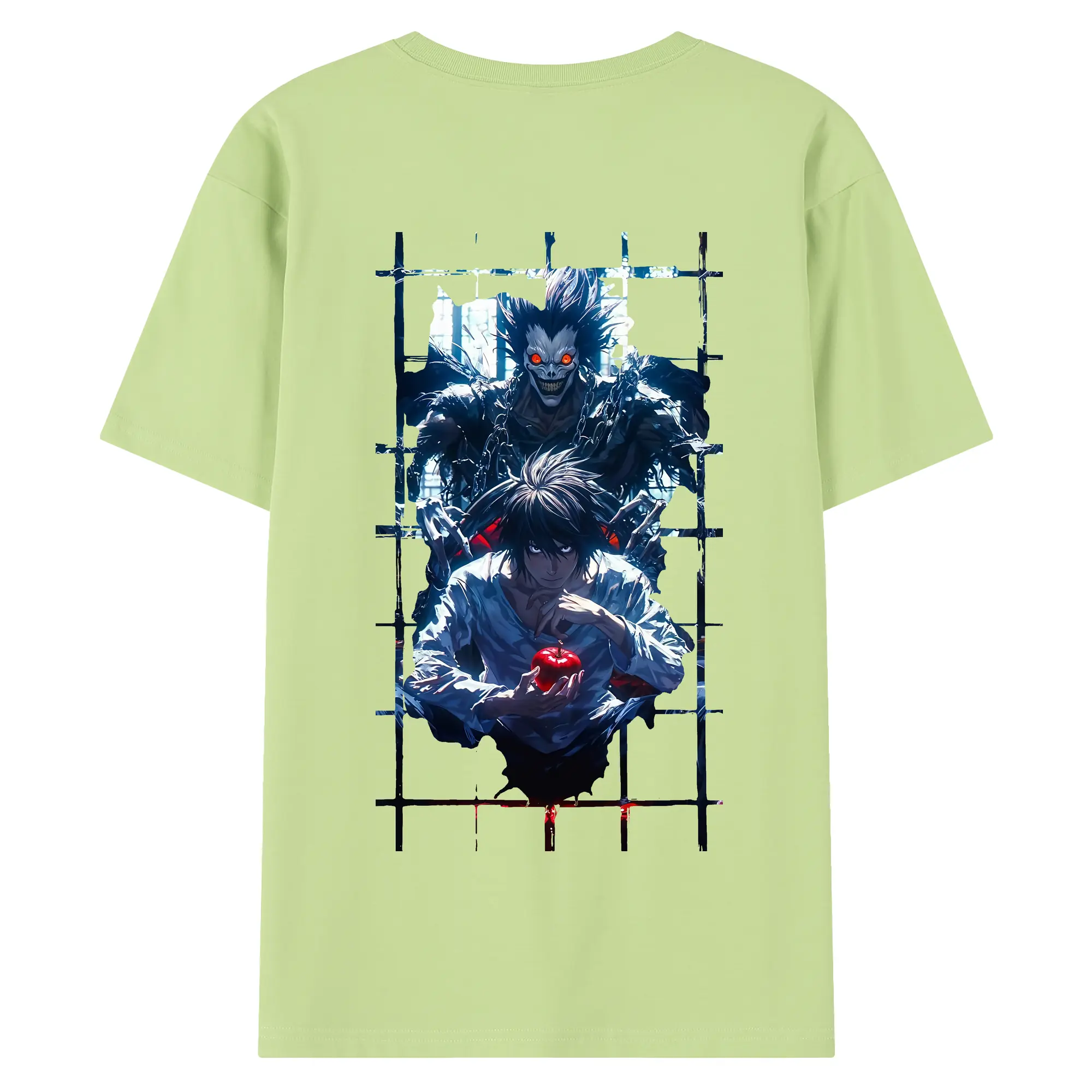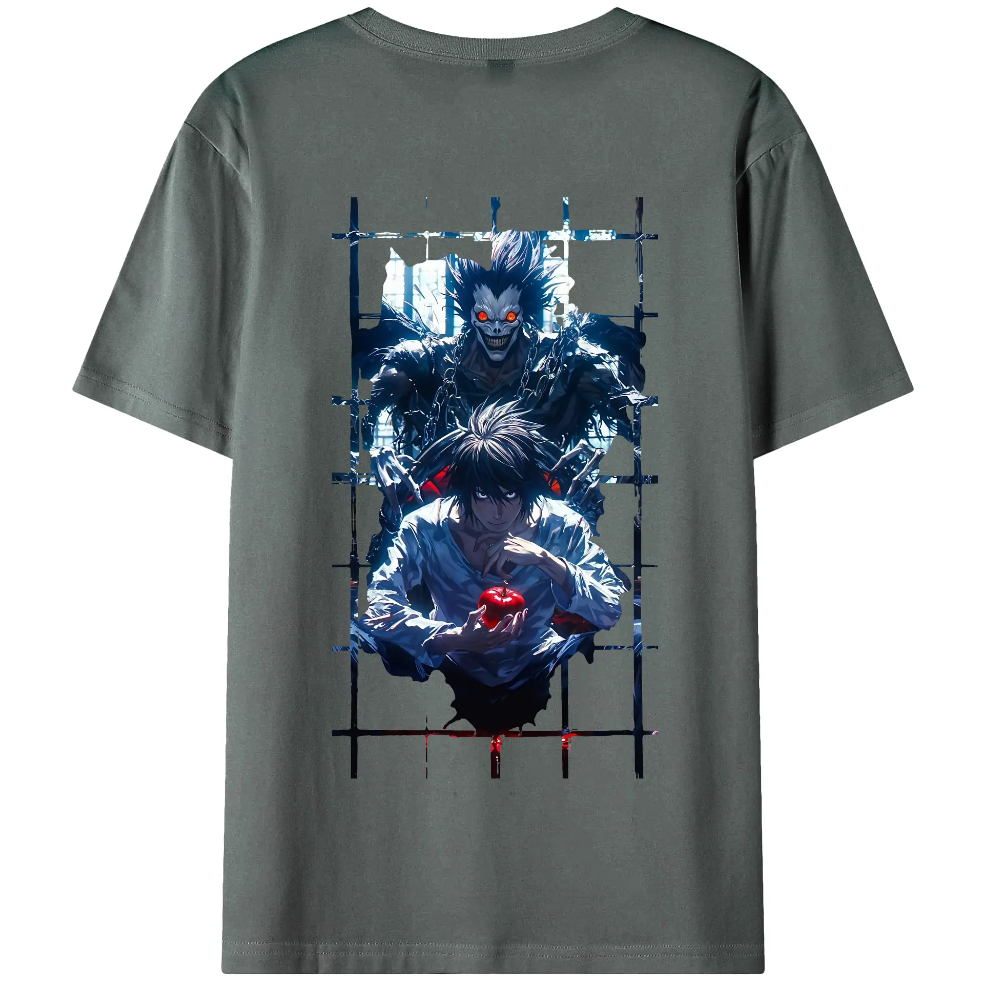 デスノート グッズ,L - 綿100% ヴィンテージ風 半袖Tシャツ ・ 背面プリント ・ 柔らか肌触り ・ 通気性 快適 ・ スポーツ カジュアル 外出用