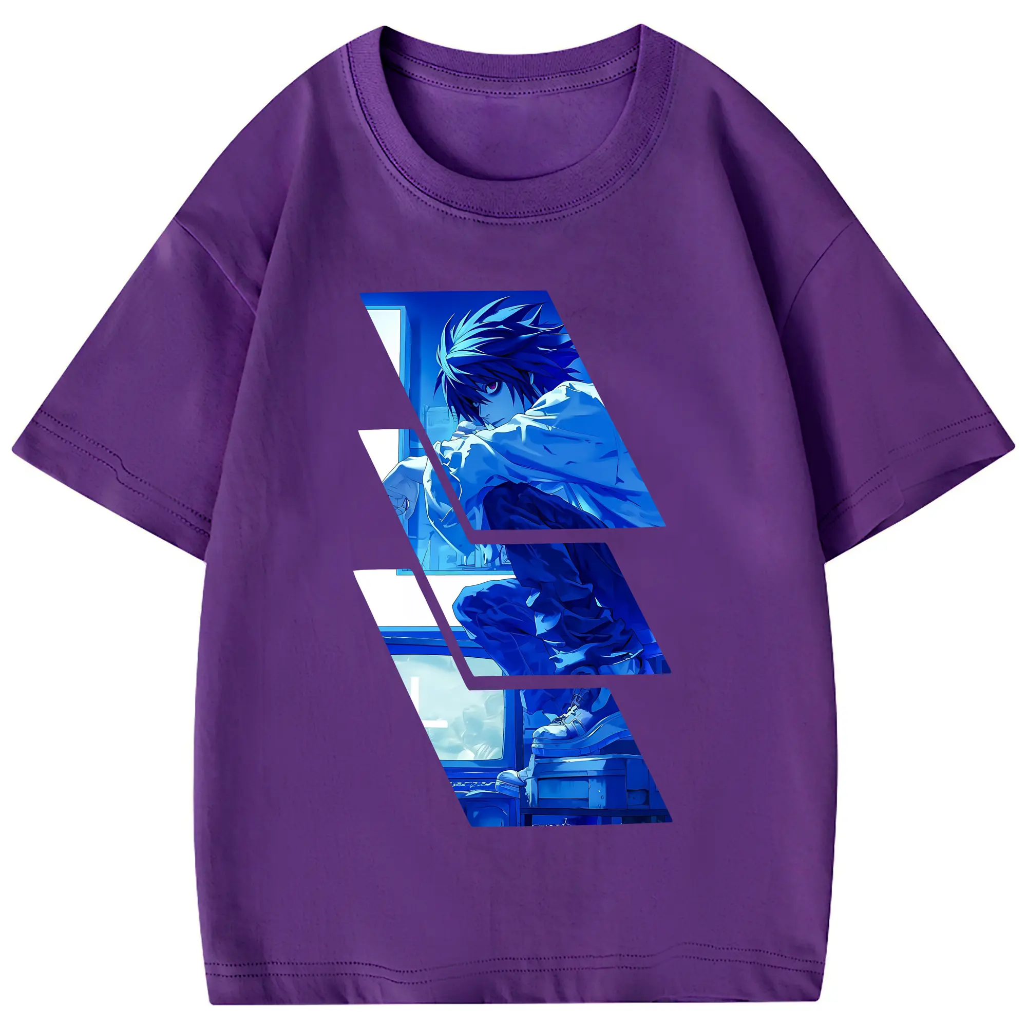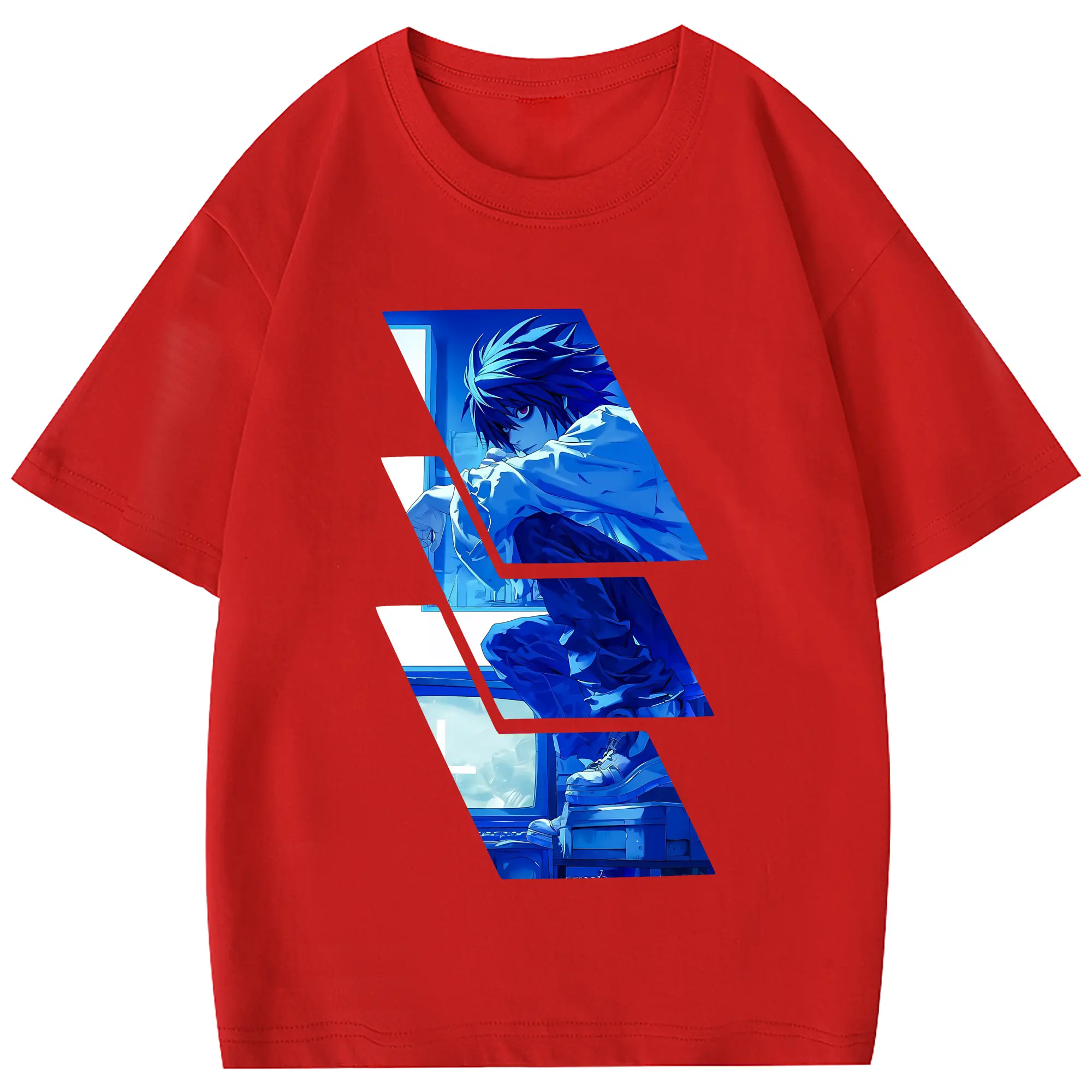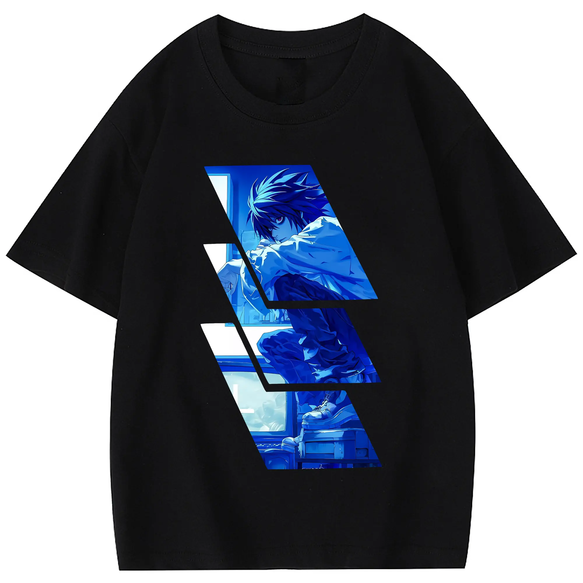 デスノート グッズ,L - 綿100% 半袖Tシャツ ・ フロントプリント ・ 快適 通気性 ・ 日常使い 散歩 スポーツ用