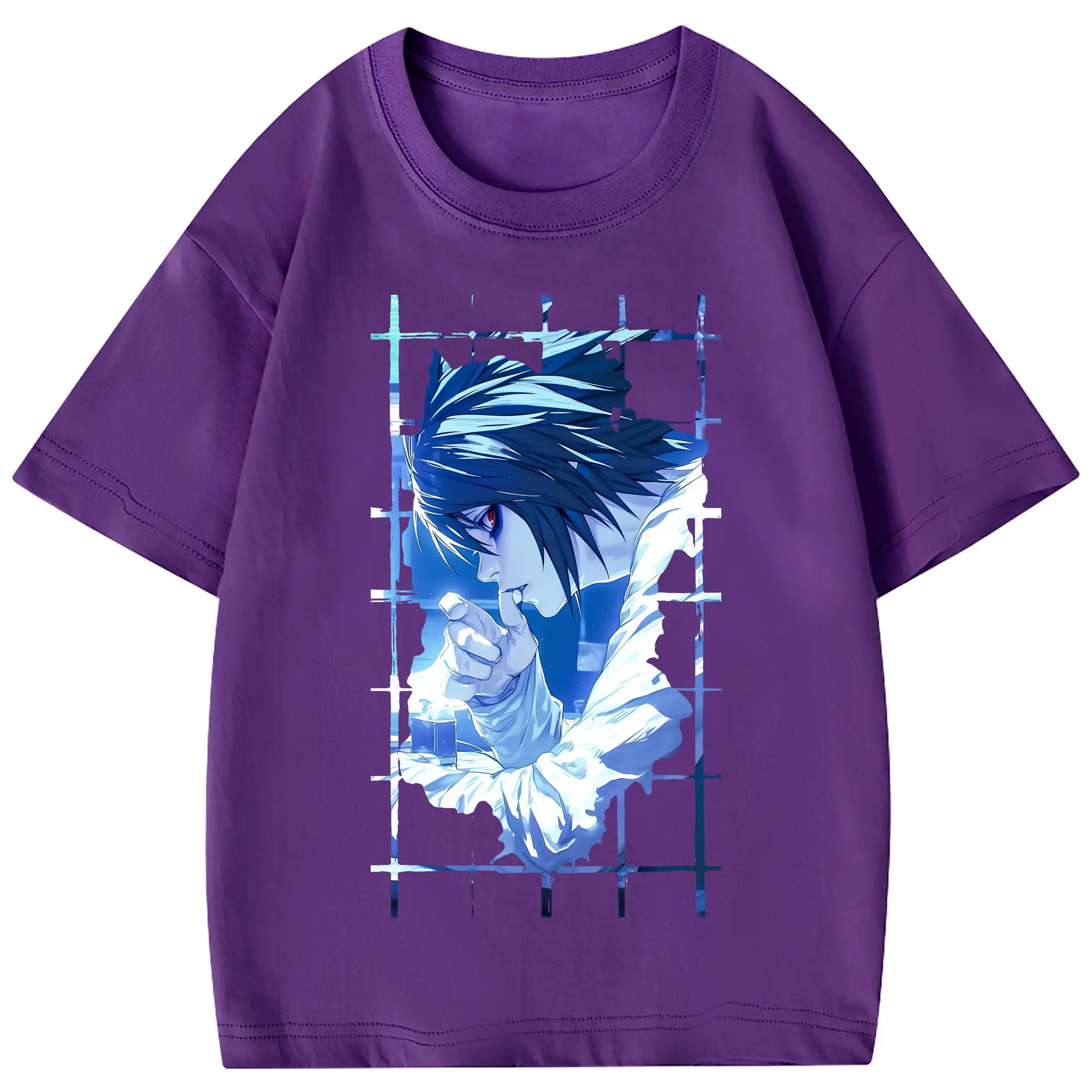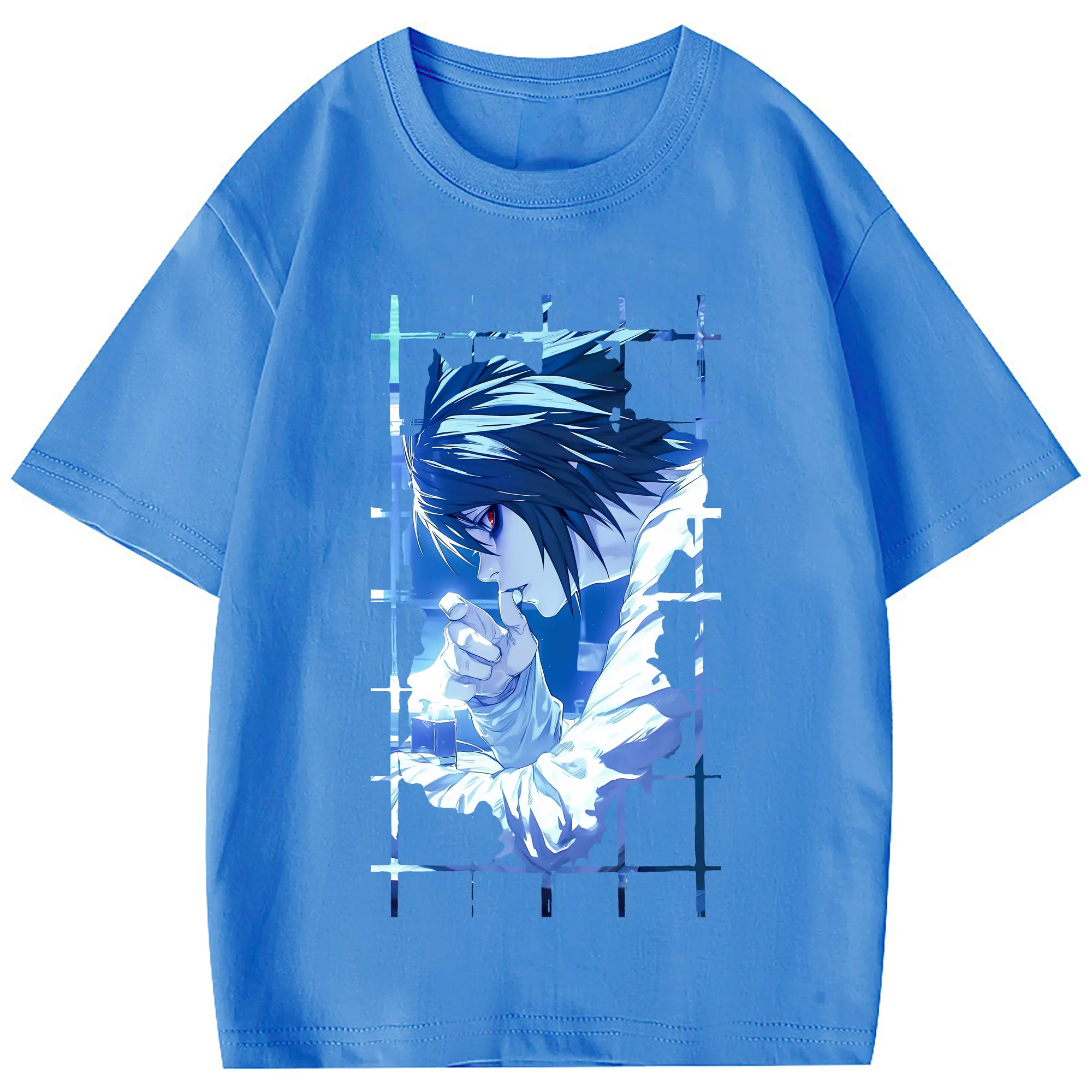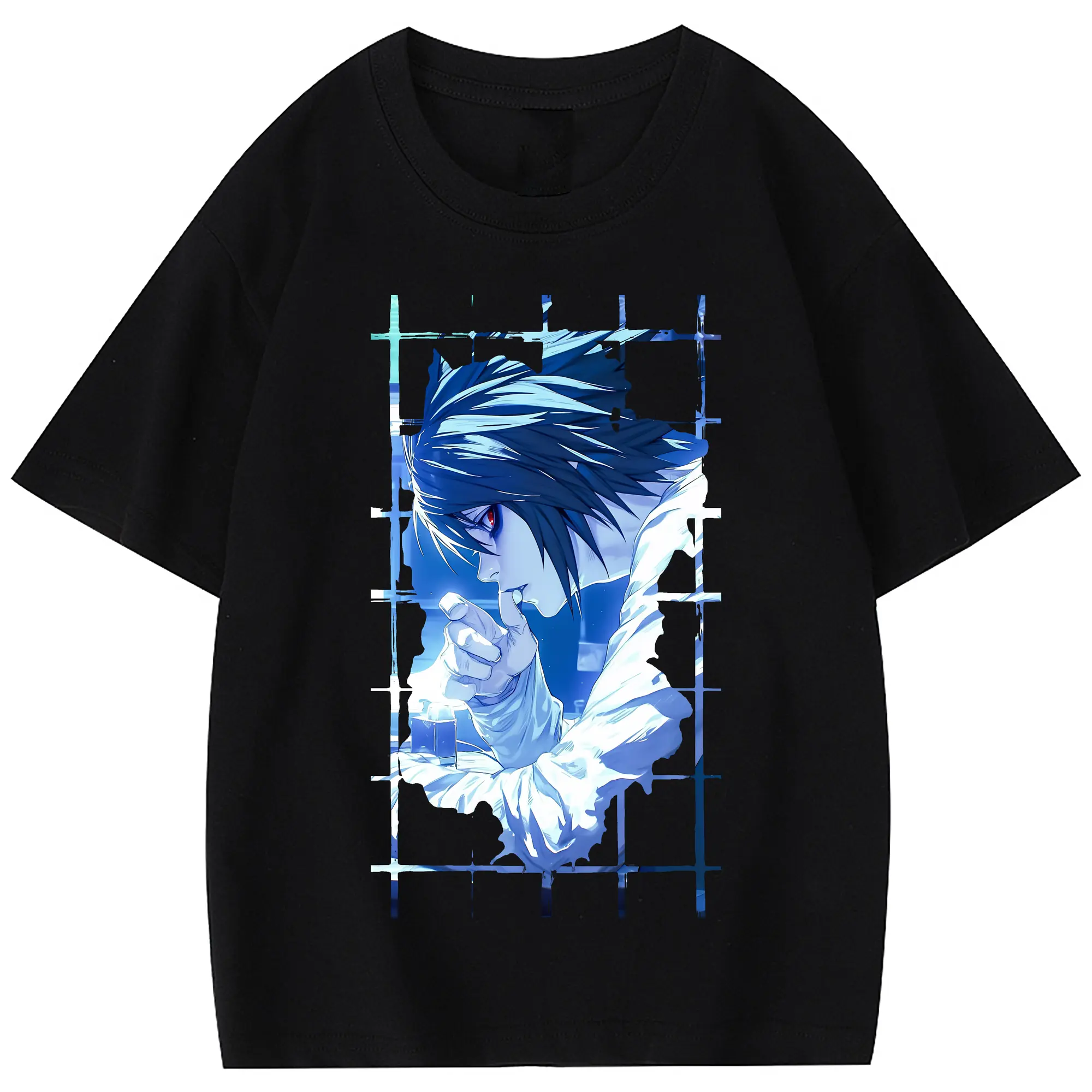 デスノート グッズ,L - 綿100% 半袖Tシャツ ・ フロントプリント ・ 快適 通気性 ・ 日常使い 散歩 スポーツ用
