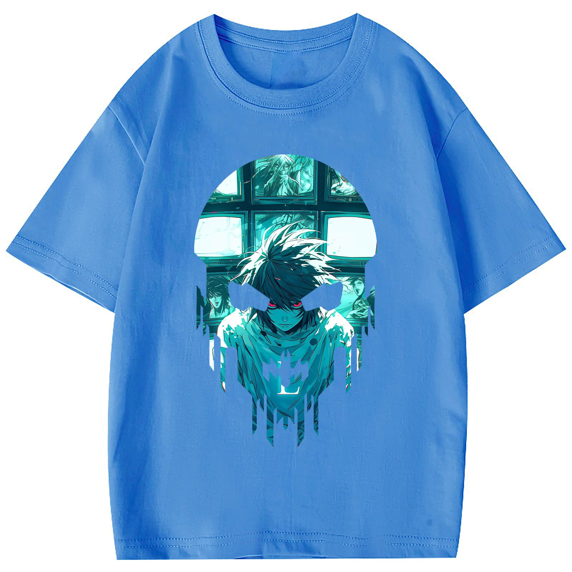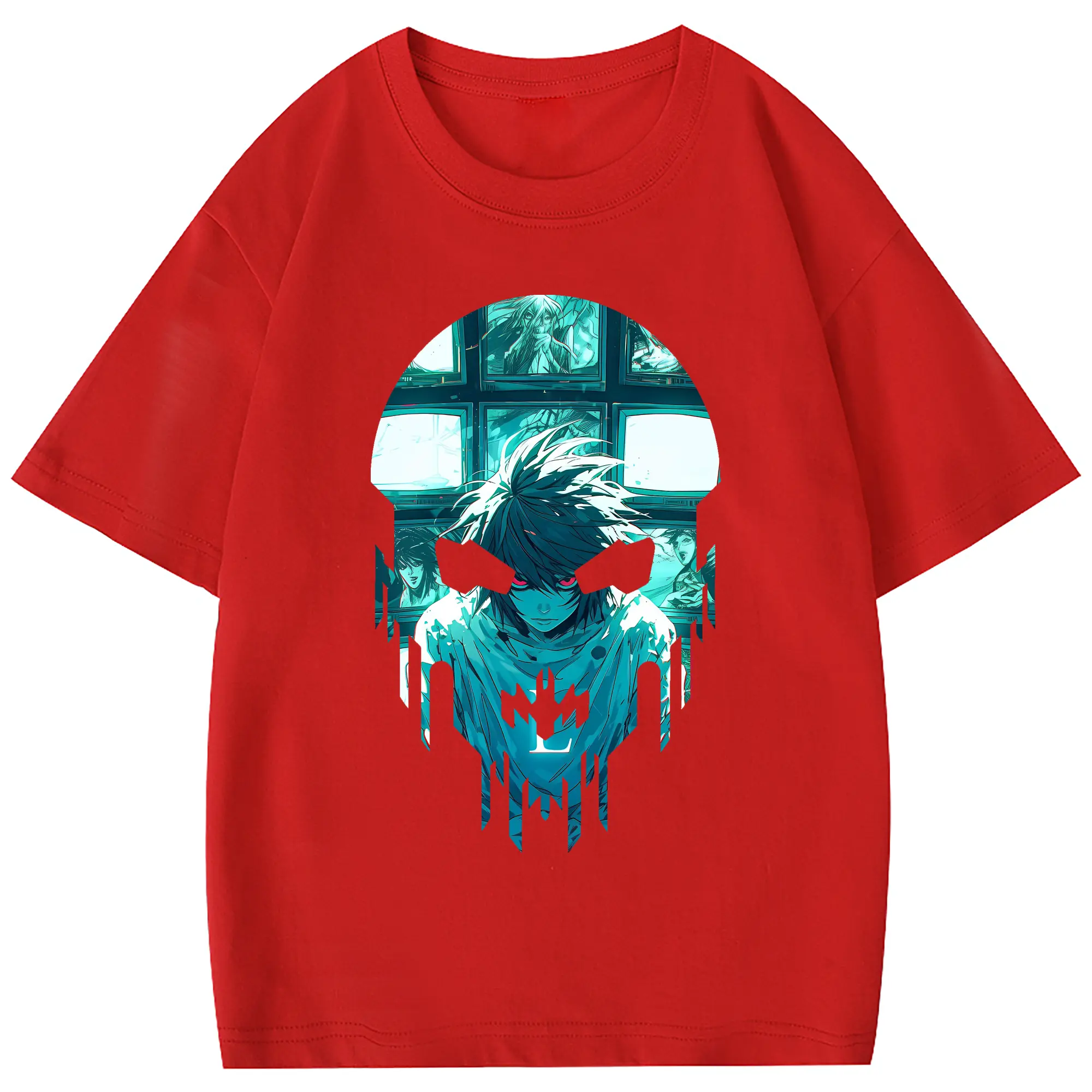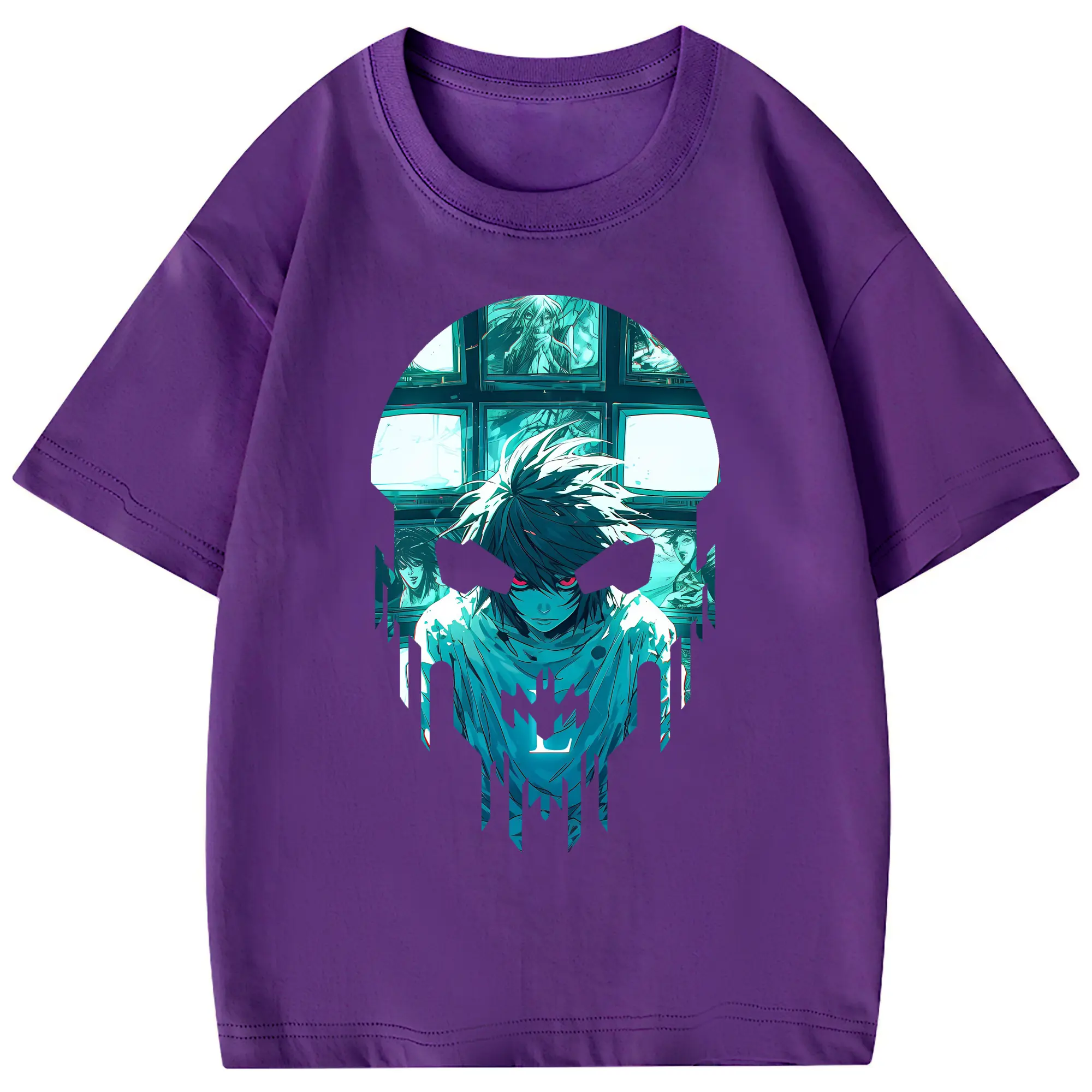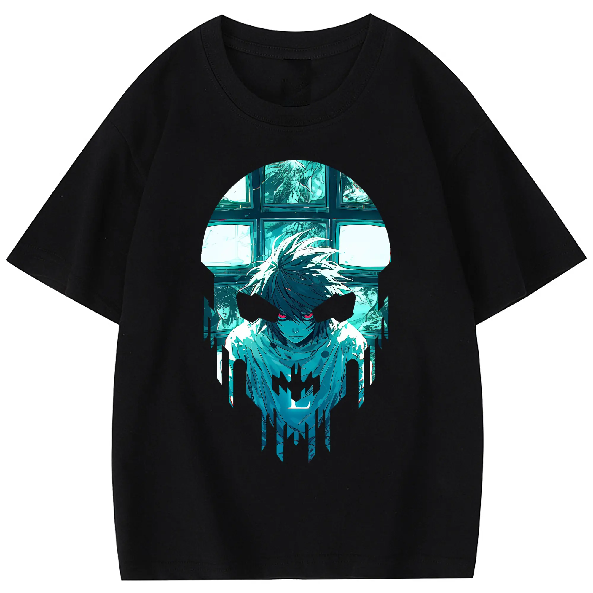 デスノート グッズ,L - 綿100% 半袖Tシャツ ・ フロントプリント ・ 快適 通気性 ・ 日常使い 散歩 スポーツ用